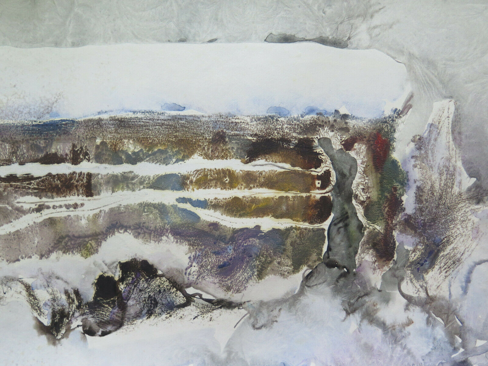 Support and technique: watercolour on cardboard. Made with the "frost technique" to obtain the ice effect in some areas of the pictorial surface, such technique consisted of placing the painting in the actual cold still fresh and then processed later. This effect was created by the painter Pancaldi and occurs above all in many of his works in the maturity stage. Author: Gaetano Pancaldi (Piumazzo di Castelfranco Emilia, 1922-2014).
