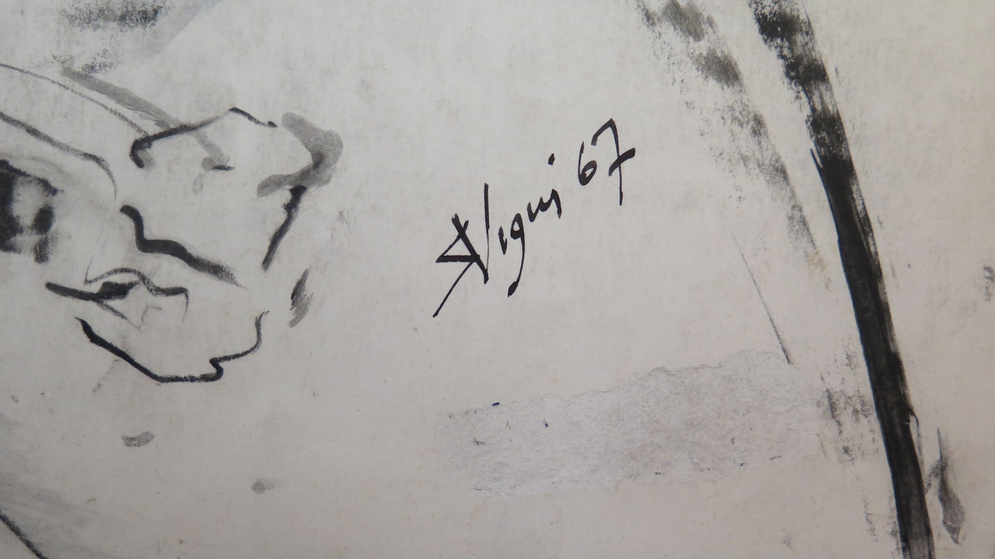 VINTAGE ABSTRACT PAINTING WATERCOLOR ON BLACK WHITE PAPER FRANCE SIGNED VIGNY MID 20TH CENTURY BM53.4