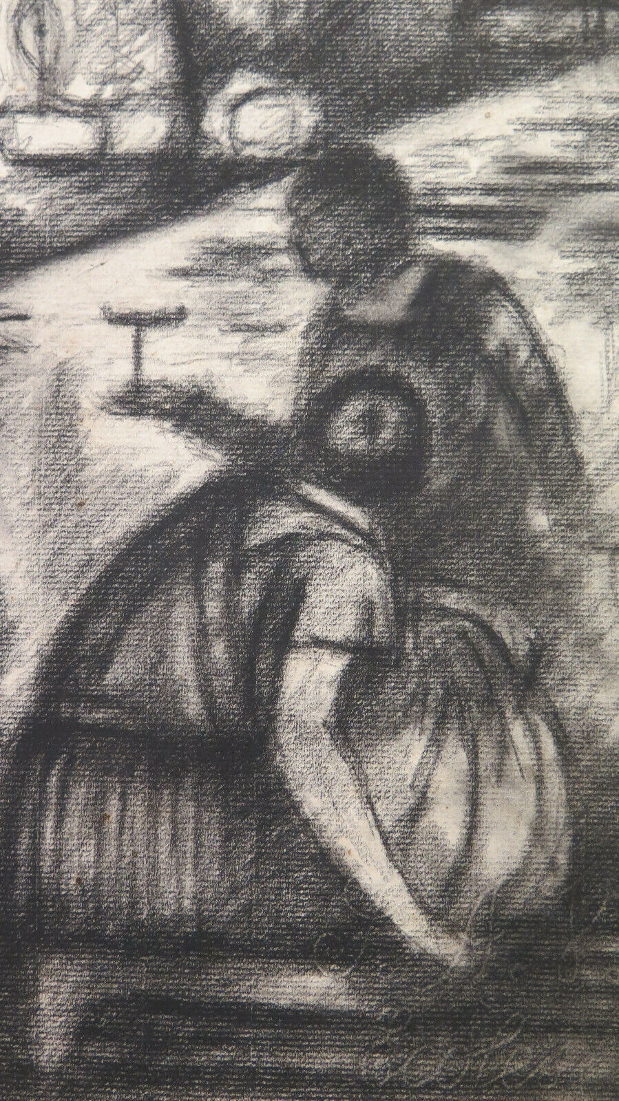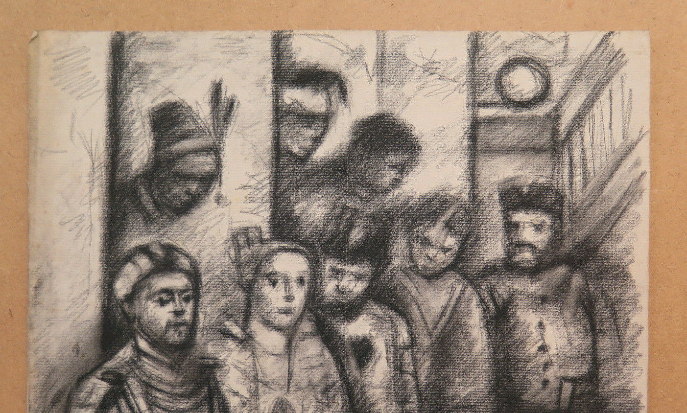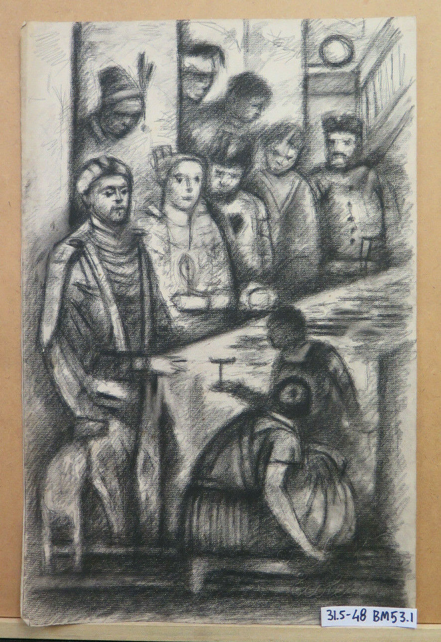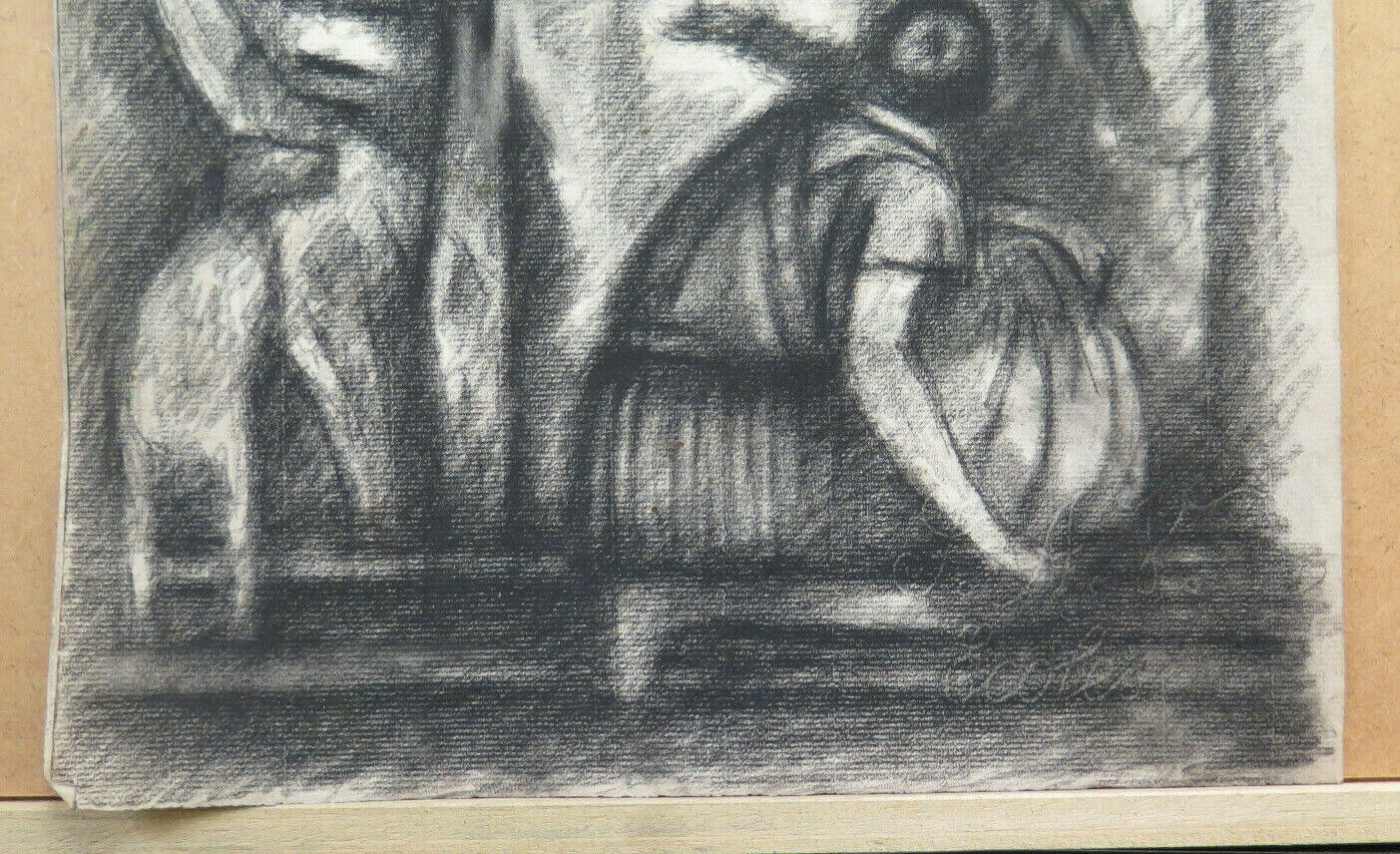 31x48 cm ANTIQUE CHARCOAL DRAWING BIBLICAL SCENE Pierre Duteurtre DUT BM53.1