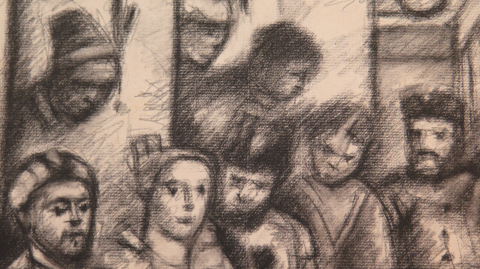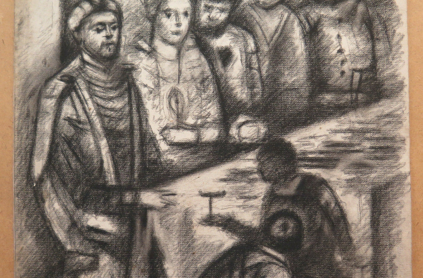 Particular large drawing with figures, probably a study carried out in his youth inspired by an ancient painting.