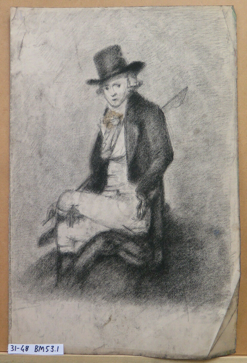 31x48 cm ANTIQUE DRAWING MALE PORTRAIT 900 Pierre Duteurtre known as DUT BM53.1