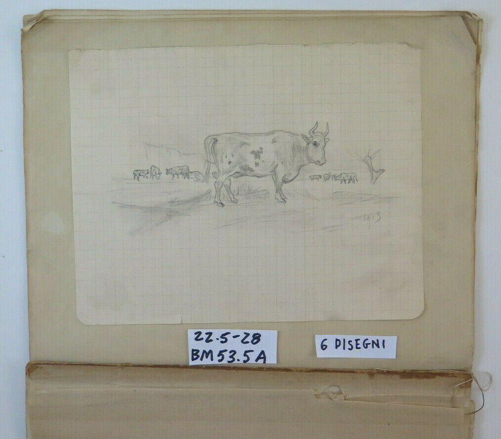 ANTIQUE DRAWING ALBUM 7 SKETCHES ANIMALS PORTRAITS NATURE FROM THE BEGINNING OF THE CENTURY BM53.5A