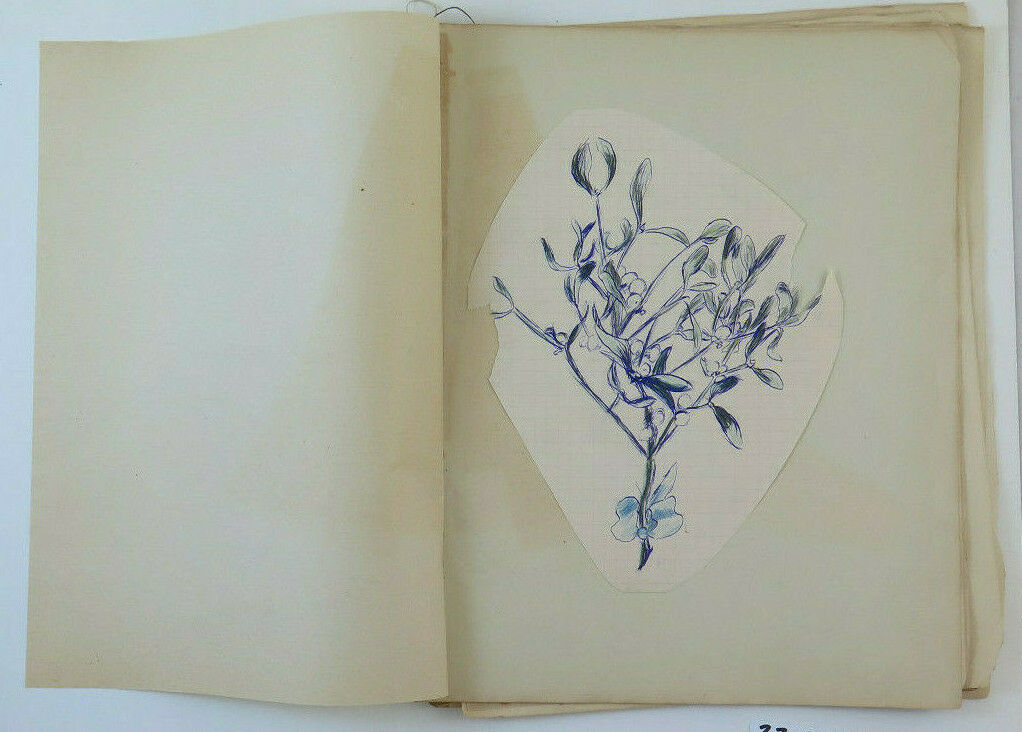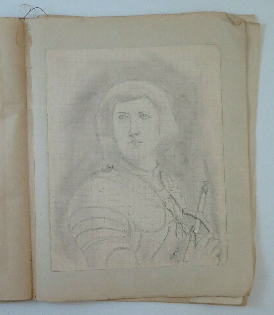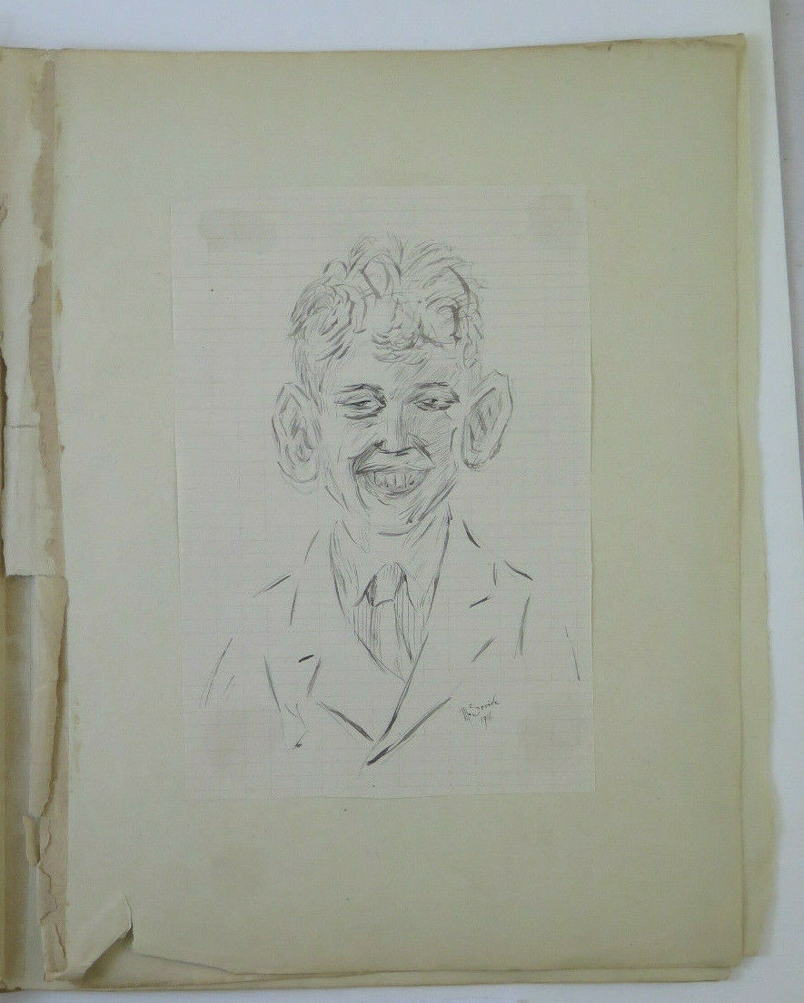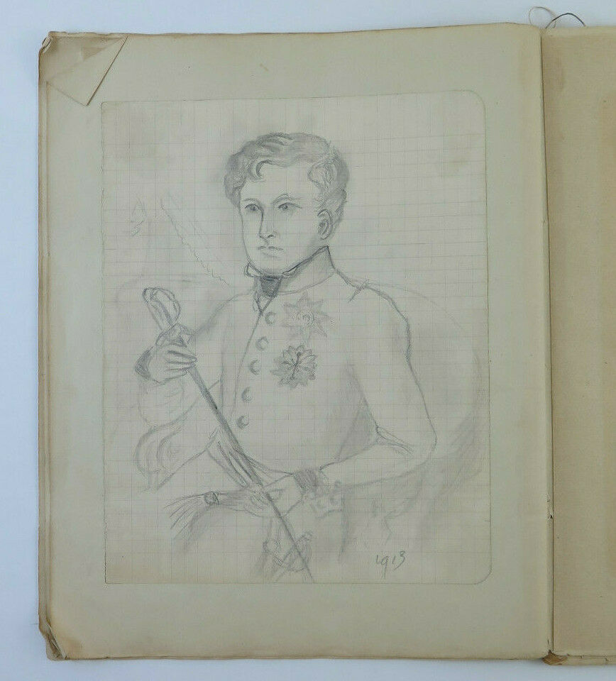 Rare drawing album with 6 sketches of various subjects: animals, plants, characters. Some dated 1913 and 1916. Probably the work of a student.