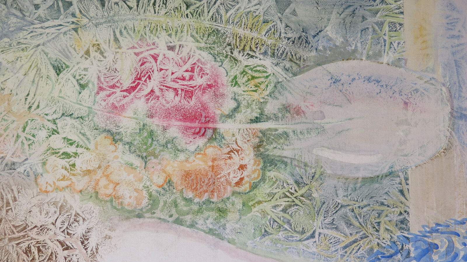 MEDIUM AND PAINTING SURFACE: watercolor on paper with "Ice technique" that was invented by Pancaldi to obtain the ice effect on some part of the painting surface, this technique consists of literally freezing the fresh wet painting and subsequently work on it again. He used this technique starting from the '70's.