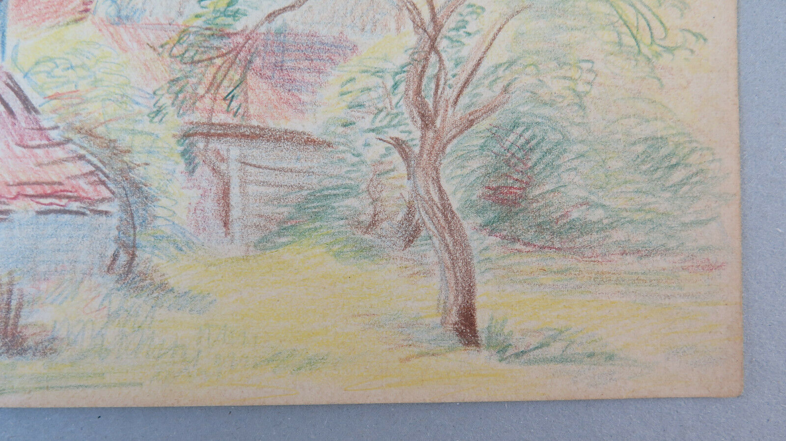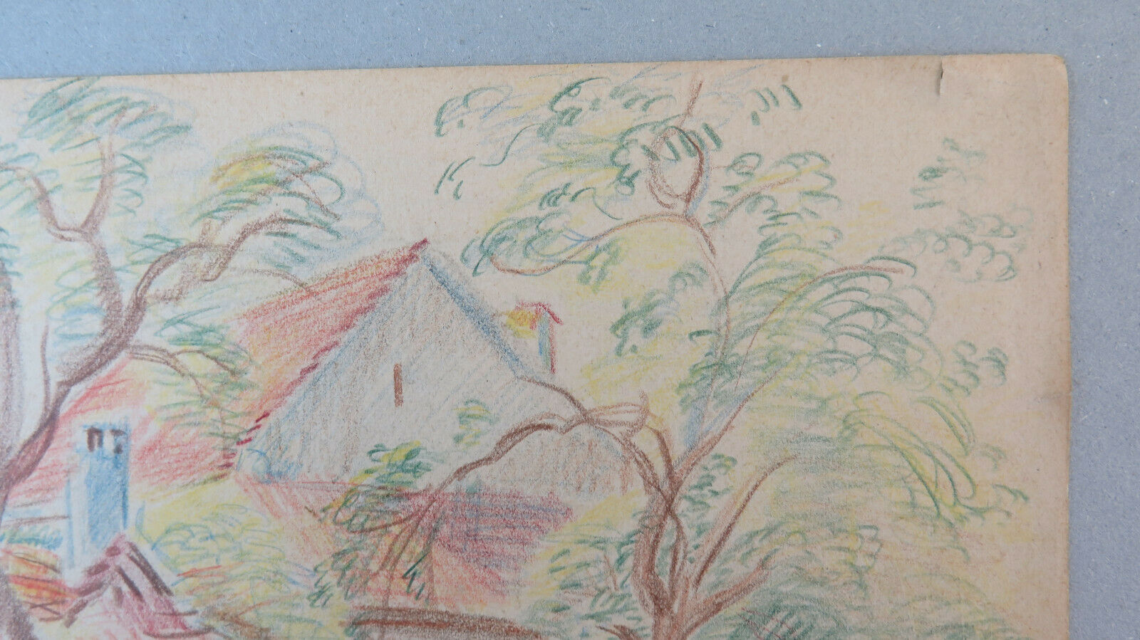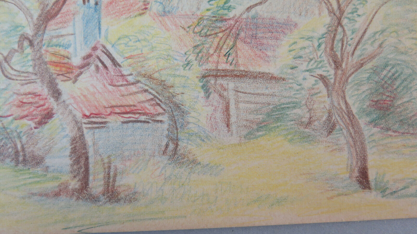 OLD DRAWING SIGNED BISCHOFF 1960s COUNTRYSIDE VIEW PENCIL PAPER BM53.2
