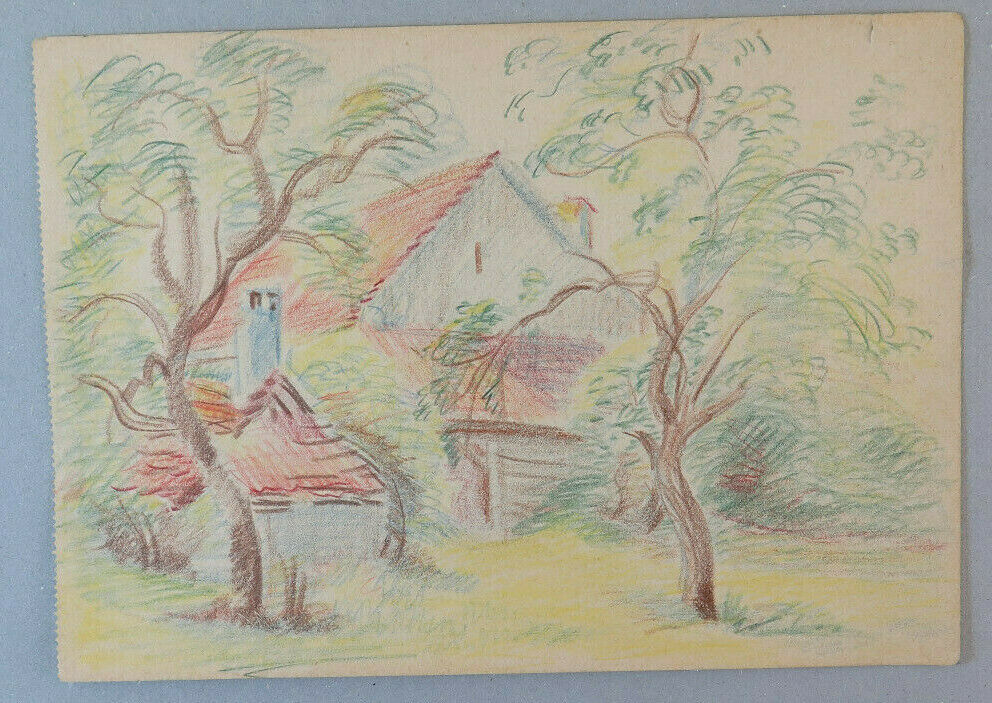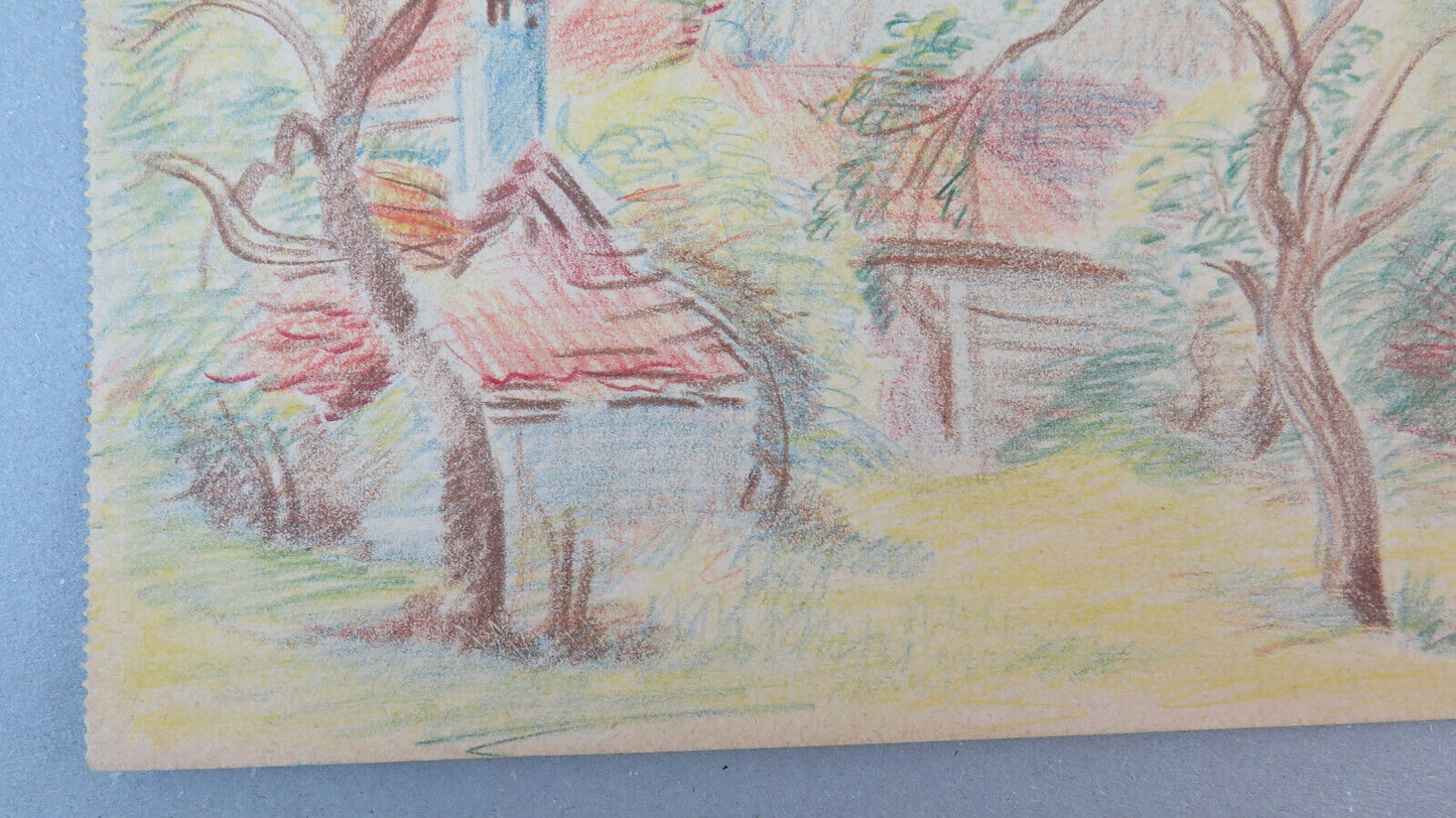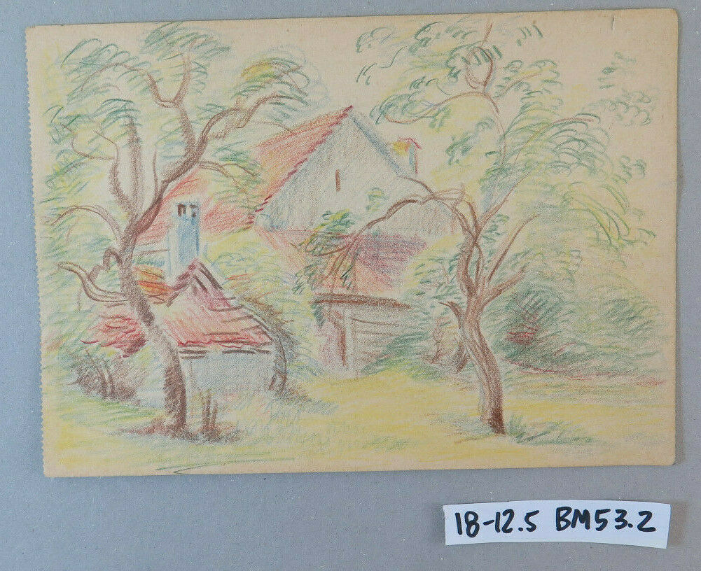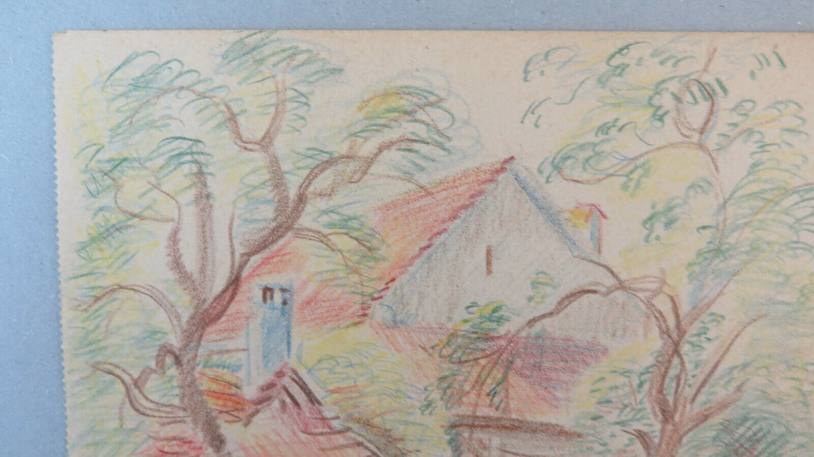OLD DRAWING SIGNED BISCHOFF 1960s COUNTRYSIDE VIEW PENCIL PAPER BM53.2