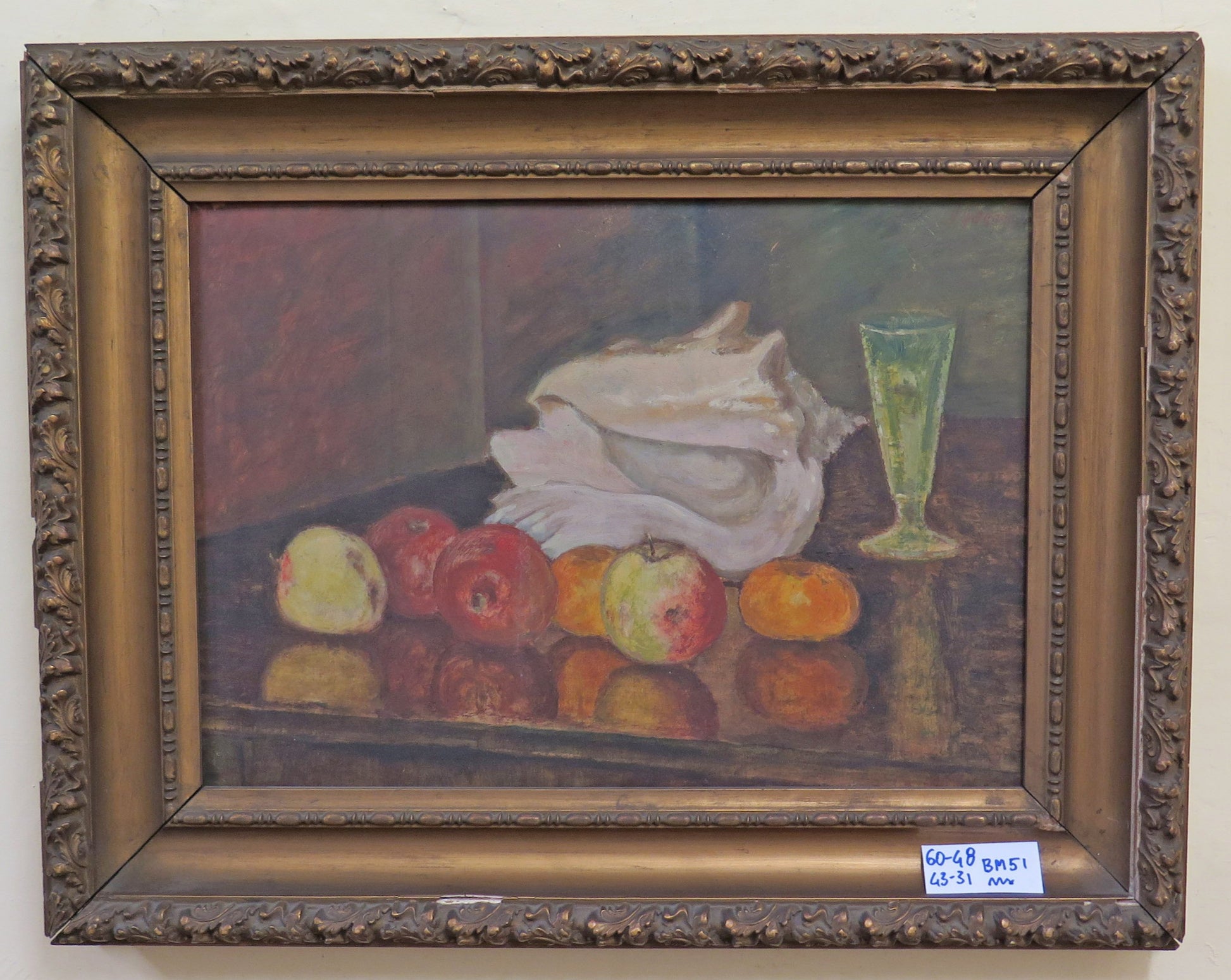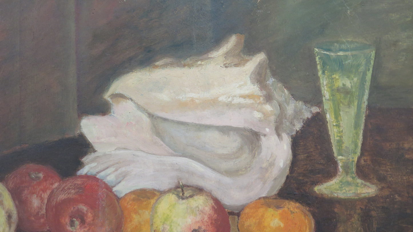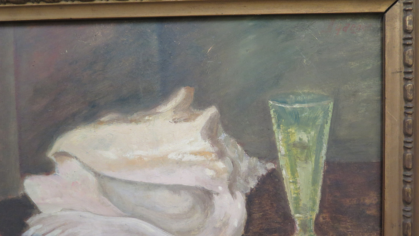 ANTIQUE PAINTING FLORAL STILL LIFE DOUBLE BACK DOUBLE DOLPHIN GAGNOR BM51