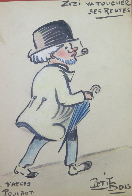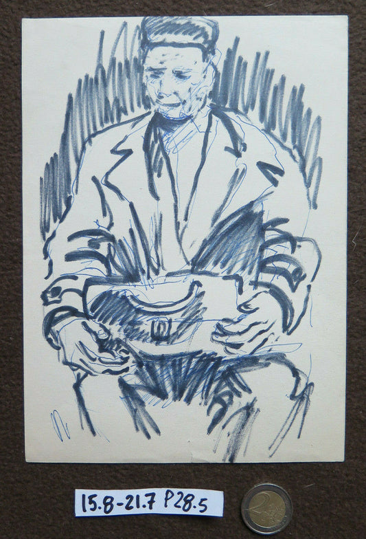 OLD COMIC DRAWING PENCIL ON PAPER SIGNED RAUL PORTRAIT OF MAN BM53.5b