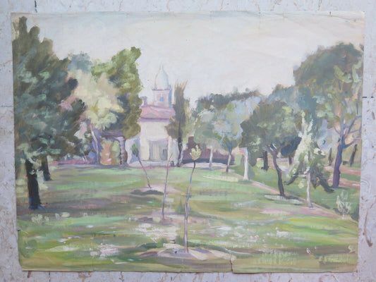 OLD DRAWING SIGNED BISCHOFF 1960s COUNTRYSIDE VIEW PENCIL PAPER BM53.2