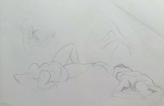 OLD LARGE DRAWING 1960s VINTAGE STUDY FOR FEMALE NUDE PENCIL ON PAPER FRANCE BM53.4