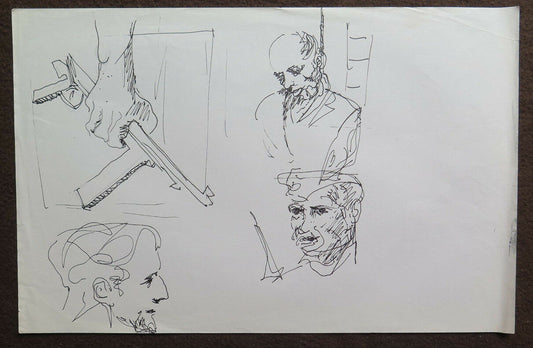 OLD DRAWING WITH STUDY OF EXPRESSION OF HUMAN FACES SKETCH SKETCH P28.8