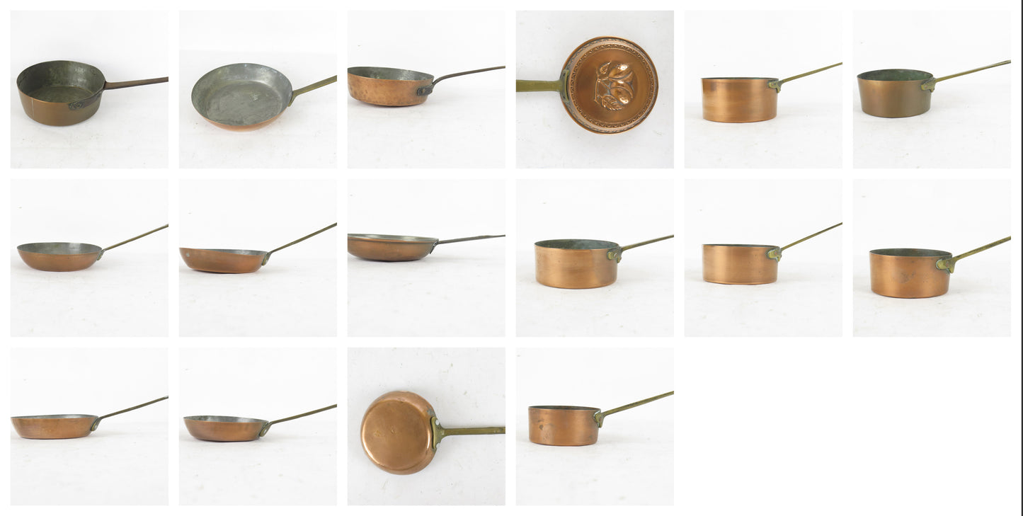 Collection consisting of 16 antique copper pans.