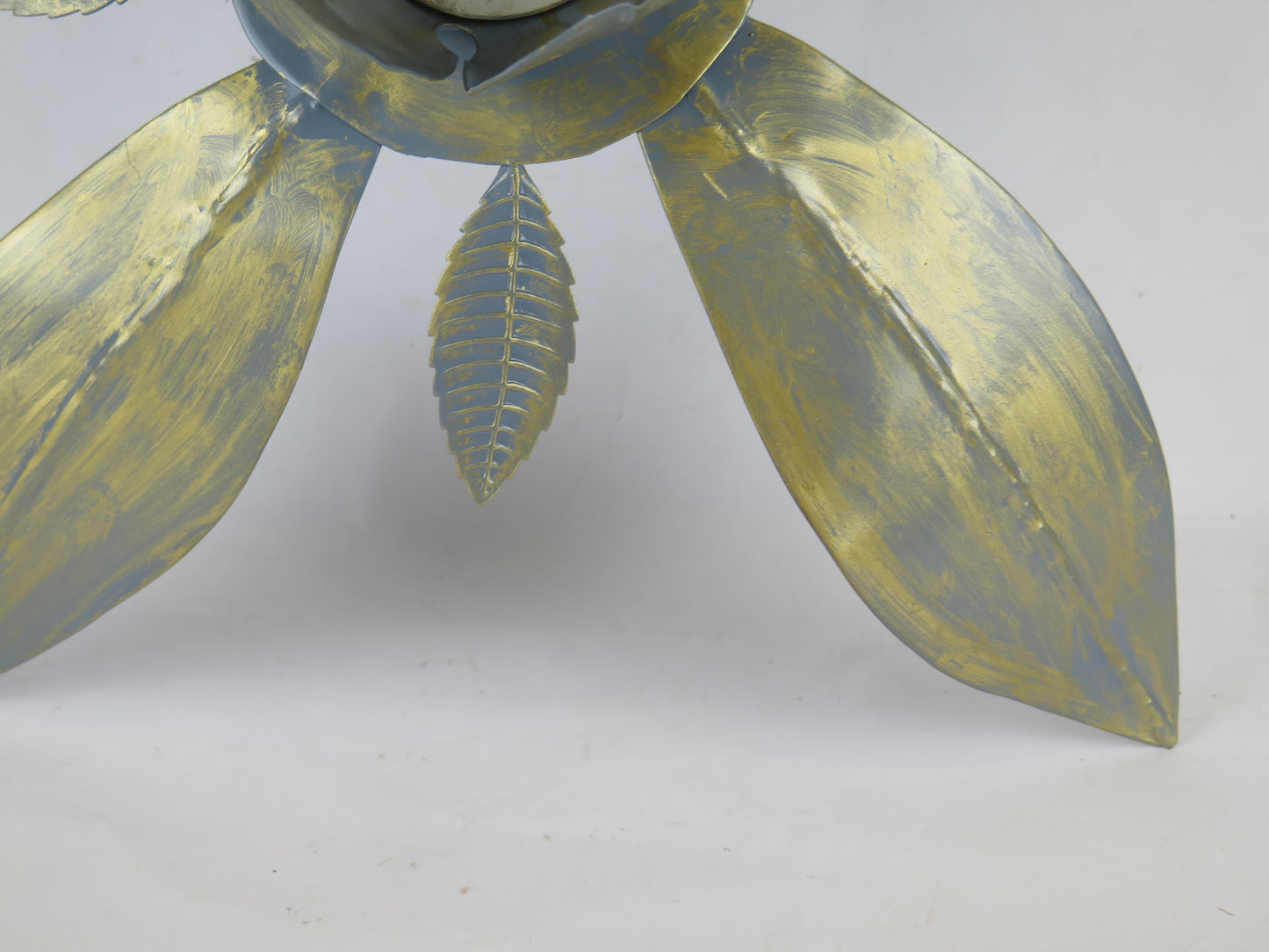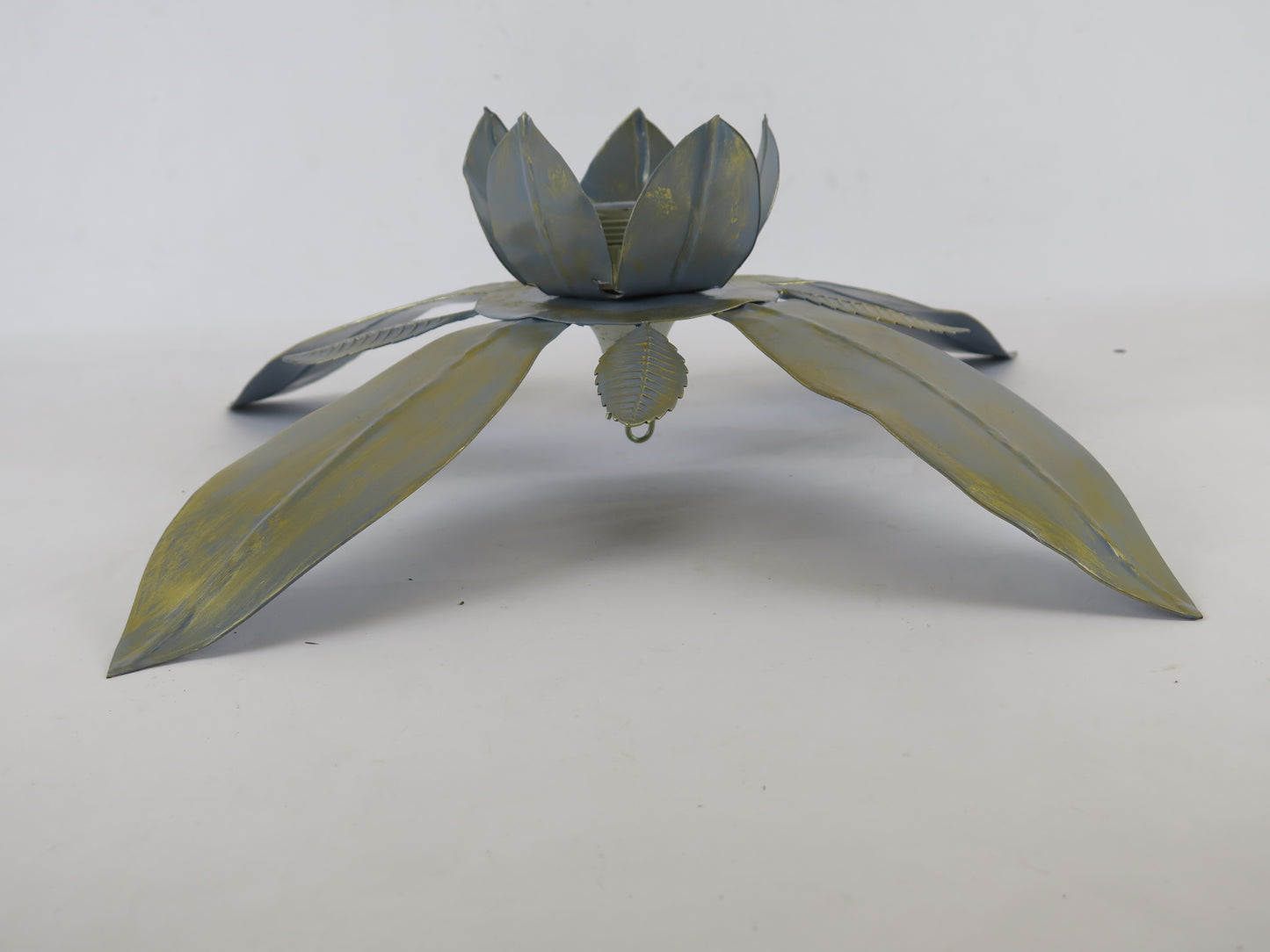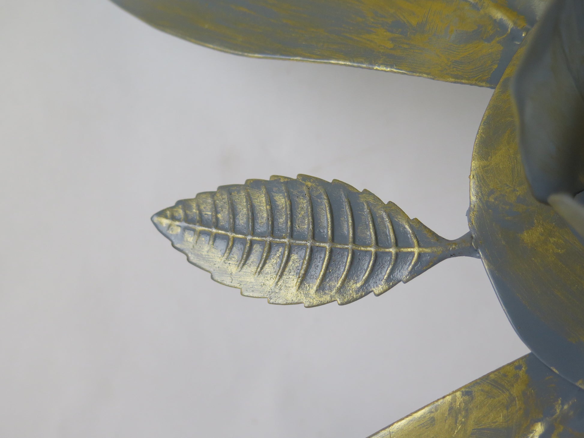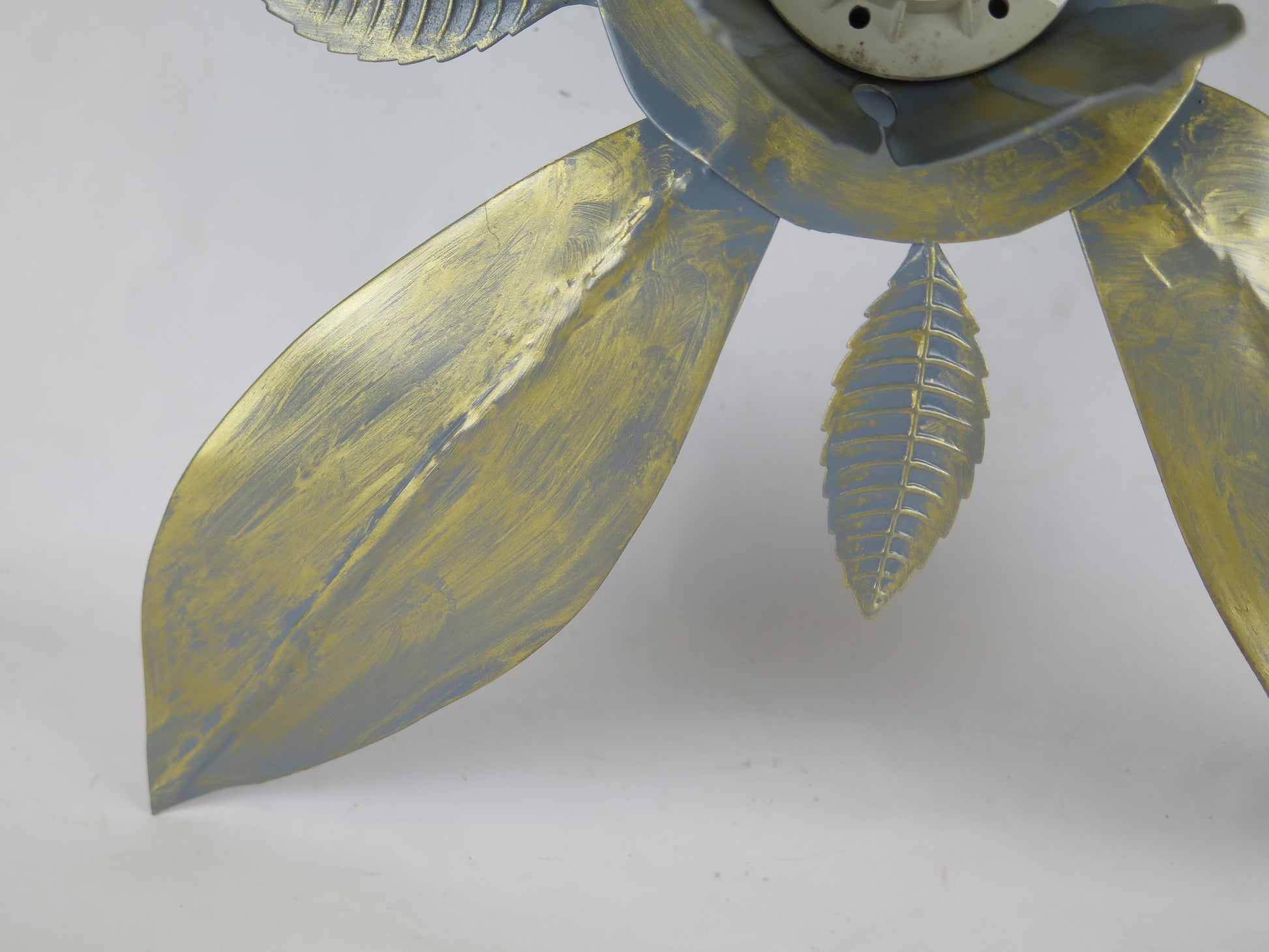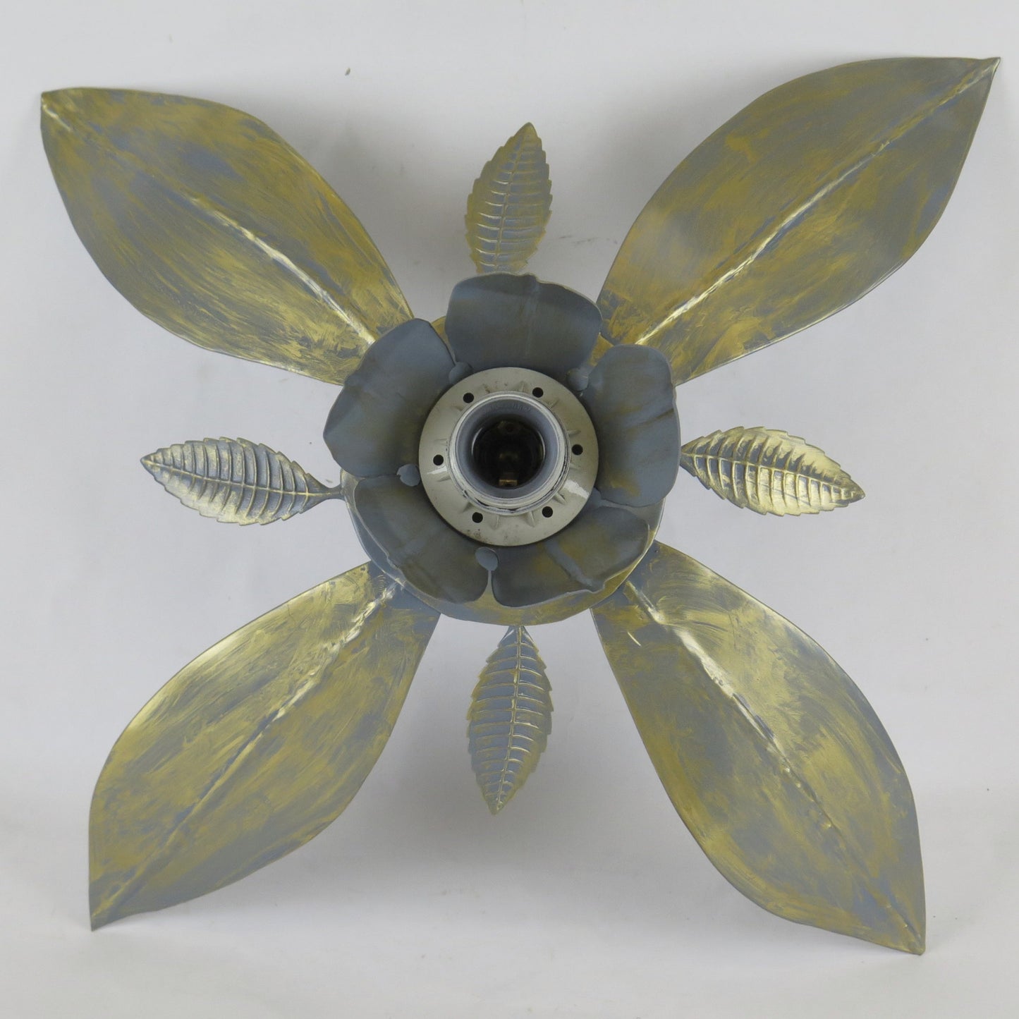 Elegant wrought iron wall light in the shape of a flower with a central bulb surrounded by embossed petals. Ideal for both wall and ceiling,