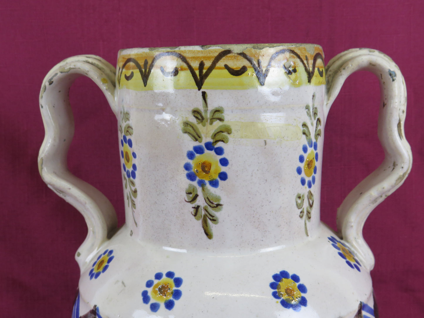 Antique two-armed ceramic jug Puglia early 19th century antique hand-painted ceramic vase VS15