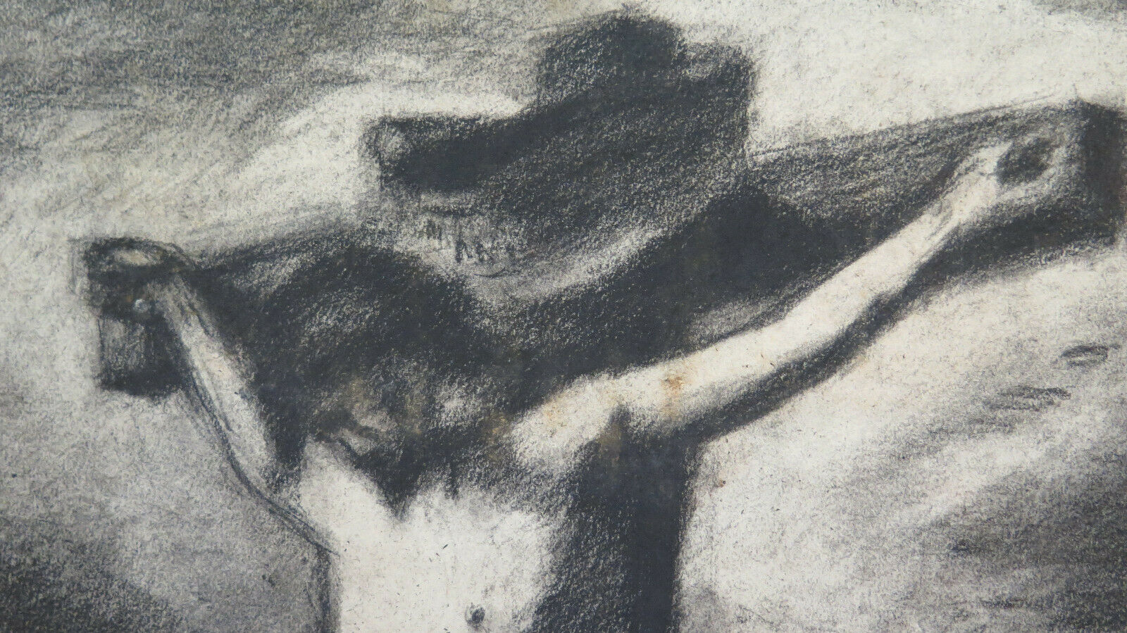 CRUCIFIXION OF JESUS CHRIST ANTIQUE PAINTING ARTIST Pierre Duteurtre DUT BM53.1 c