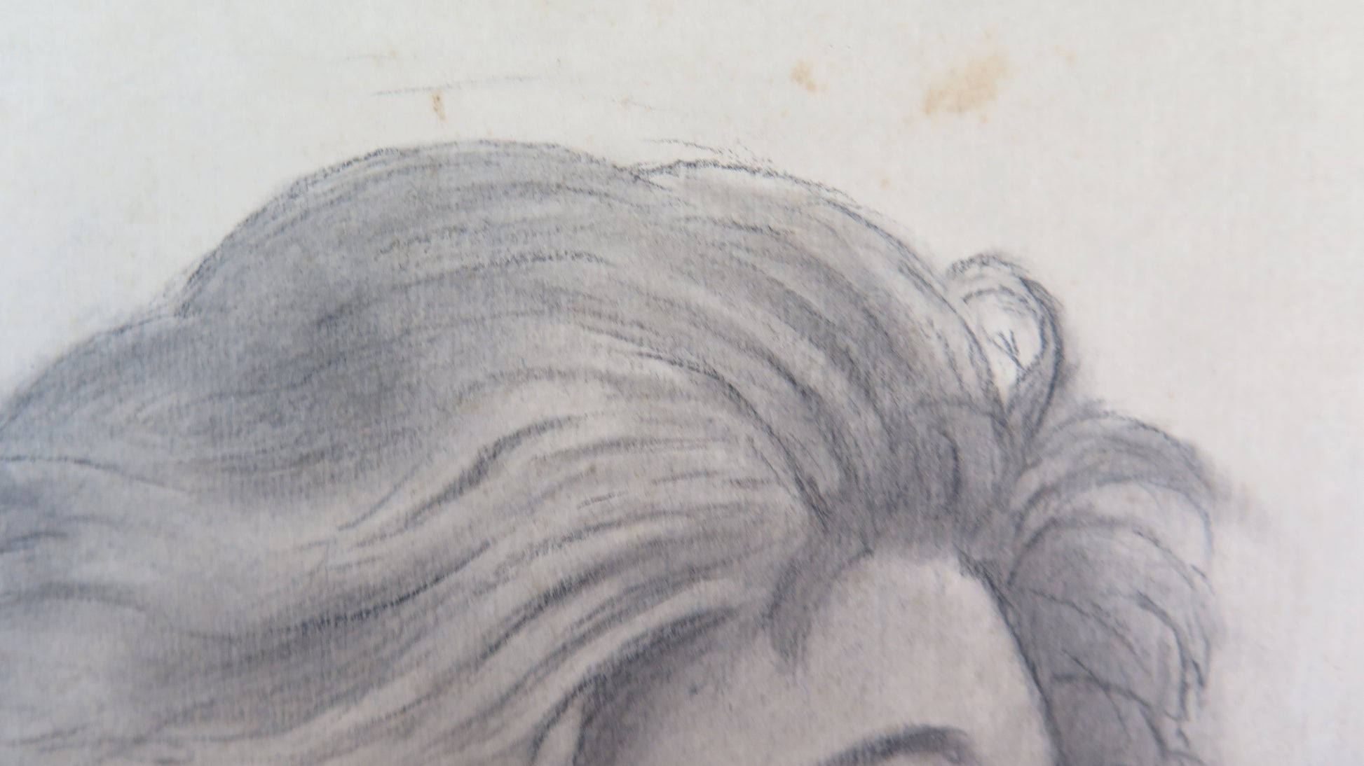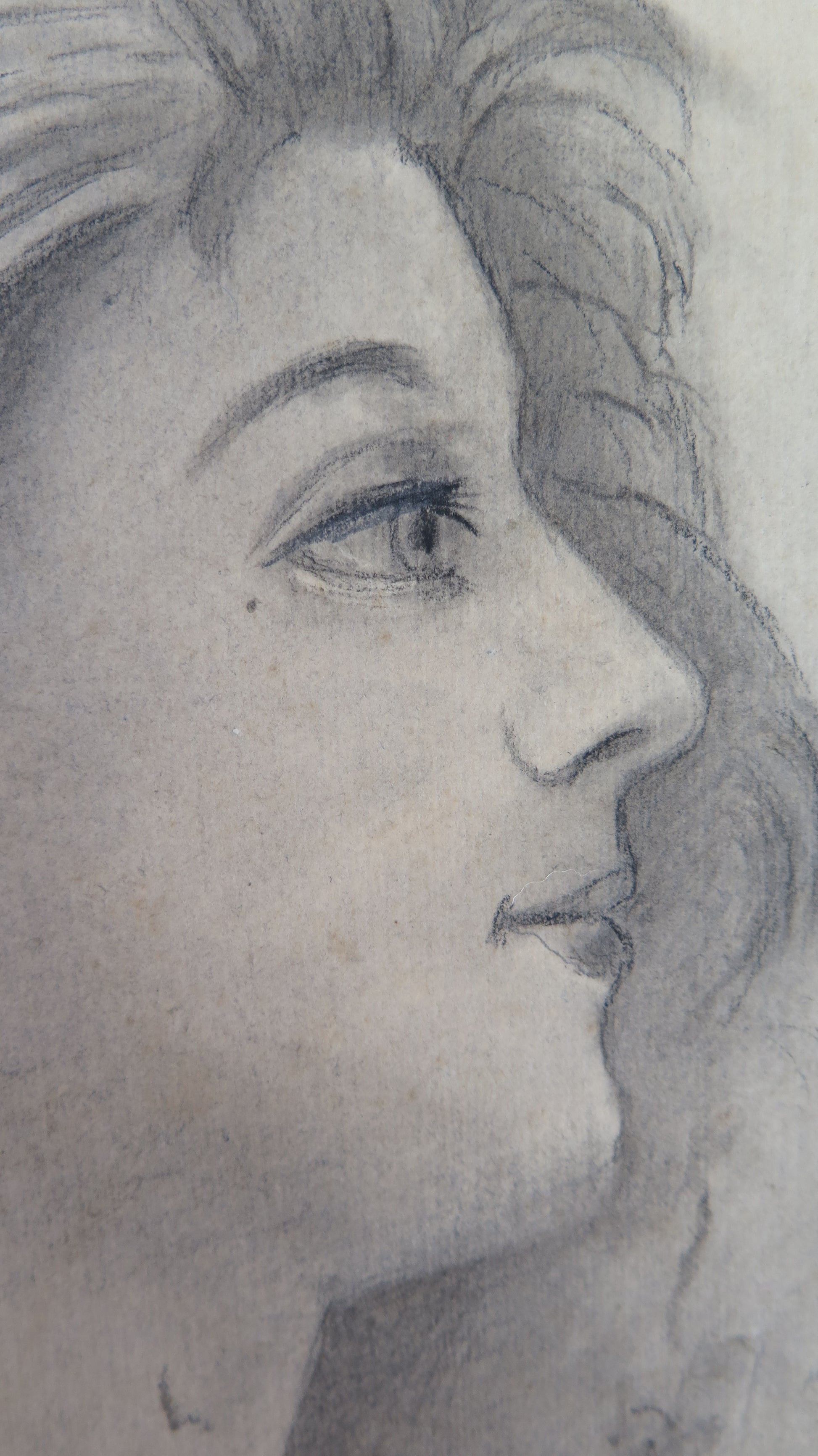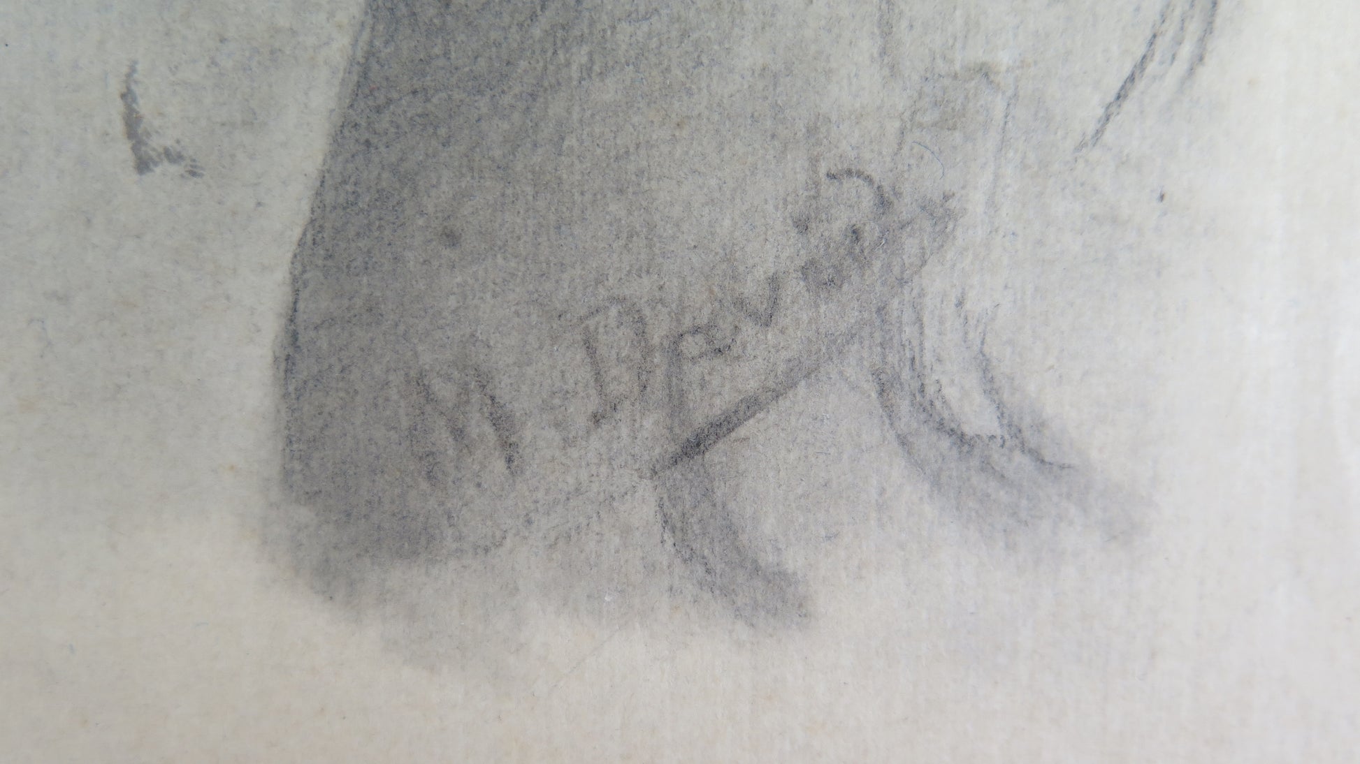 ANTIQUE DRAWING PORTRAIT OF A YOUNG WOMAN SIGNED PENCIL ON PAPER '900 BM53.5F