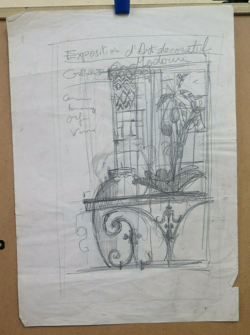Two old drawings with studies for the creation of decorations for a French decorative art fair.