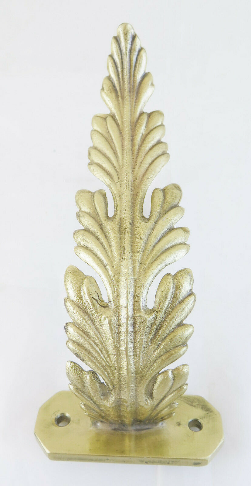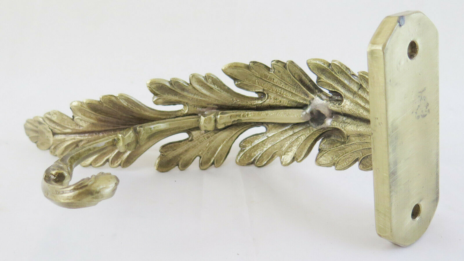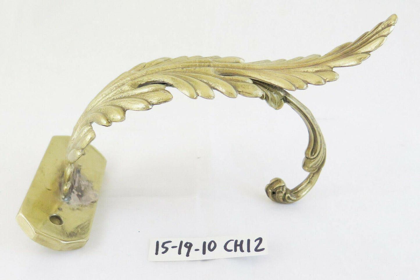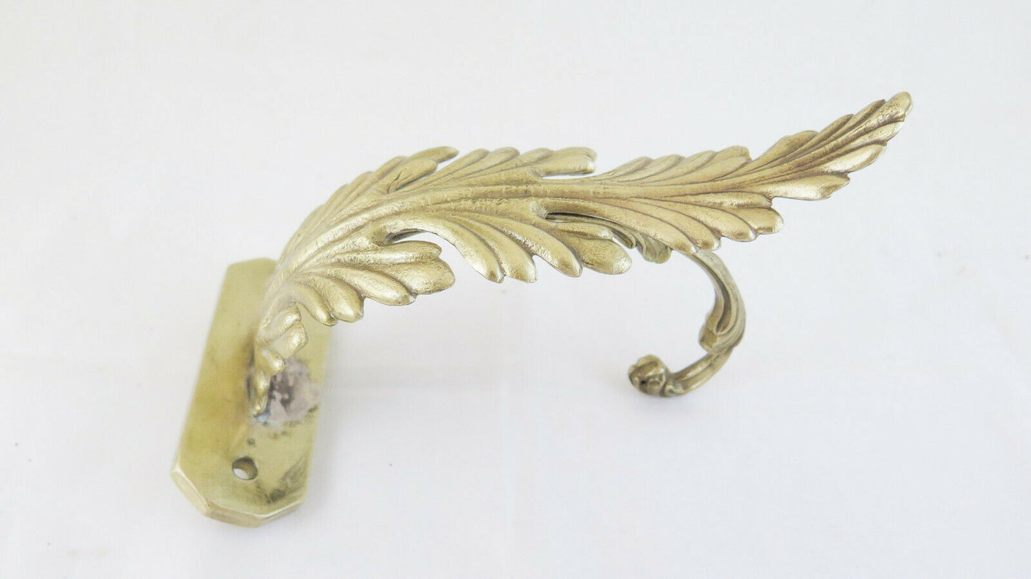 Refined curtain tieback hook in chiseled and gilded bronze with a leaf shape.