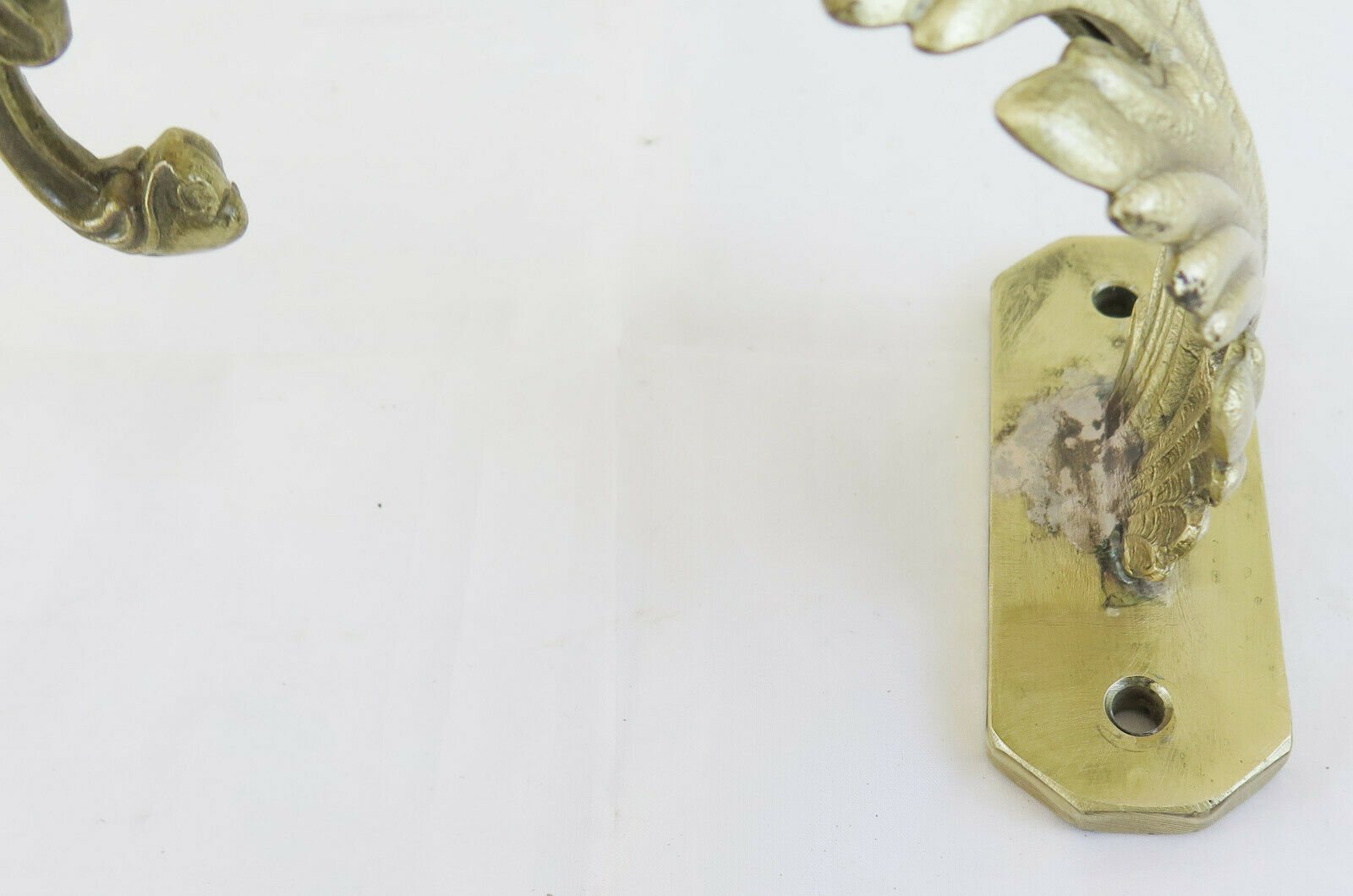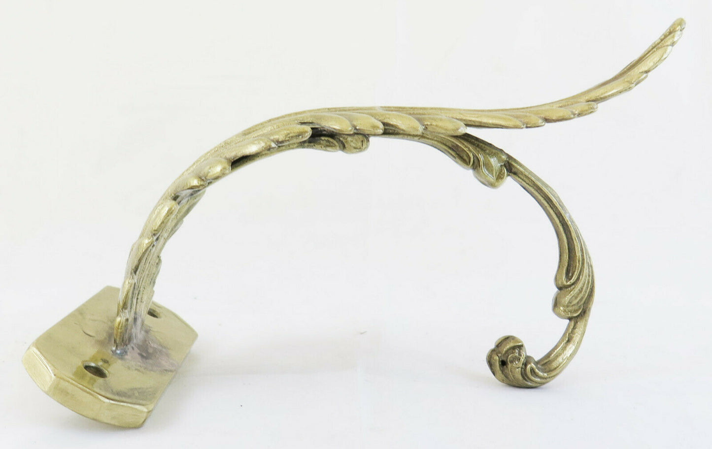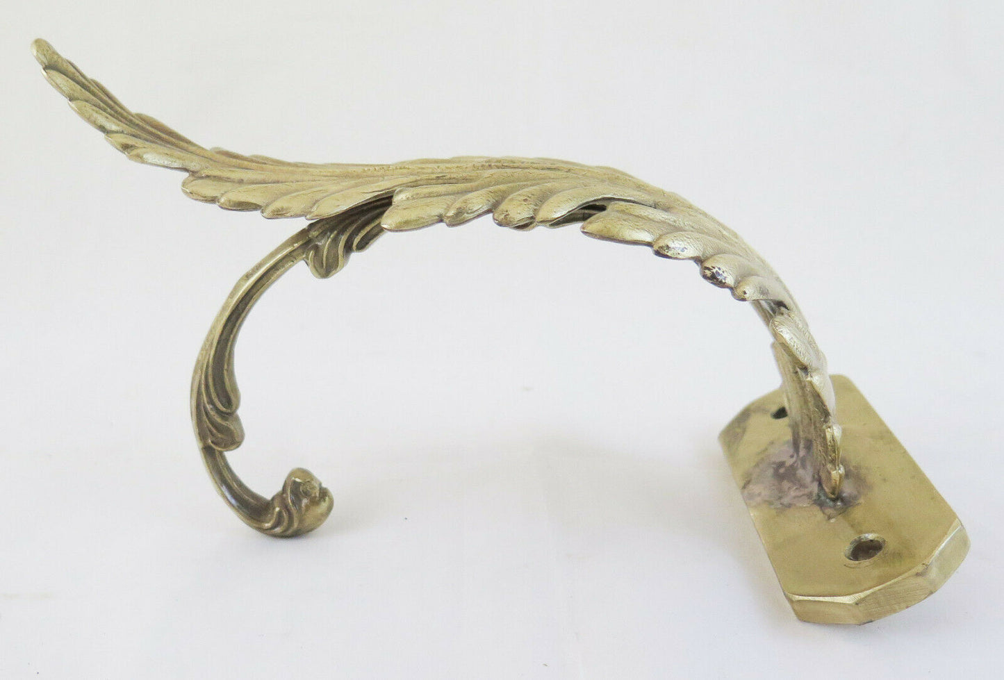 Refined curtain tieback hook in chiseled and gilded bronze with a leaf shape.