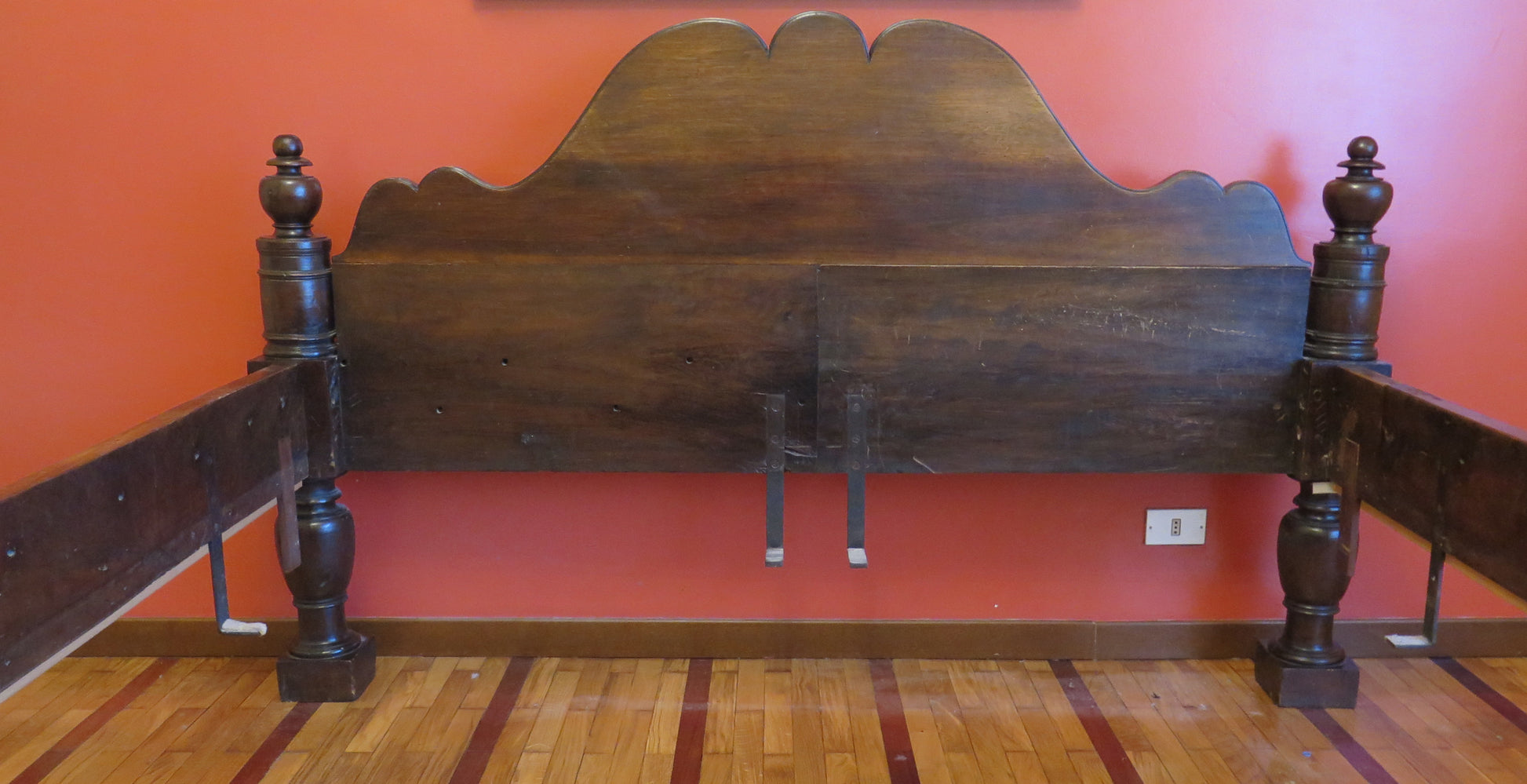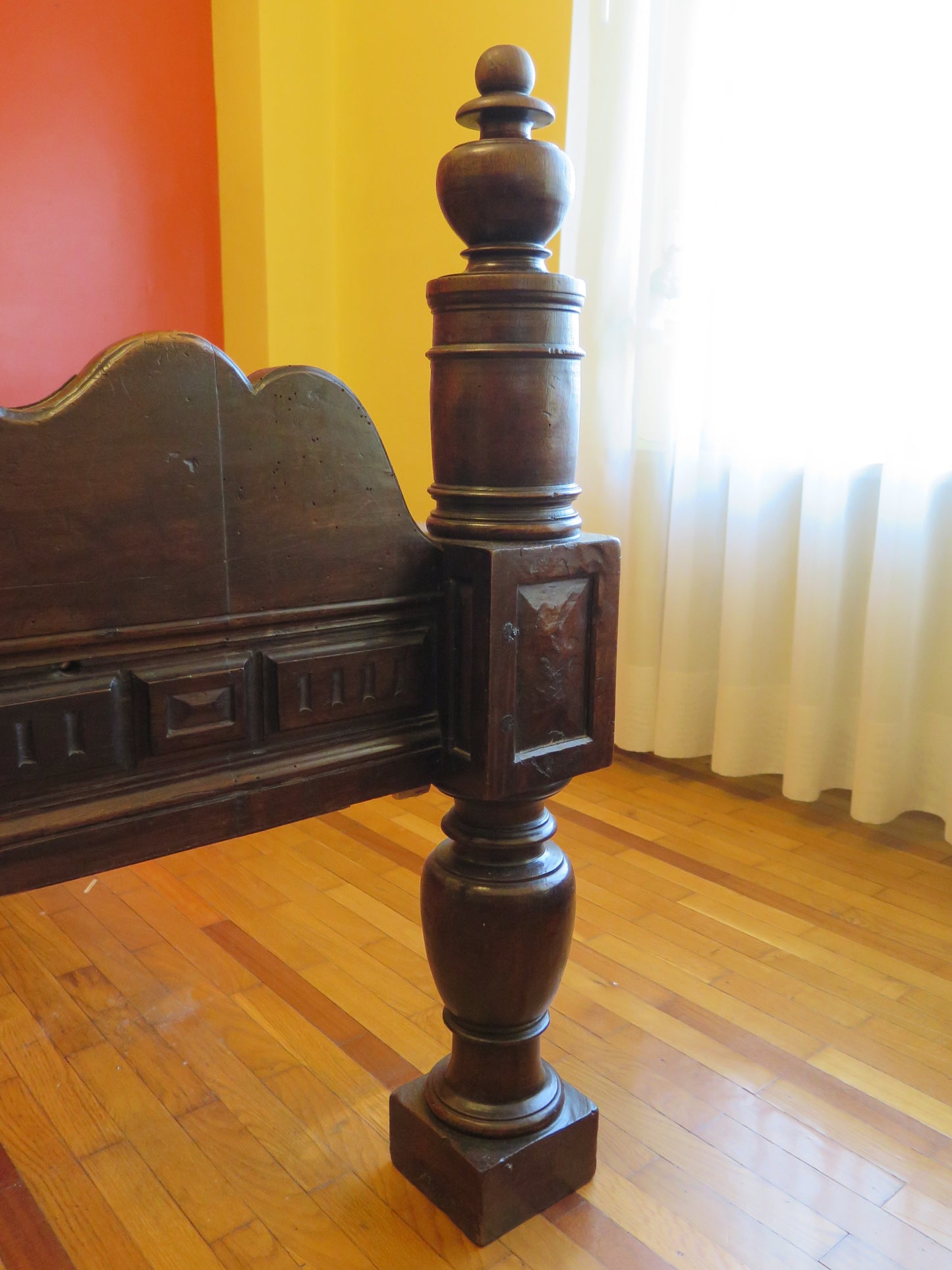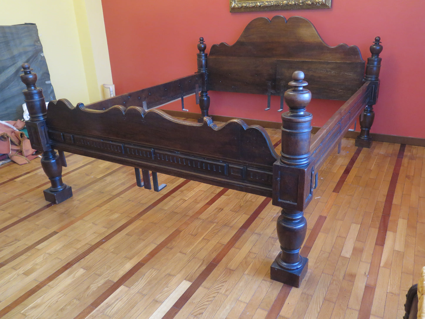 Important baroque style double bed with carved columns and wavy headboard. Period: 19th century