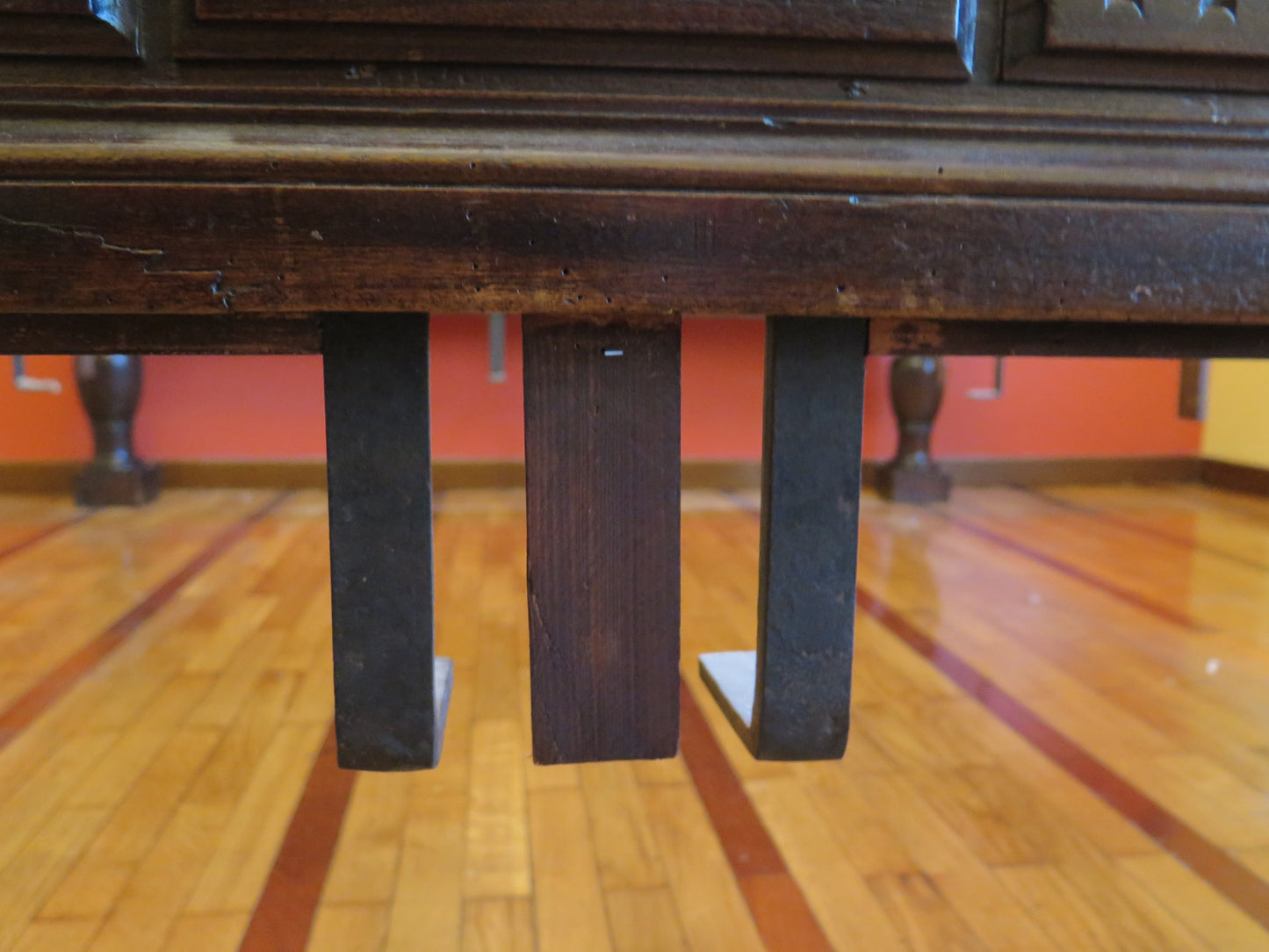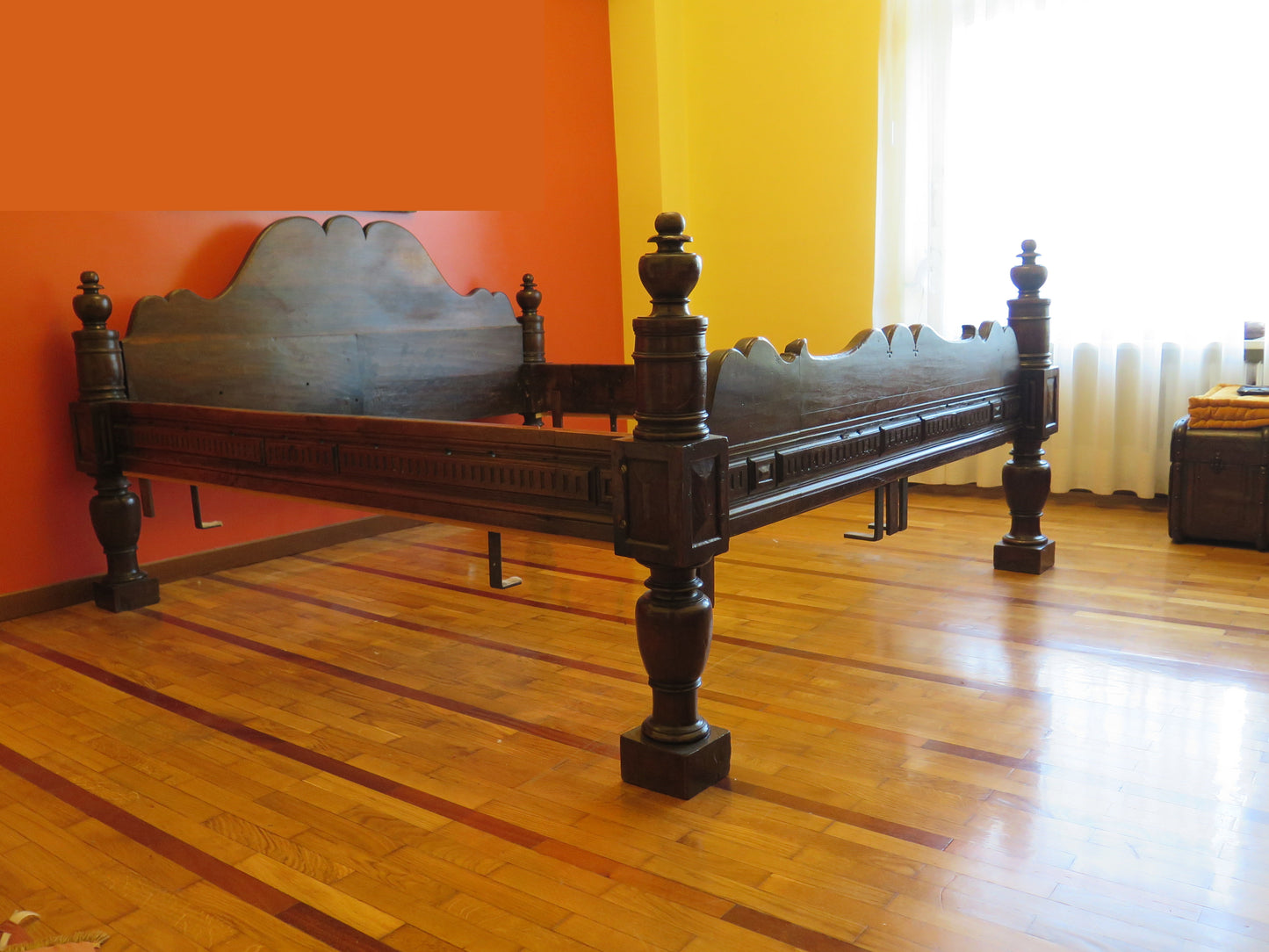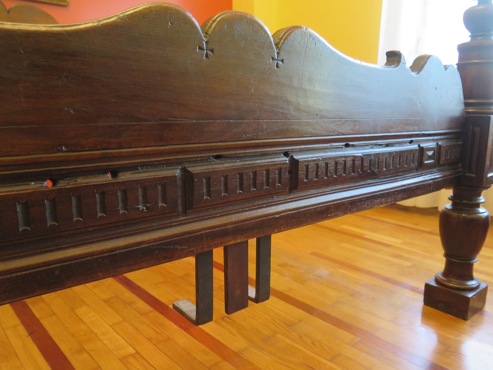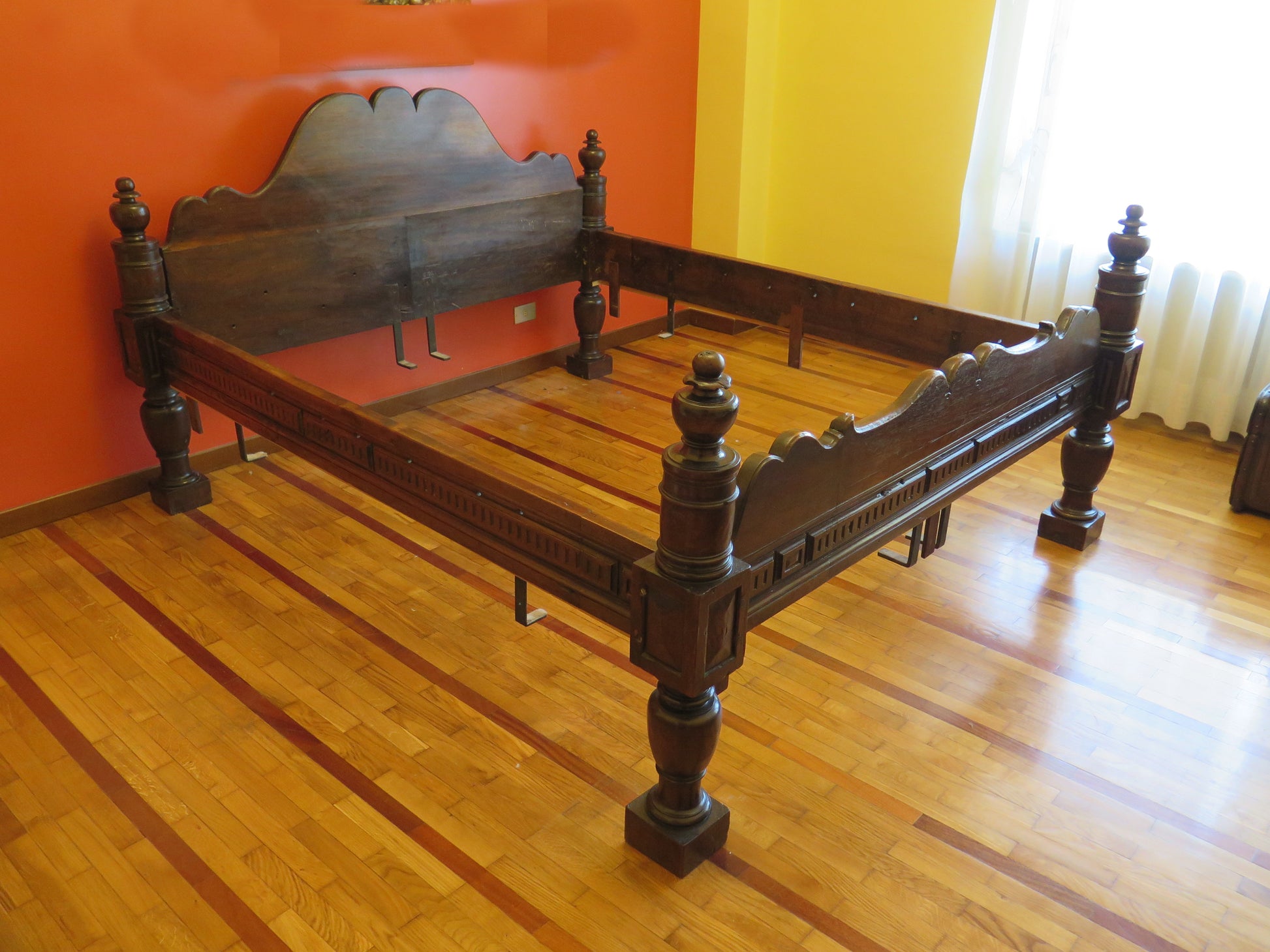 Important baroque style double bed with carved columns and wavy headboard. Period: 19th century