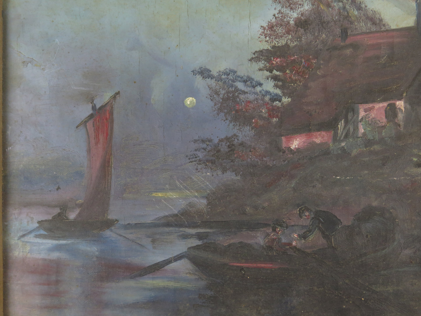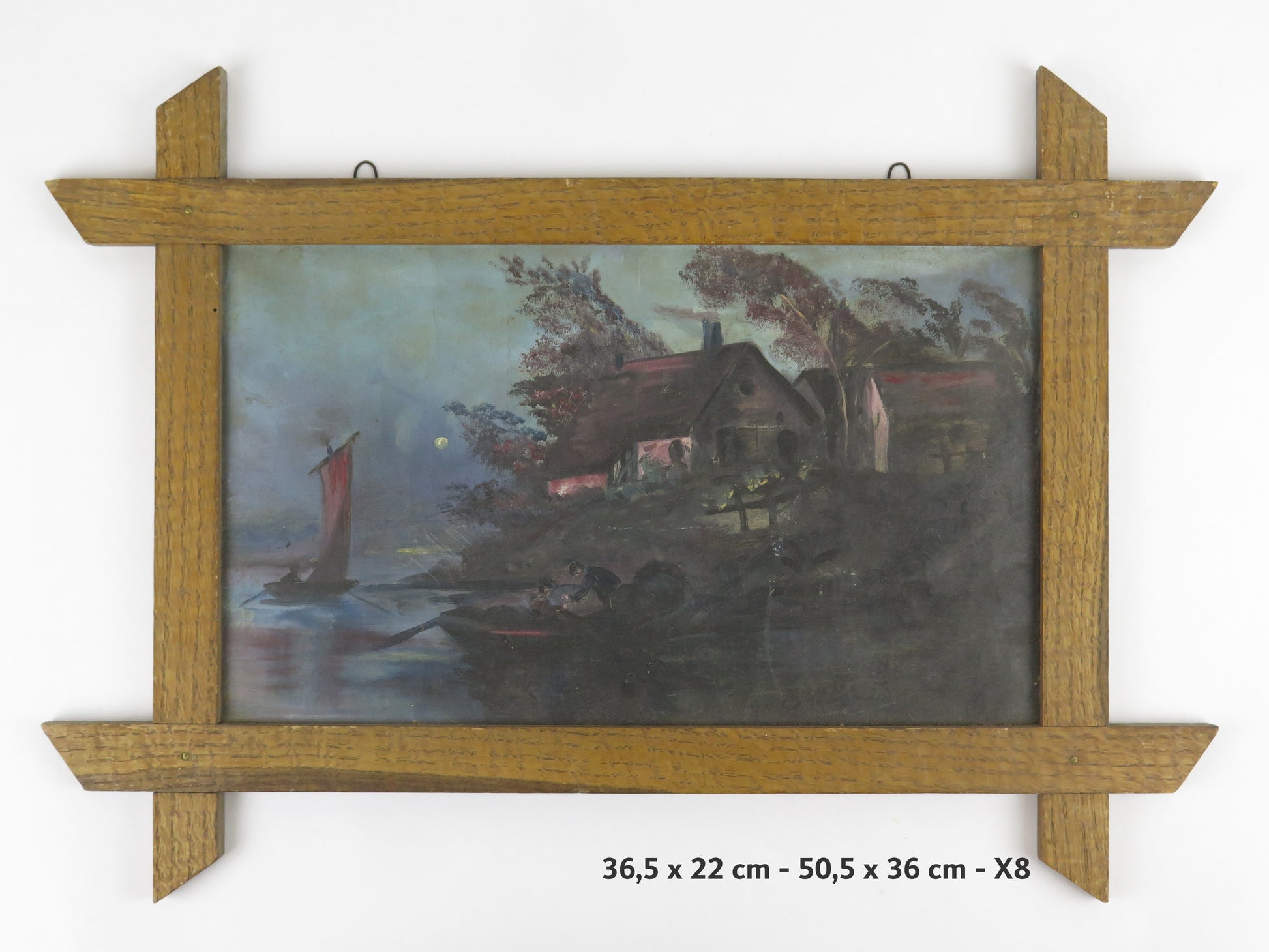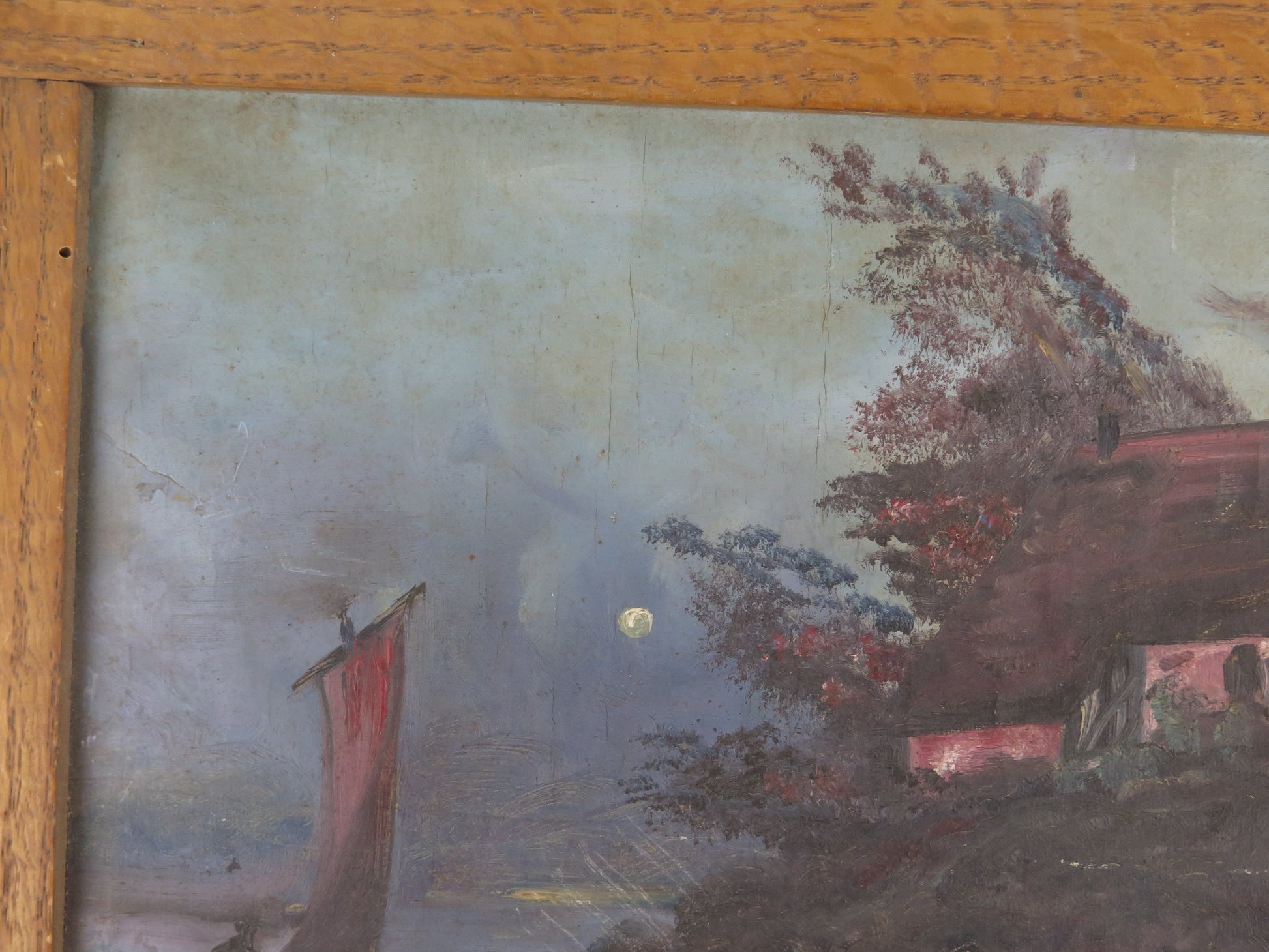ANTIQUE PAINTING NIGHT LANDSCAPE LAKE MOON NIGHT PAINTING WITH FRAME X8