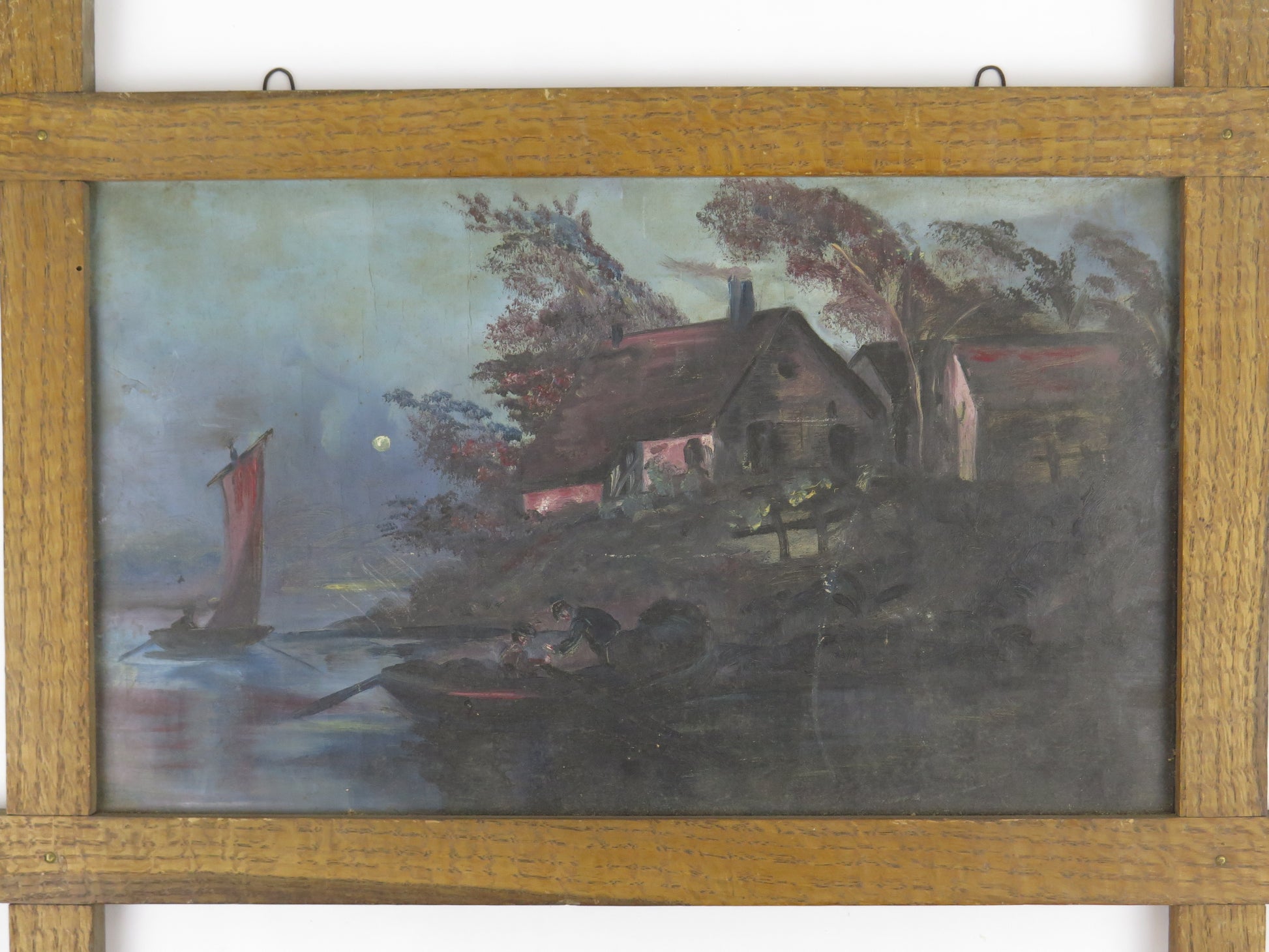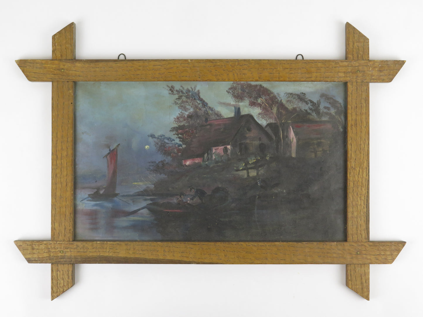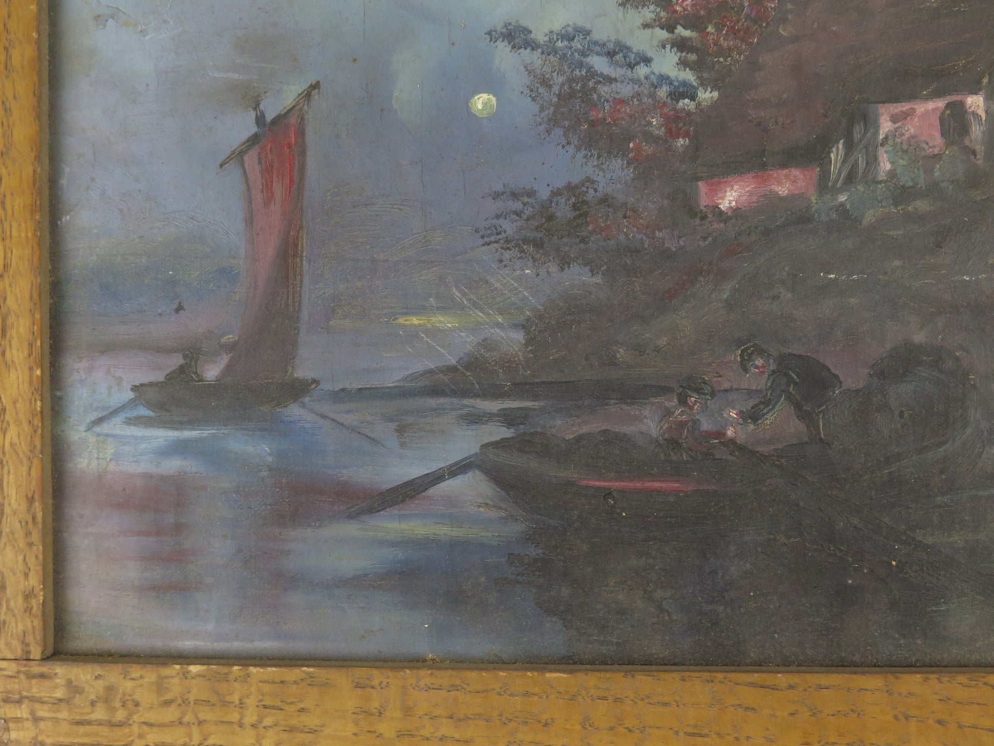 ANTIQUE PAINTING NIGHT LANDSCAPE LAKE MOON NIGHT PAINTING WITH FRAME X8