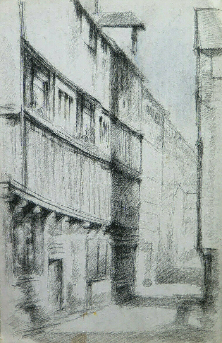 ANTIQUE PAINTING OF FRENCH TOWN VIEW ART Pierre Duteurtre known as DUT BM53.1