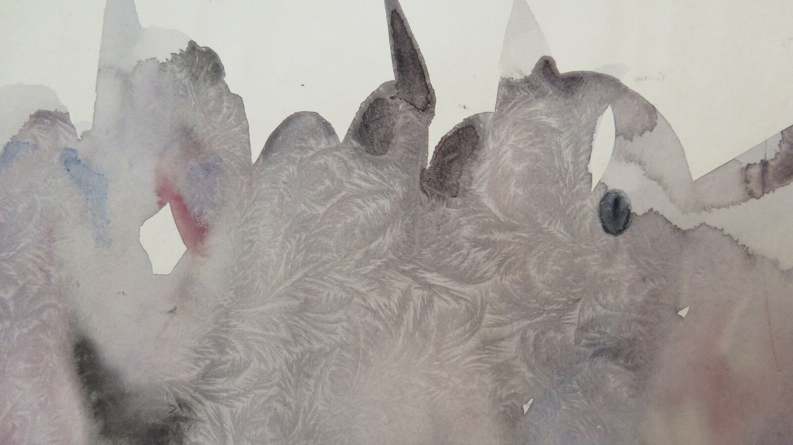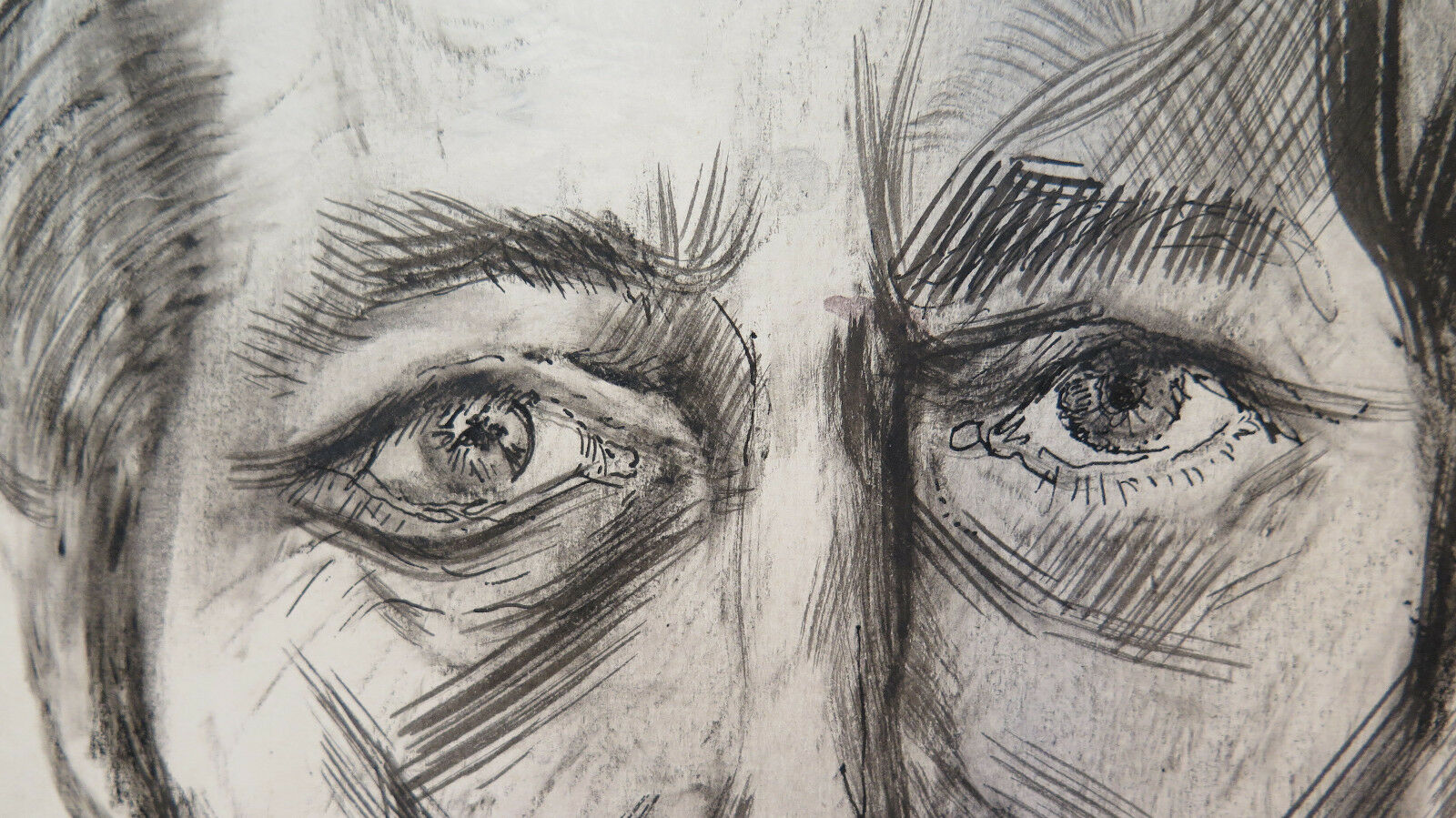 Detail of a watercolor painting on cardboard executed by the painter Gaetano Pancaldi (1922-1014) from Piumazzo di Castelfranco Emilia, the work in question is an evocative self-portrait in mature age in which his face stands out against a frozen sky.
