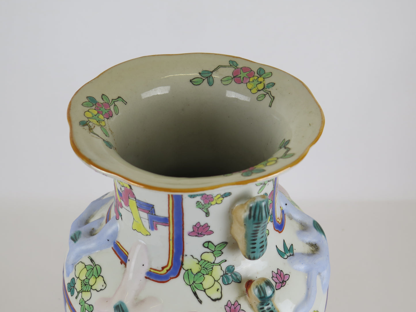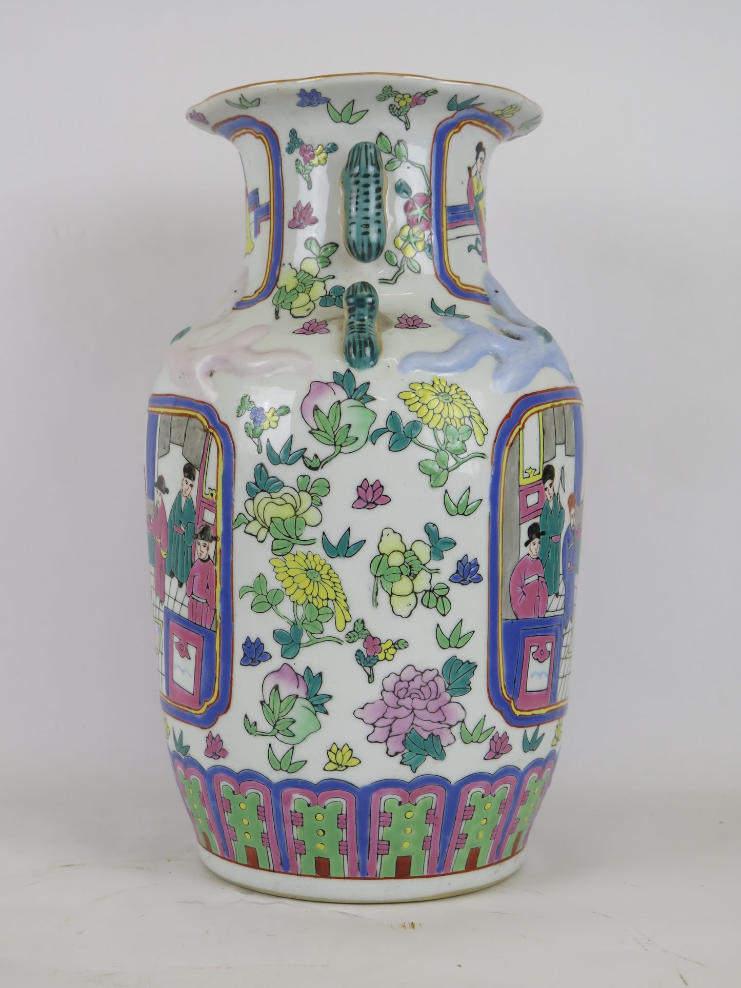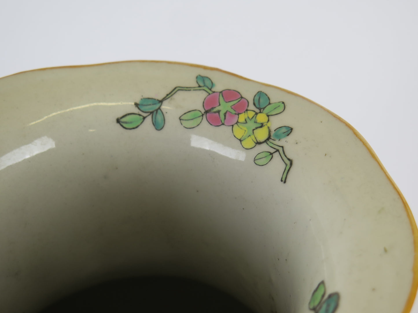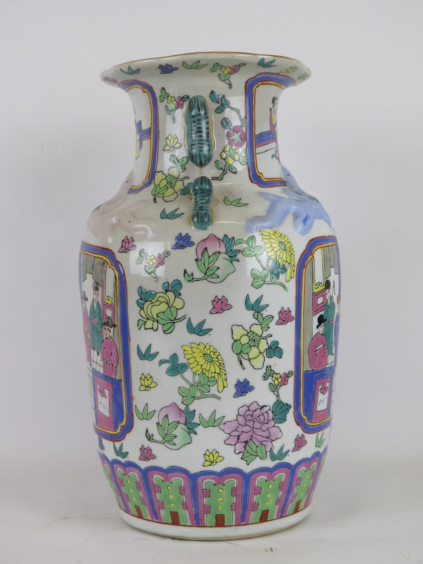 Hand-painted ceramic vase China 1900s Asian Chinese sustainable art green CM3