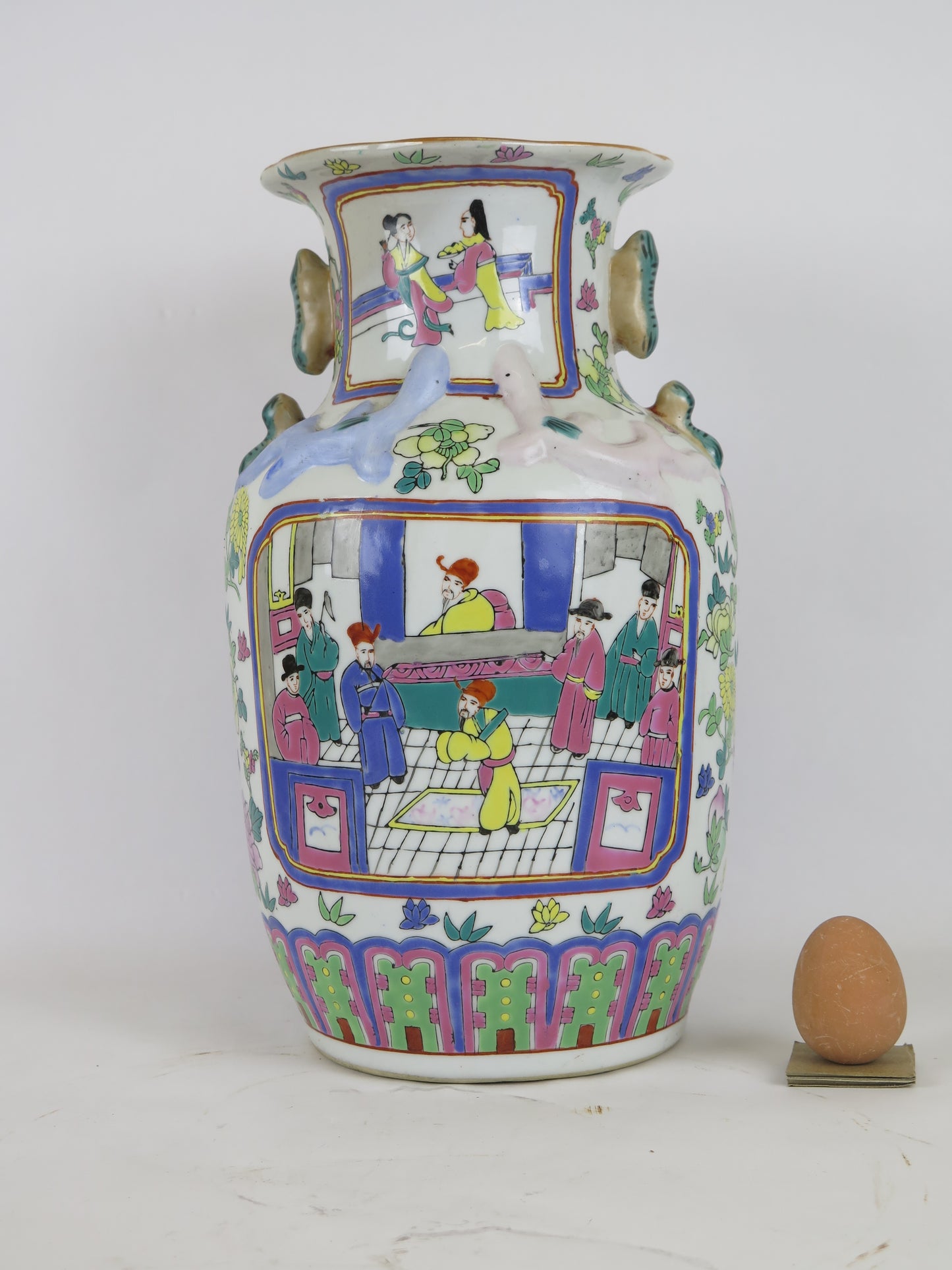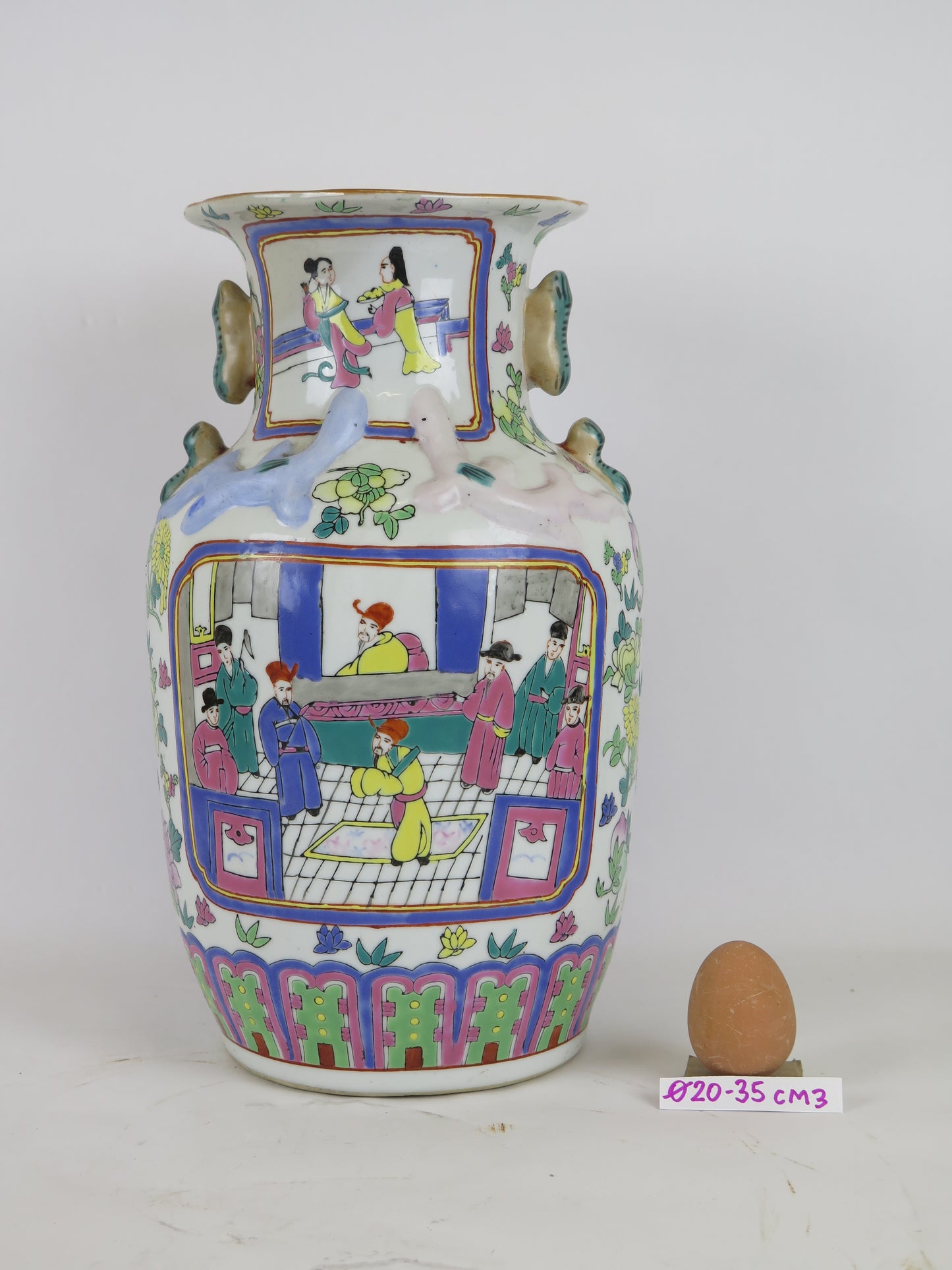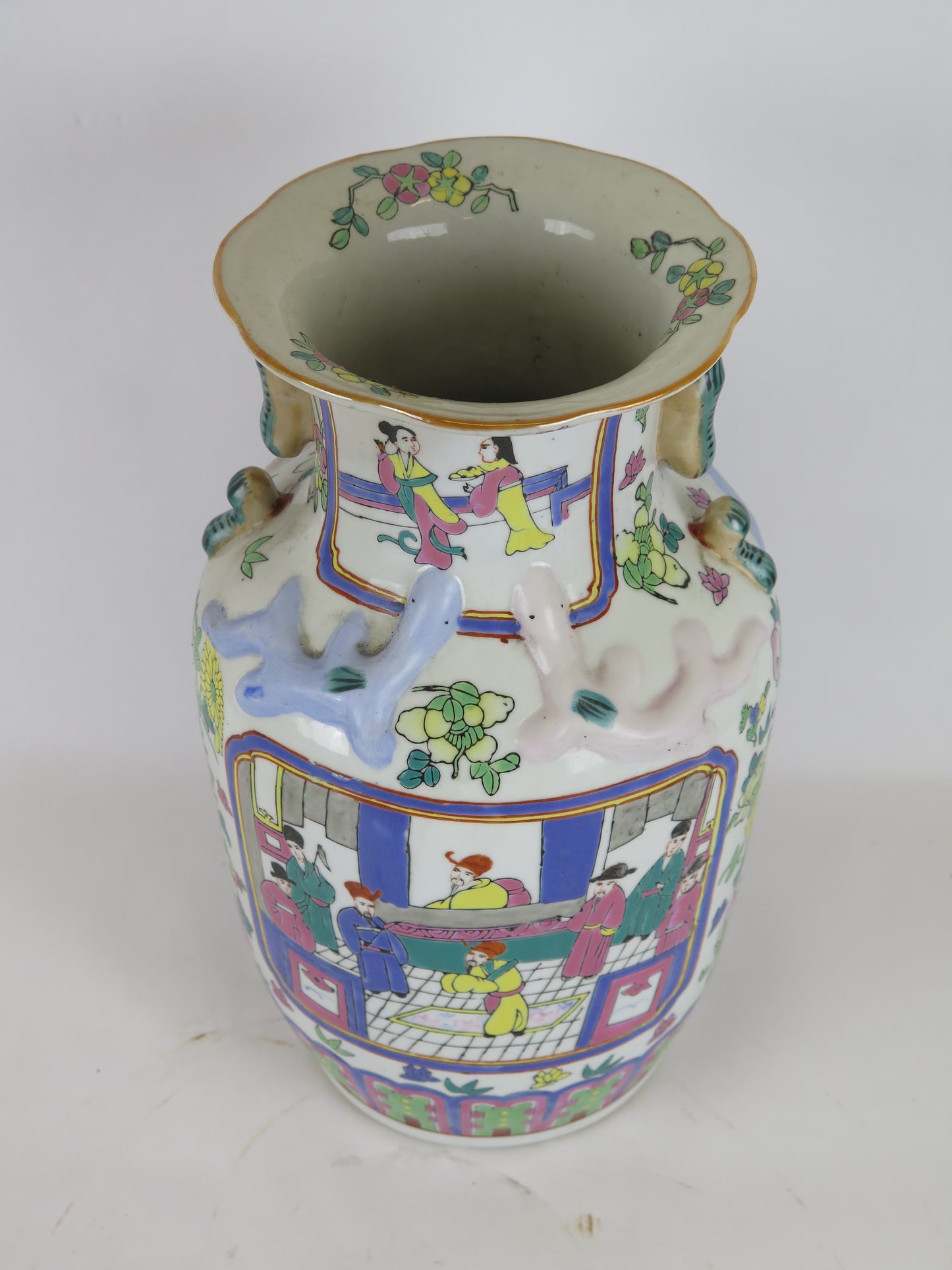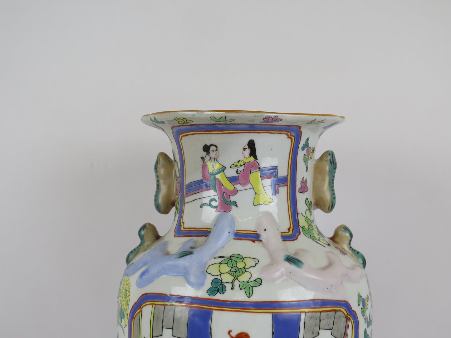 Hand-painted ceramic vase China 1900s Asian Chinese sustainable art green CM3