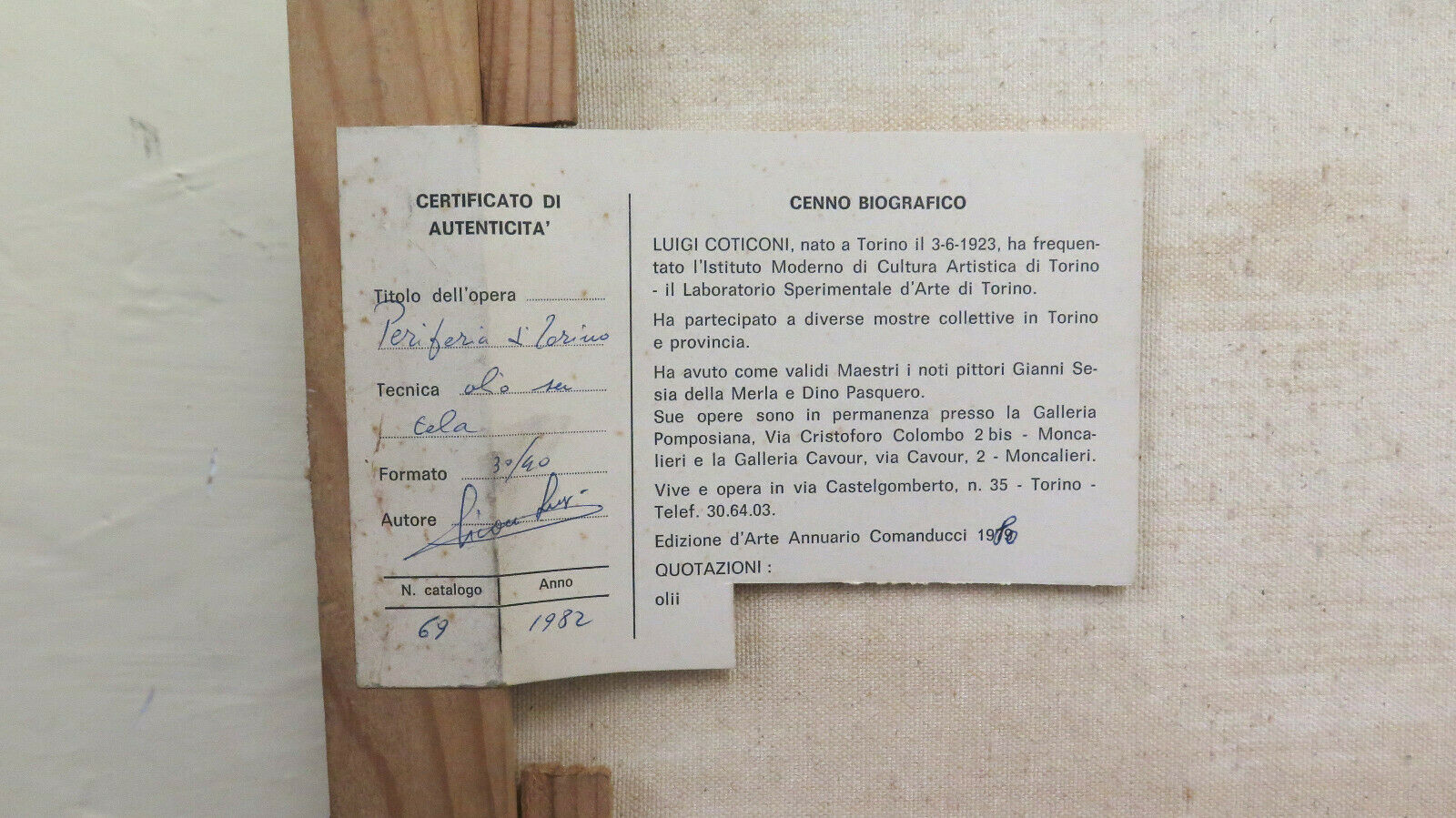 Evocative painting entitled "Surbs of Turin" by the painter Luigi Coticoni (b. 1923).
