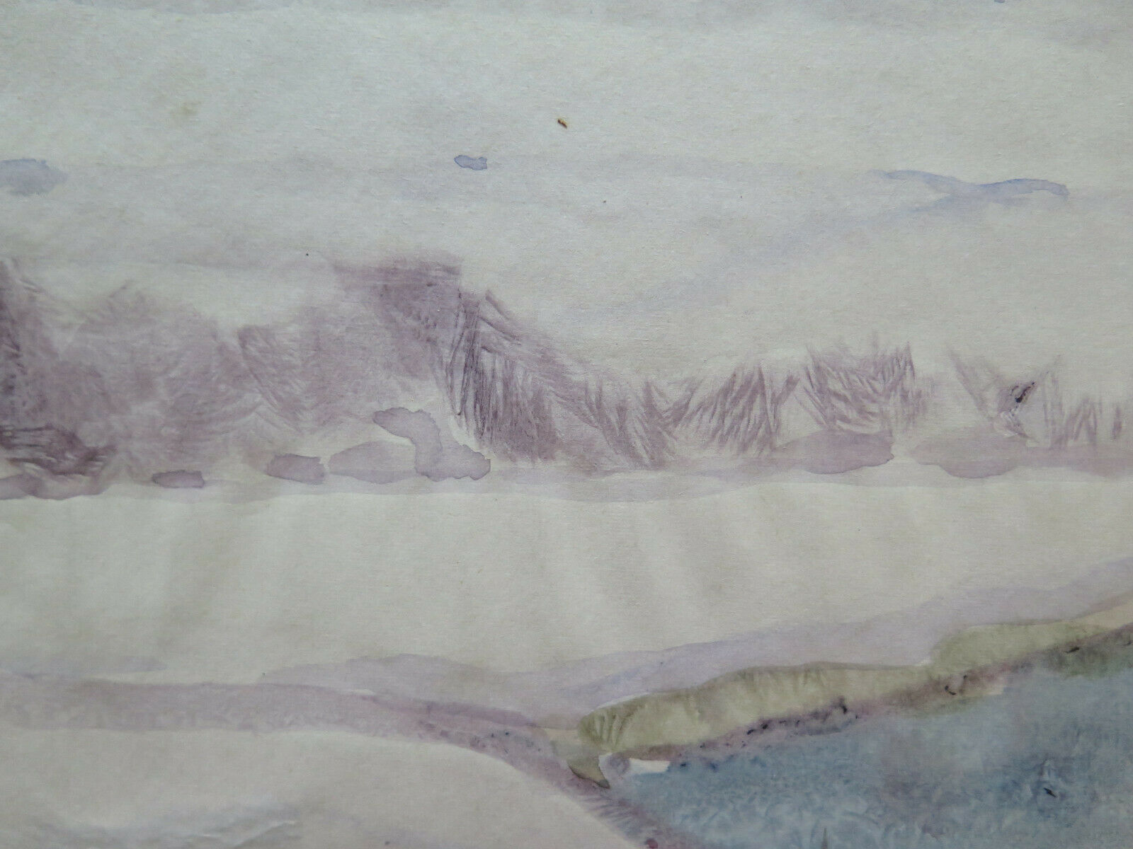 Medium and painting surface: watercolor on paper painted with "Ice technique" that was invented by Pancaldi to obtain the ice effect in some part of the painting surface, this technique consists of literally freezing the fresh wet painting and subsequently work on it again. He used this technique starting from the early '60's and kept working on it for all his life until the extraordinary results of the 80's and 90's ice paintings.