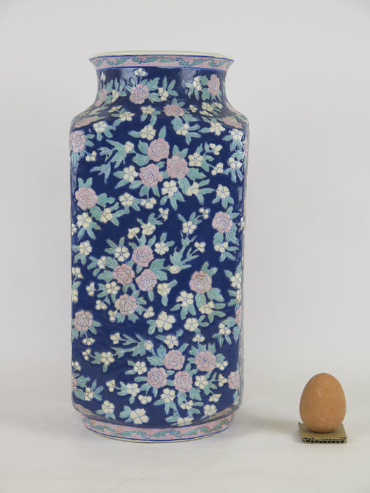 Large hand-painted ceramic vase with flowers Chinese ceramic vase China Asia vintage CM7