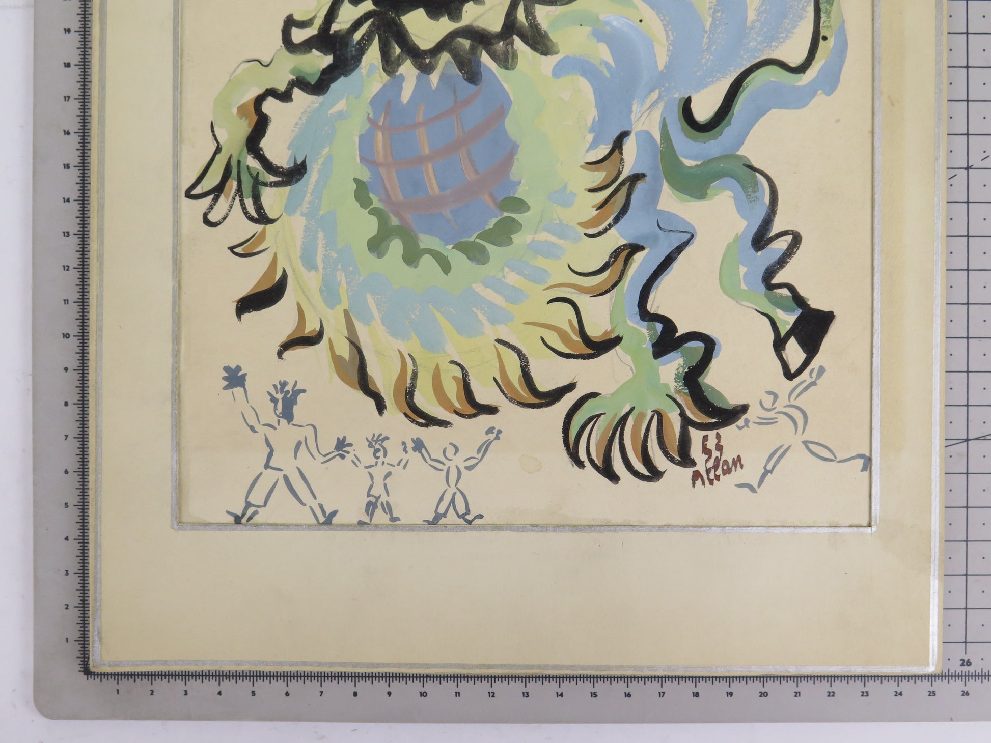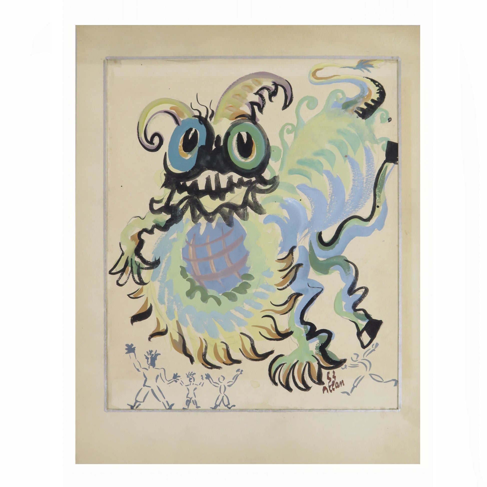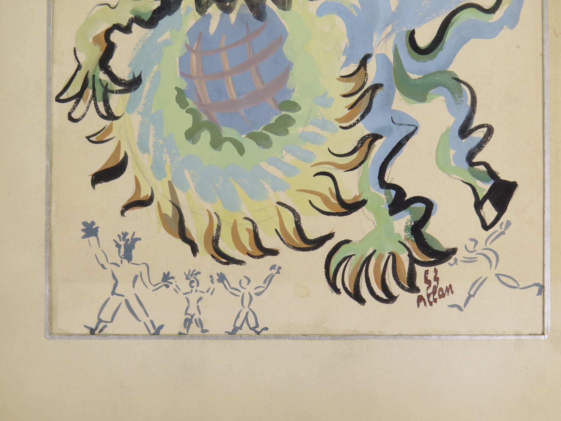 Jean-Michel Atlan (1913 – 1960) original abstract painting signed and dated 53 watercolor technique on paper BM53.6H