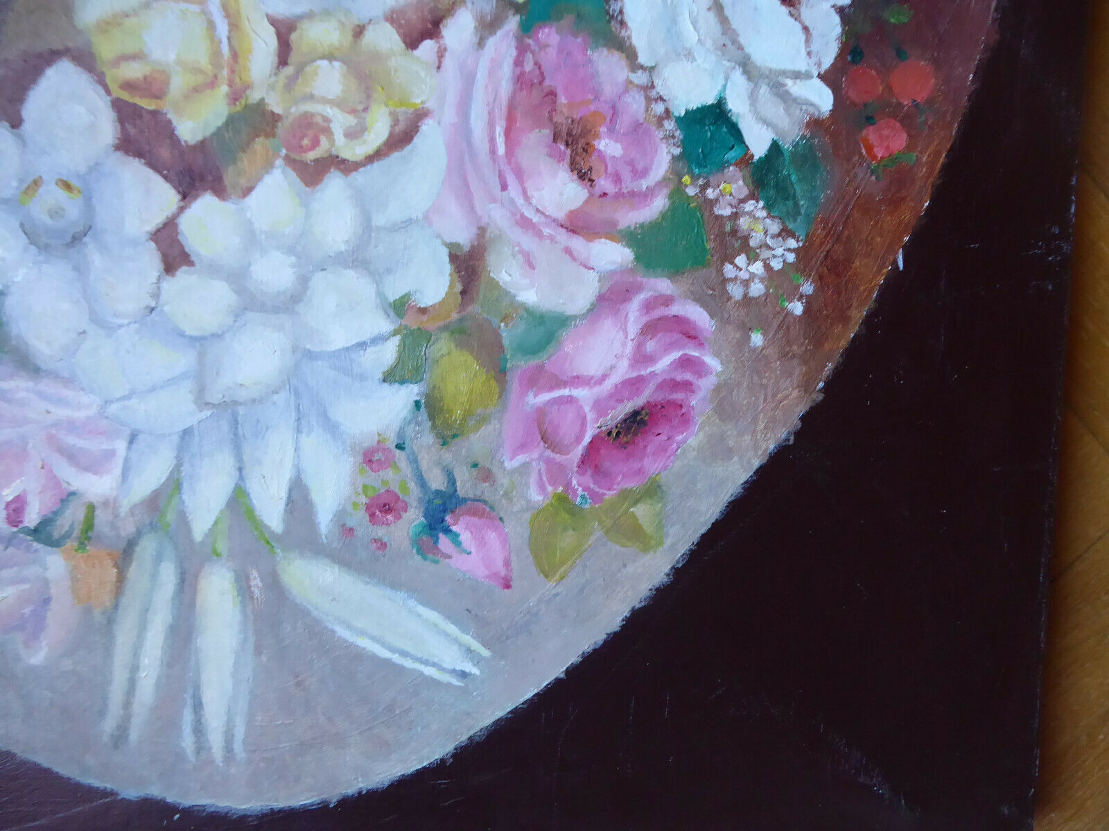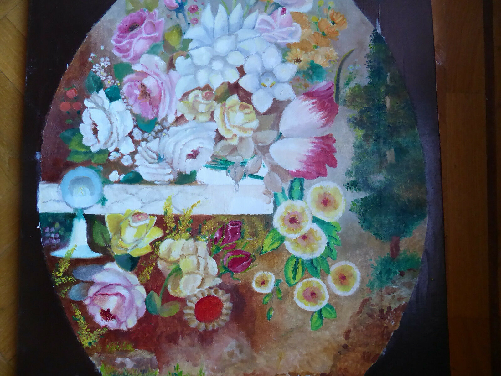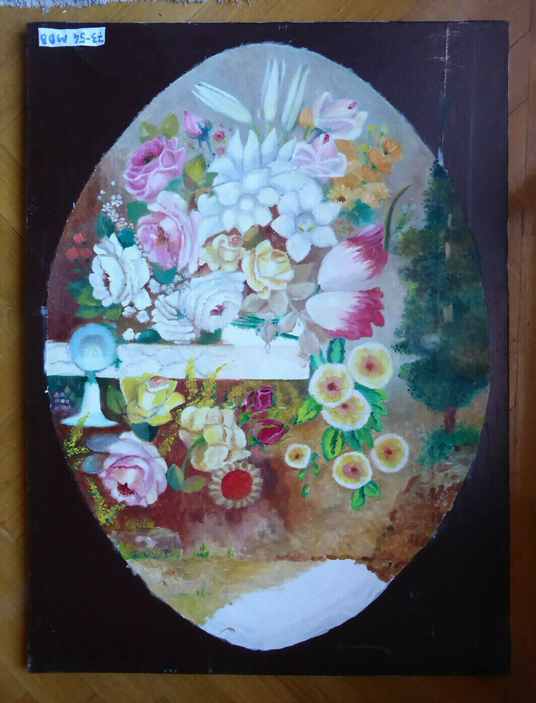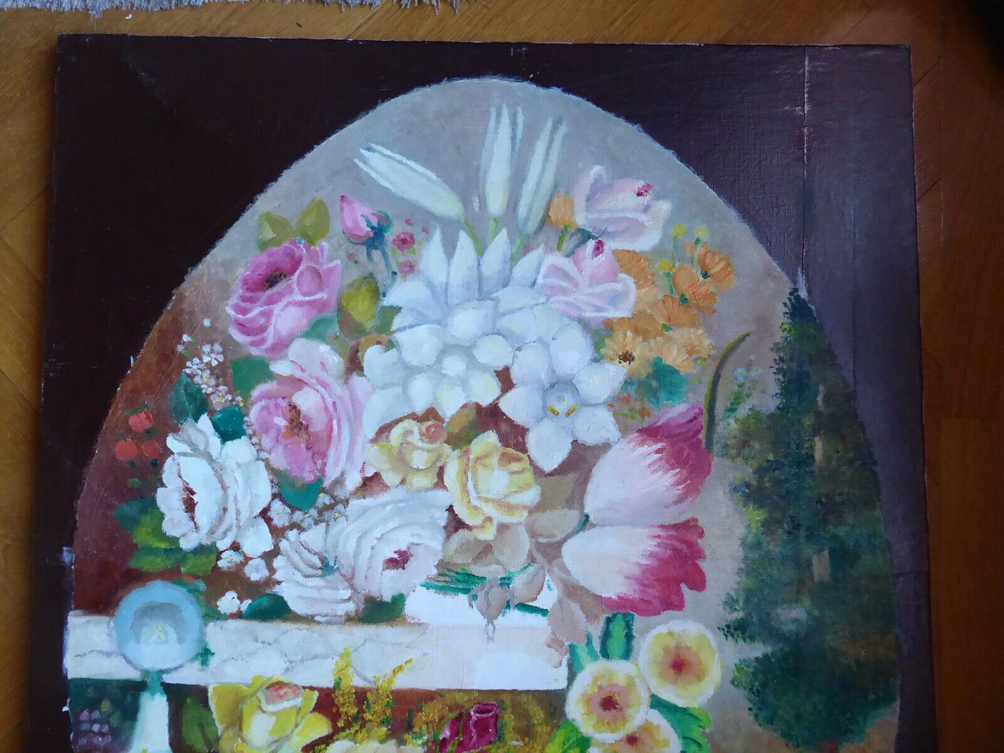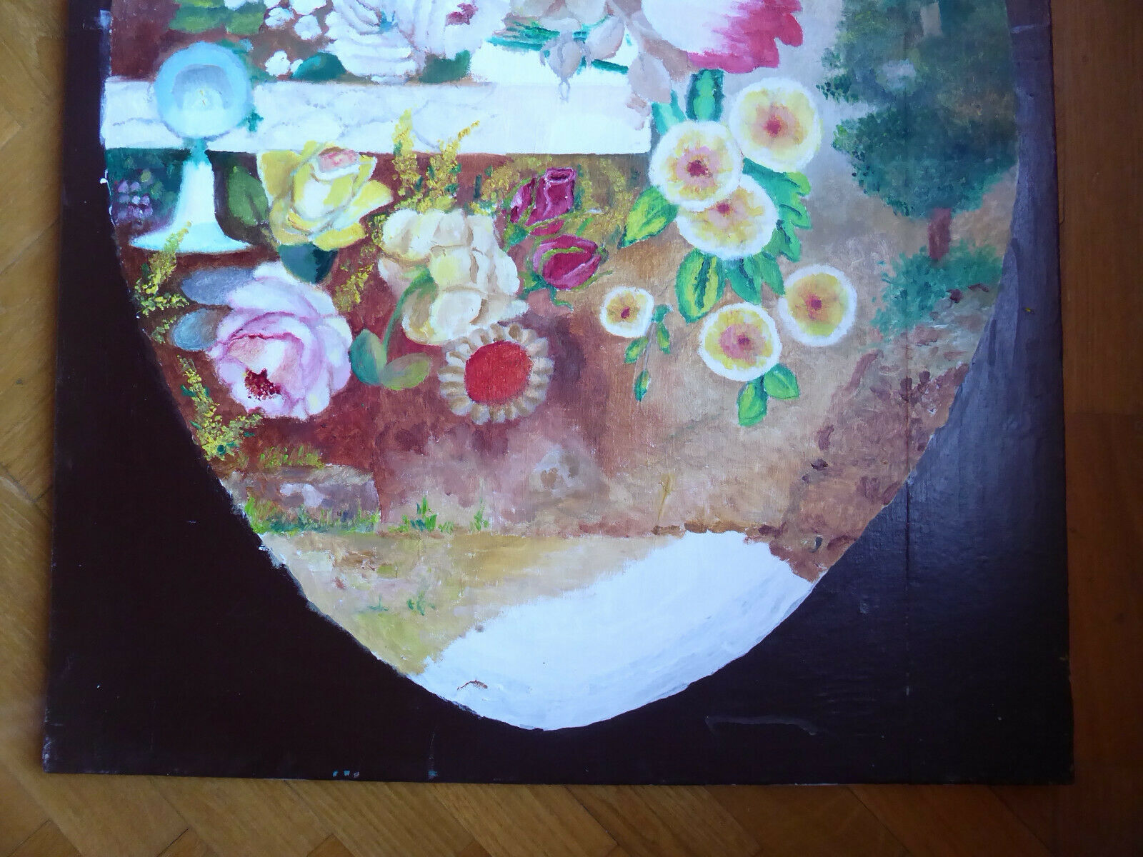OLD OVAL FLOWER PAINTING OIL PAINTING ON CANVAS SPAIN MID 20TH CENTURY MD8