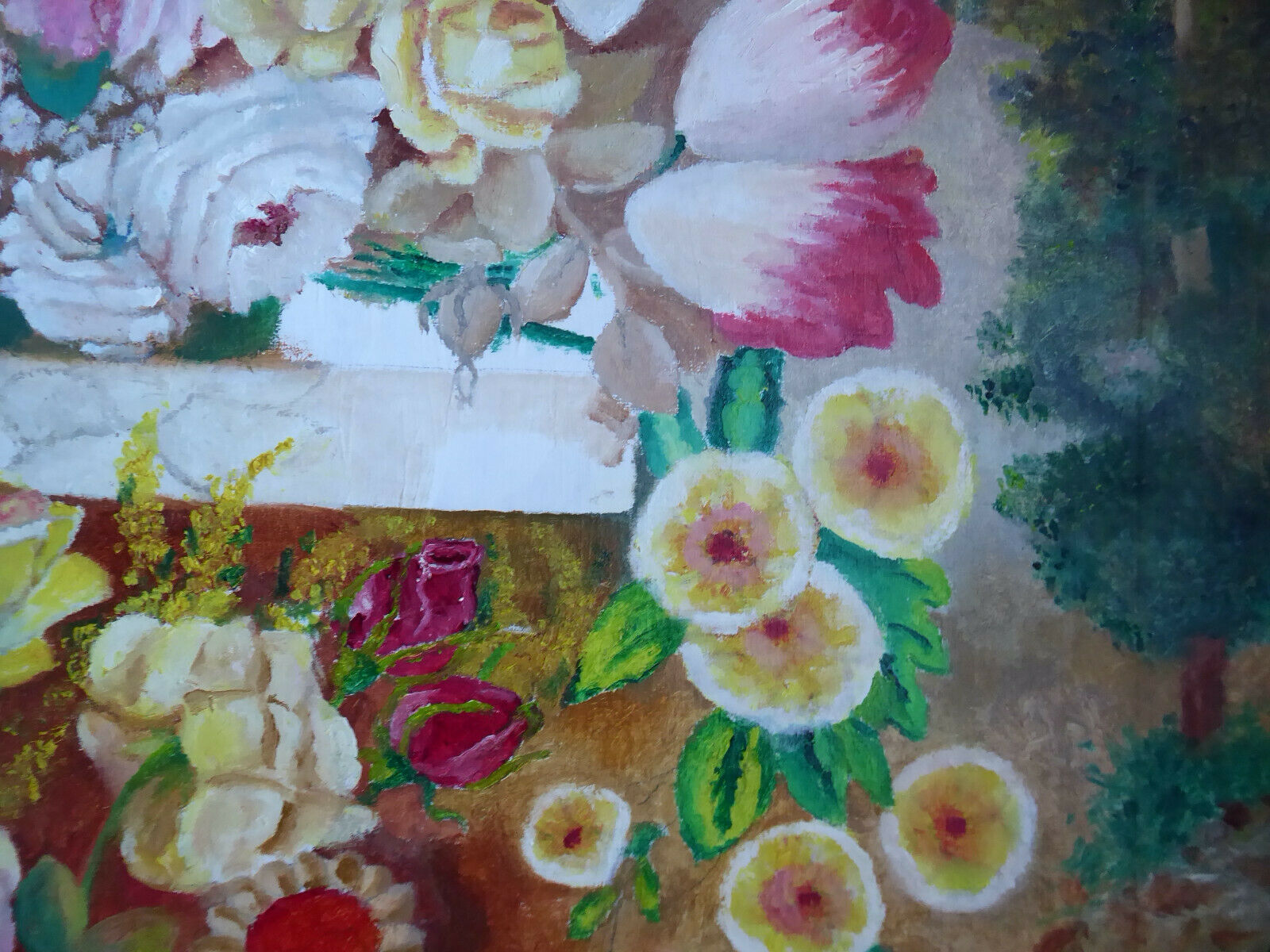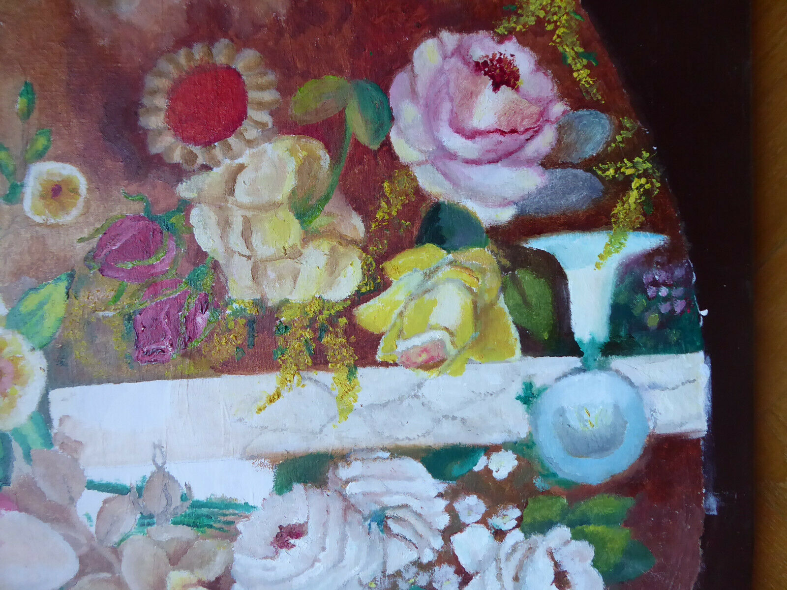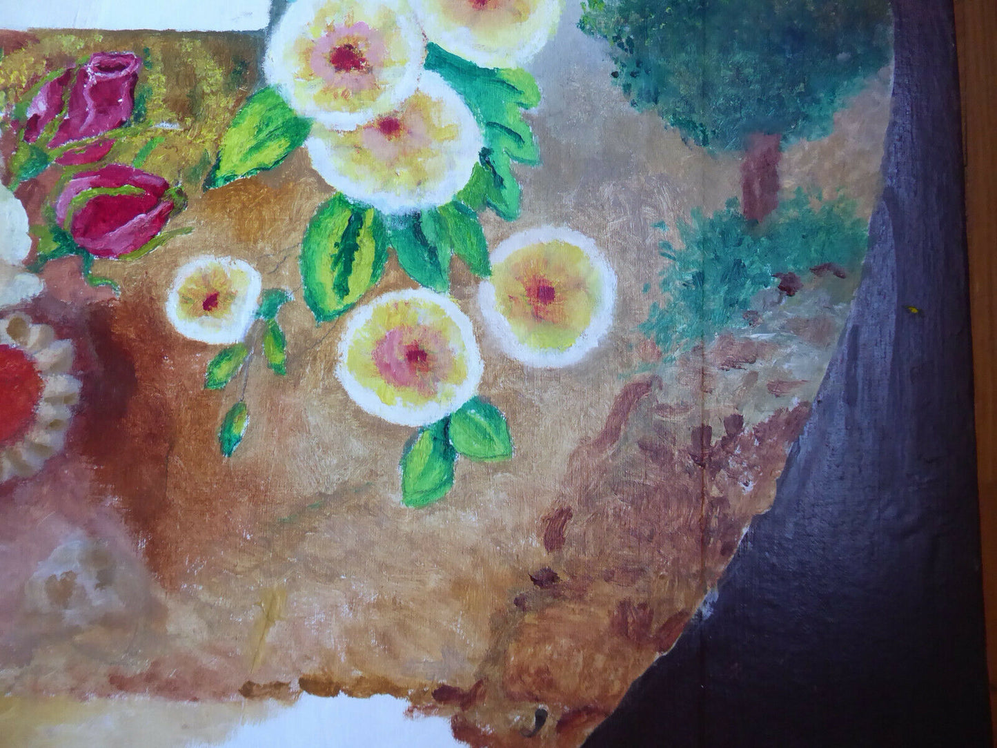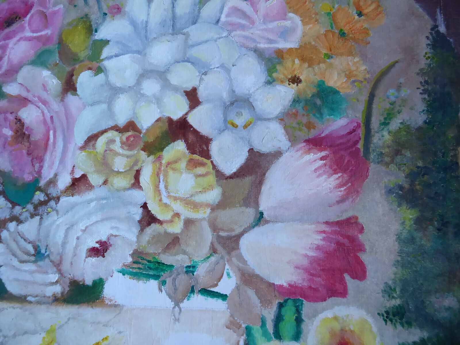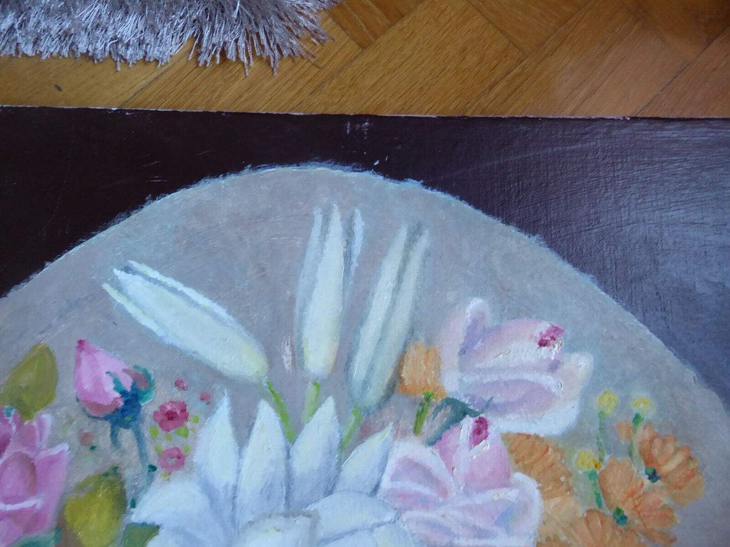 OLD OVAL FLOWER PAINTING OIL PAINTING ON CANVAS SPAIN MID 20TH CENTURY MD8