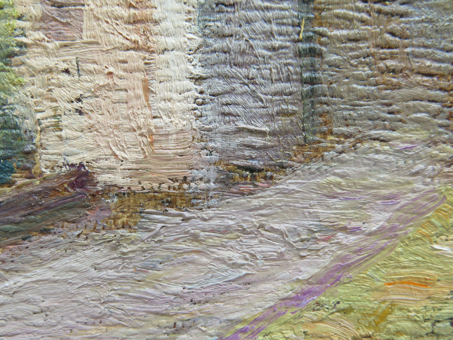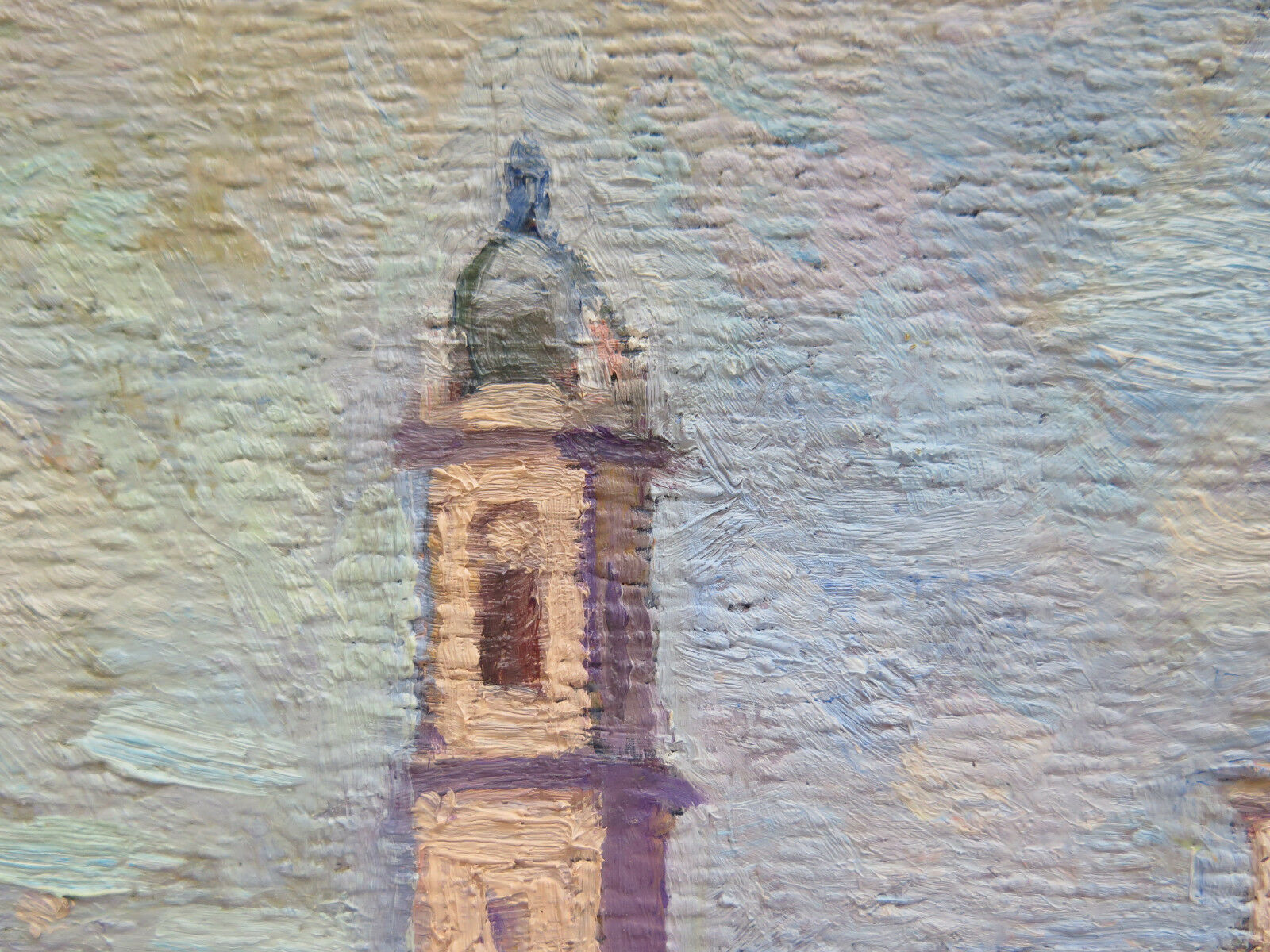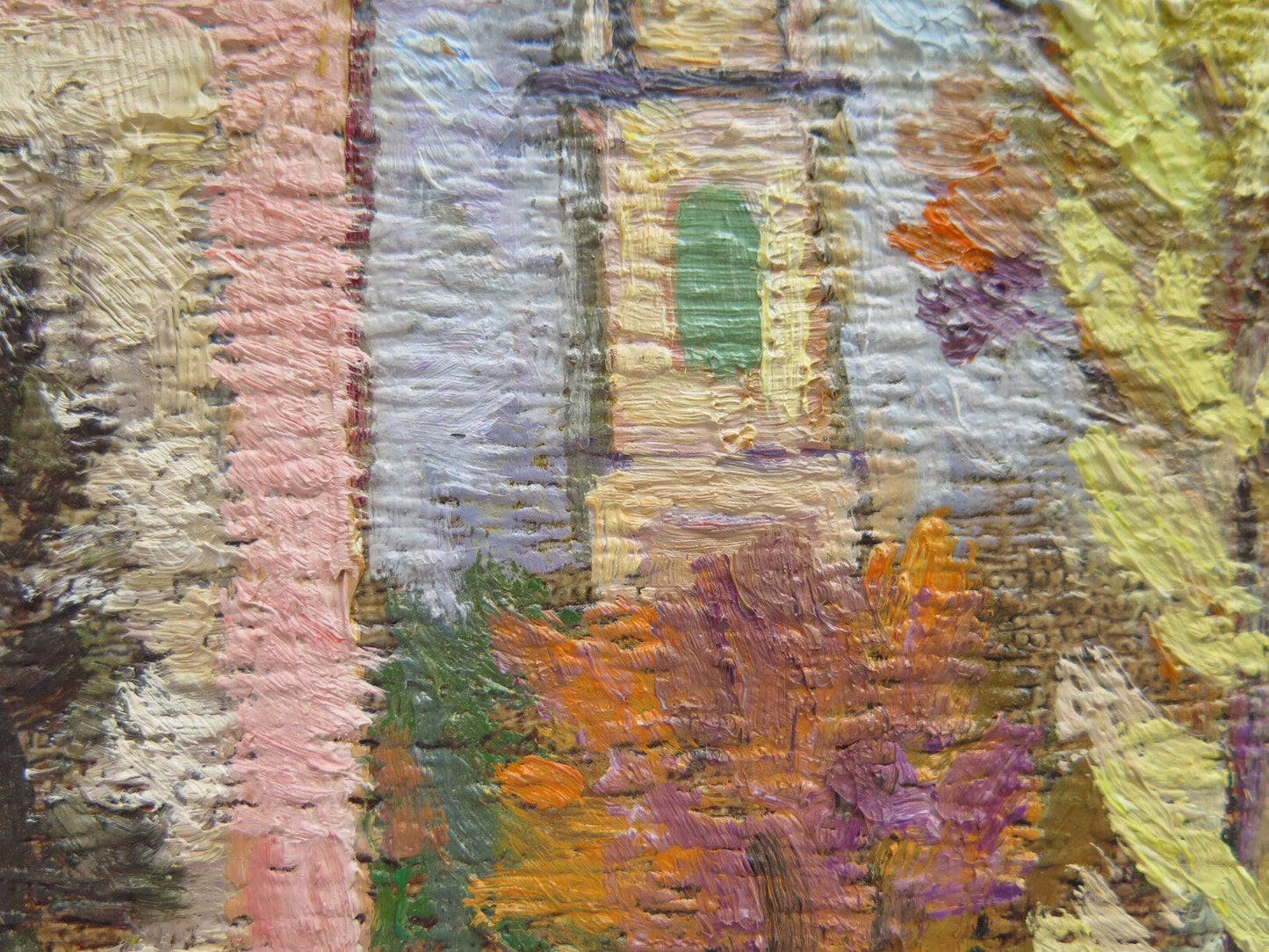 ANCIENT OIL PAINTING ON PAINT IN IMPRESSIONIST STYLE OF A CITY VIEW
