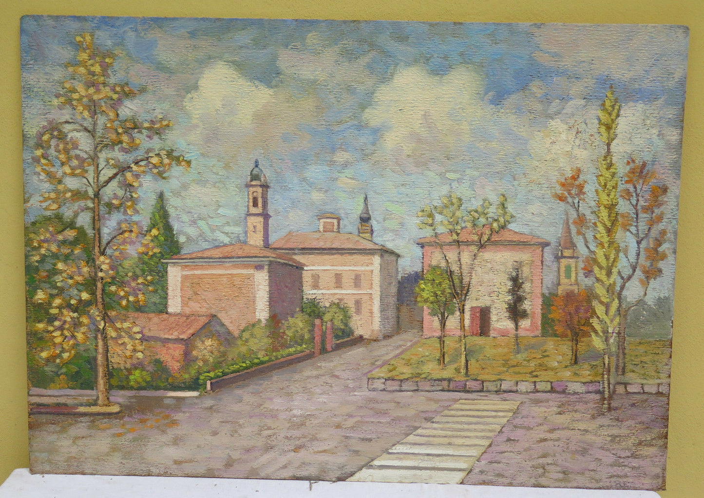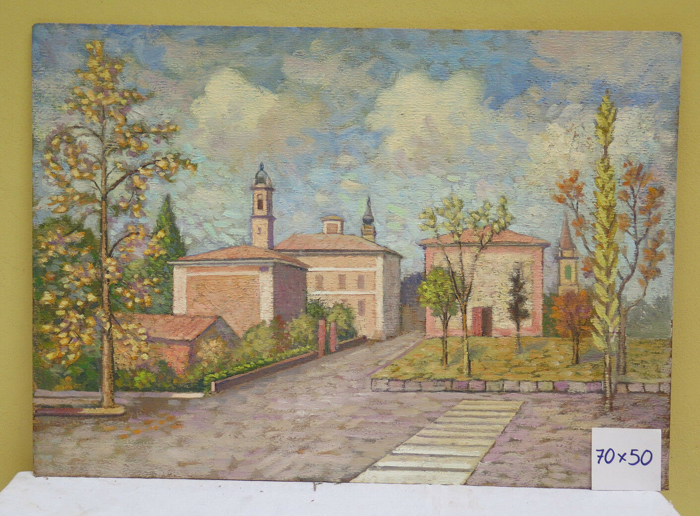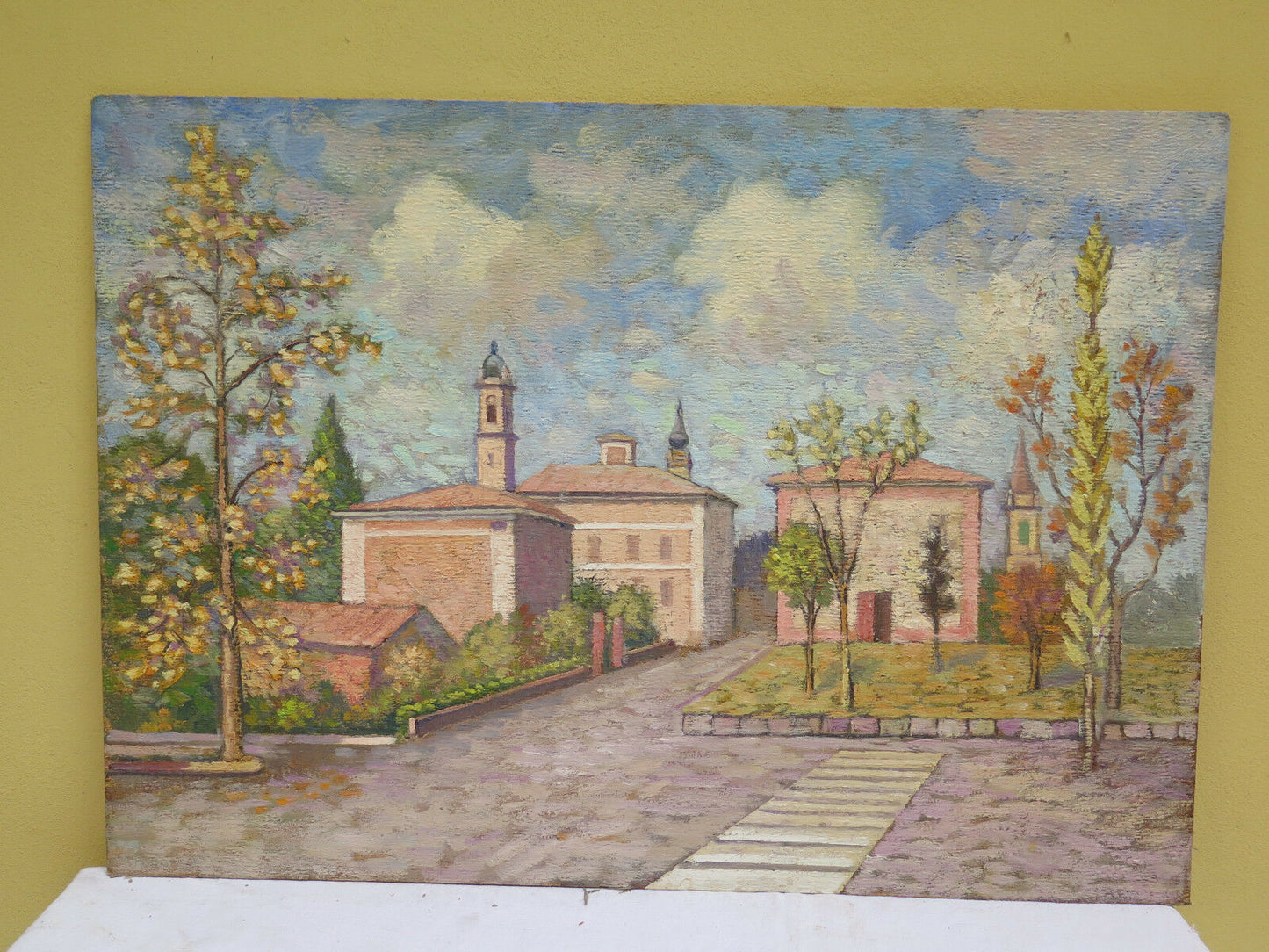 ANCIENT OIL PAINTING ON PAINT IN IMPRESSIONIST STYLE OF A CITY VIEW