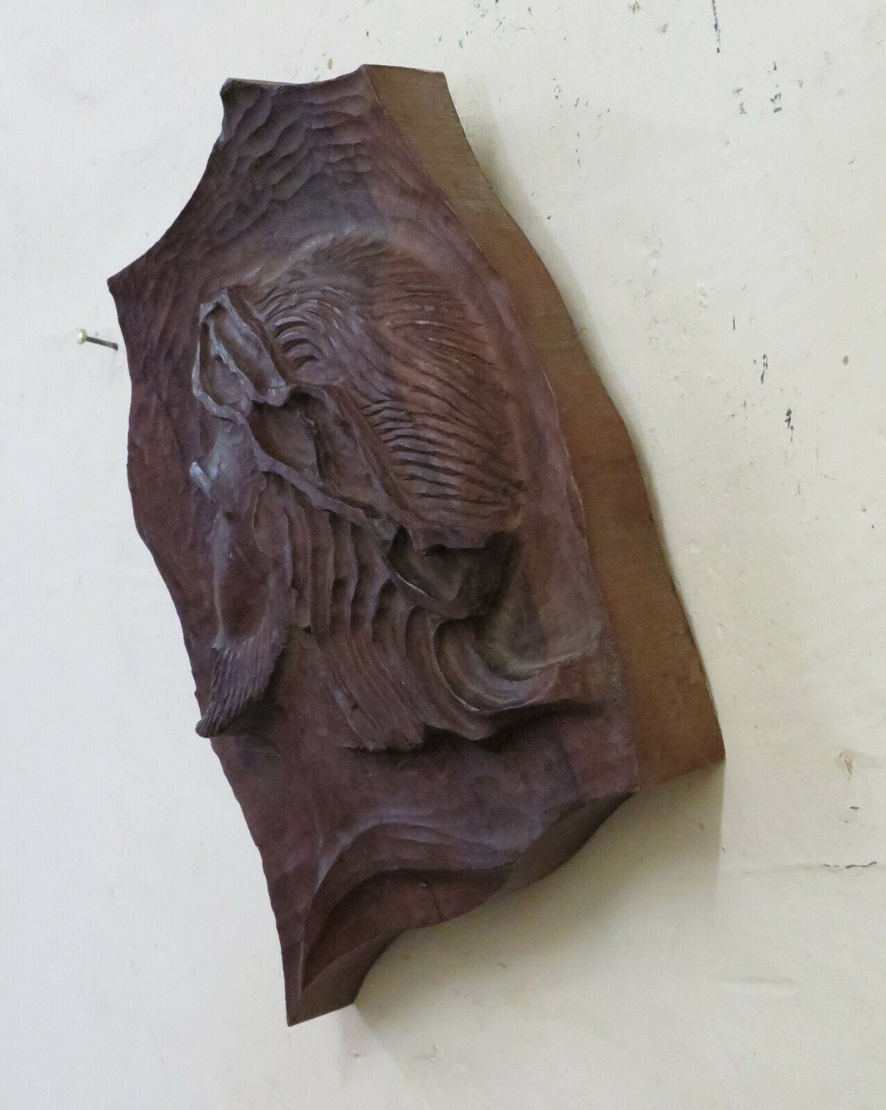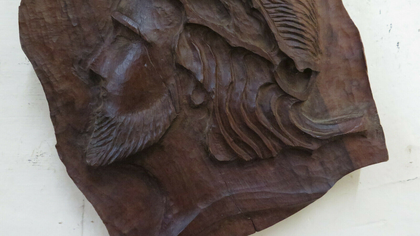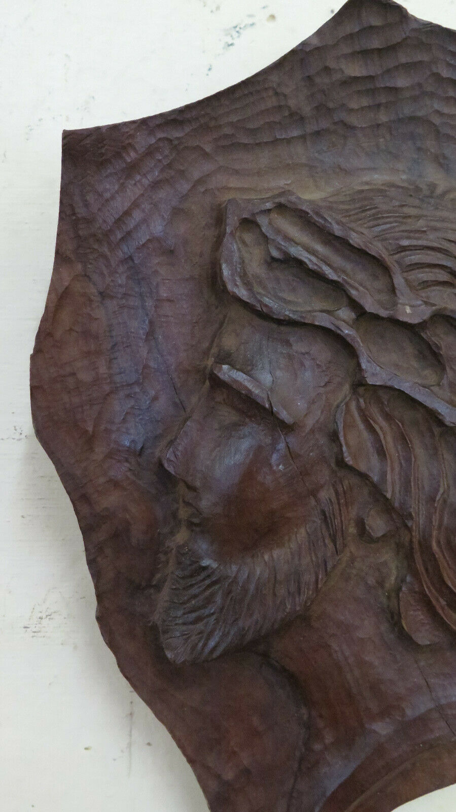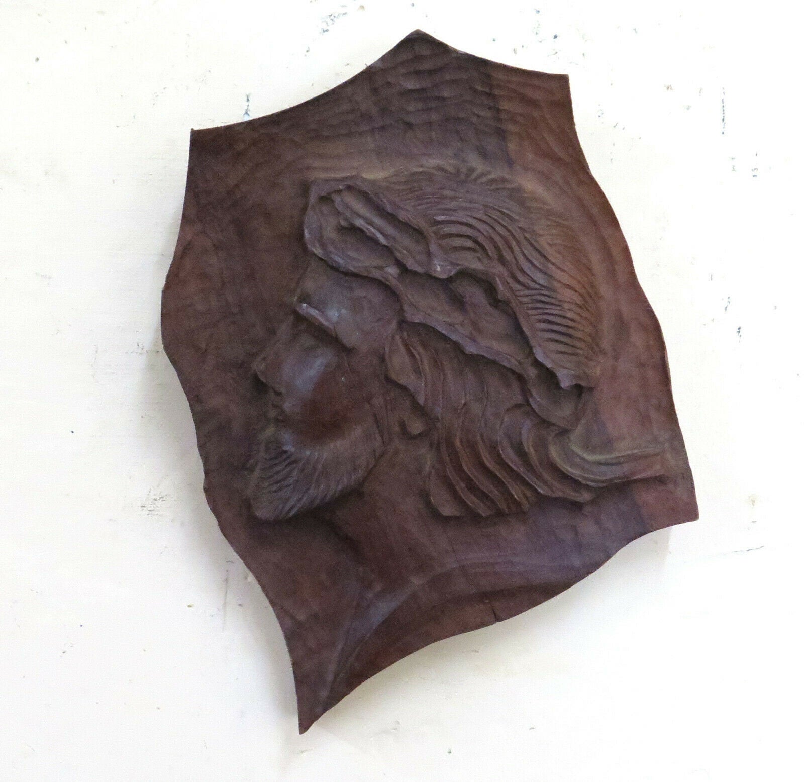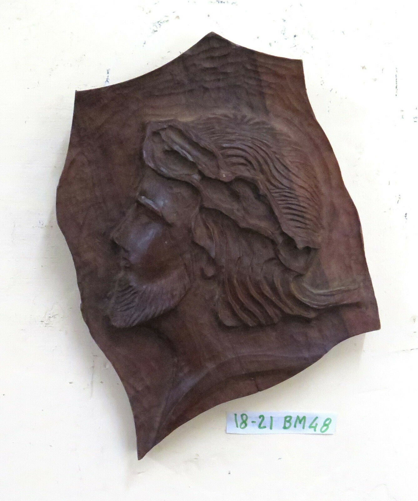 WOODEN BAS-RELIEF WITH THE FACE OF JESUS CHRIST SCULPTURE RELIGIOUS ART BM48