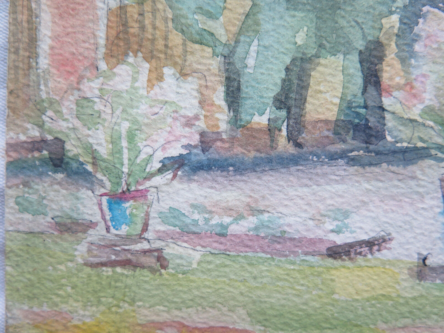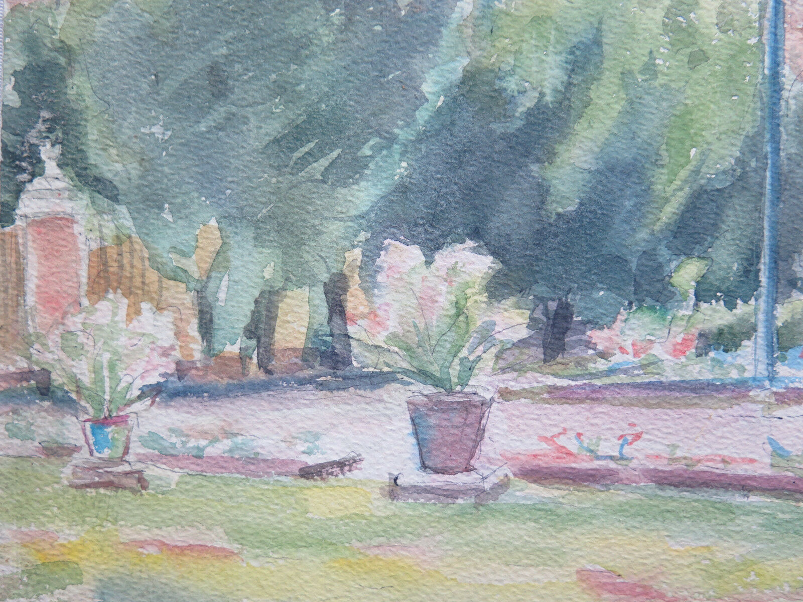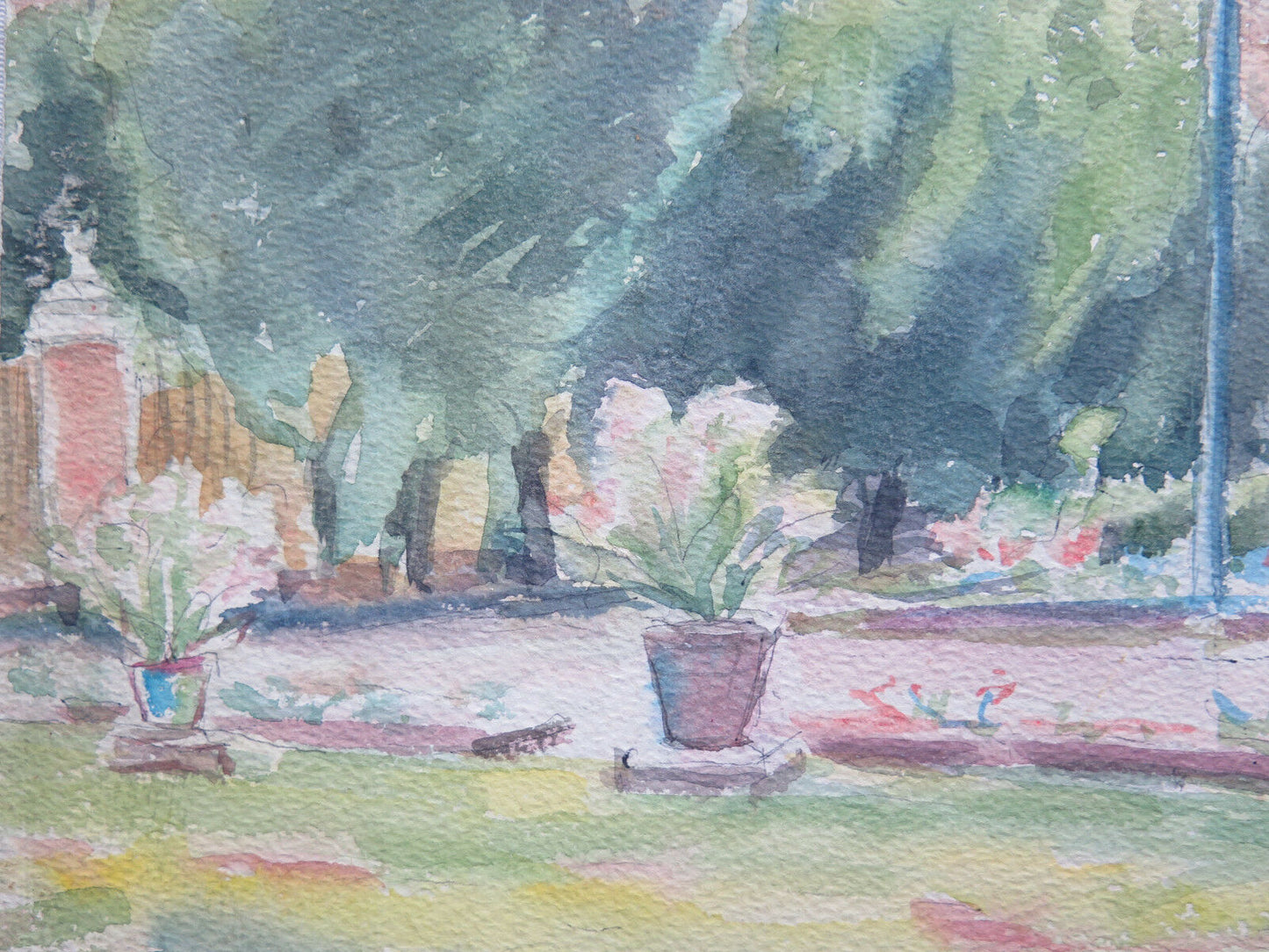 ANTIQUE PAINTING WATERCOLOR PAINTING SPRING LANDSCAPE VIEW OF THE GARDENS p9
