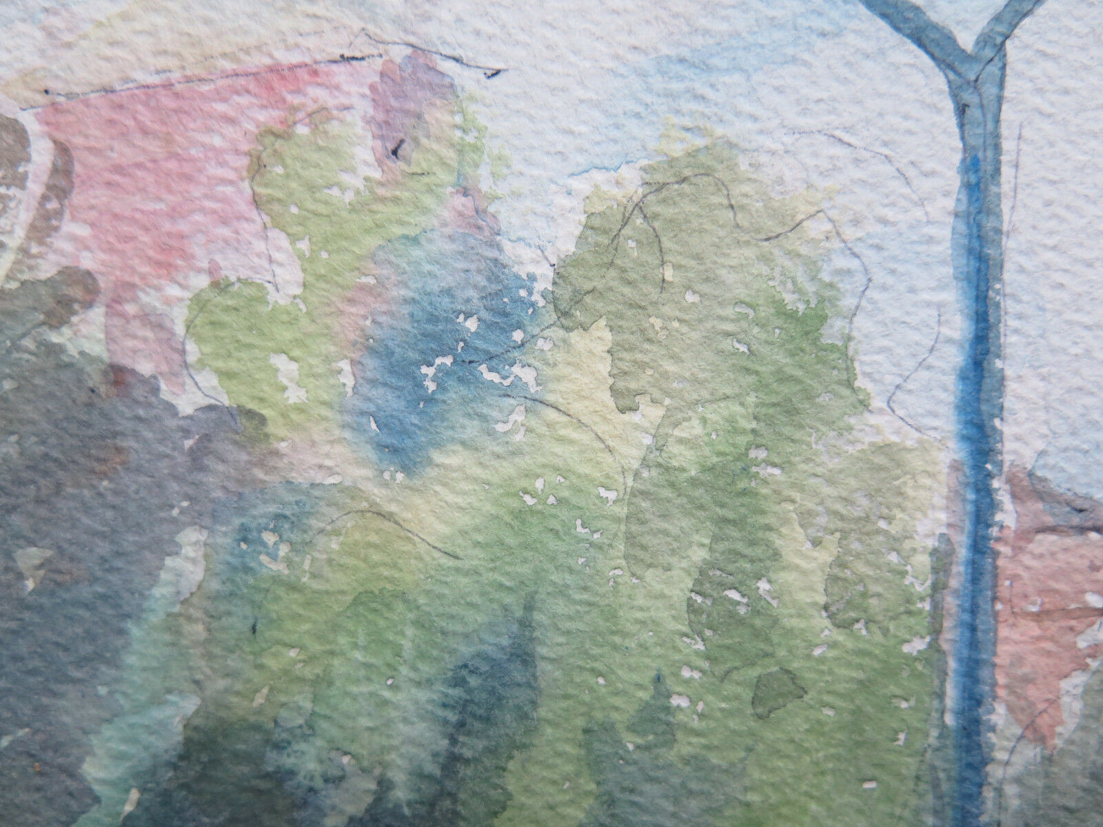 ANTIQUE WATERCOLOR PAINTING ON TABLE