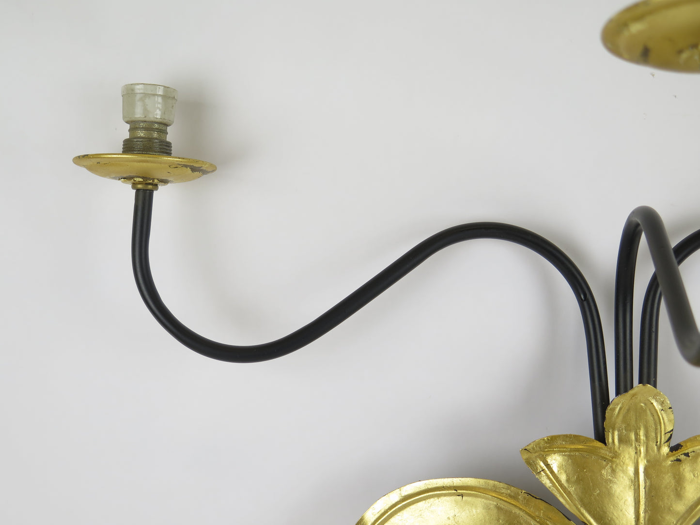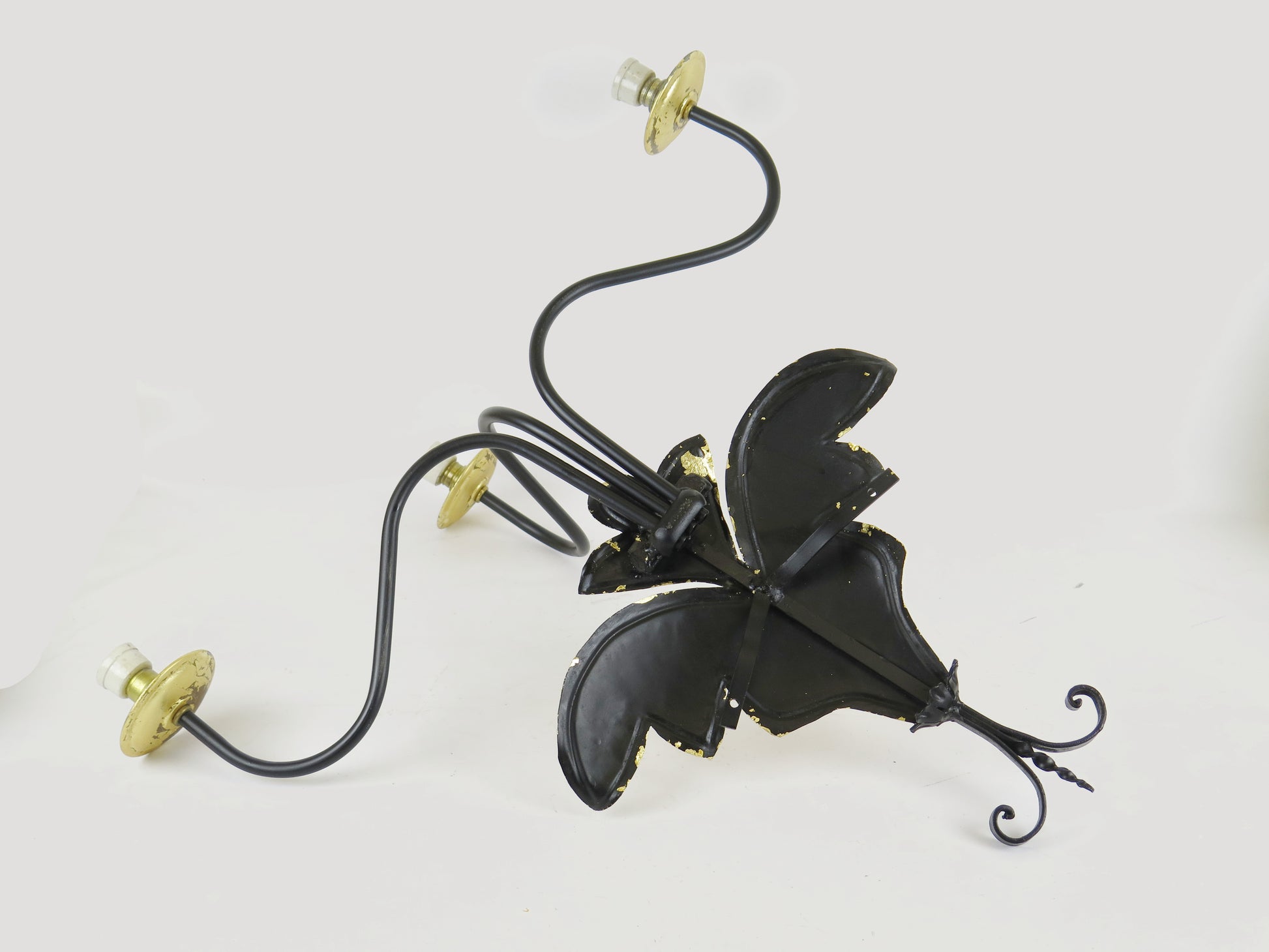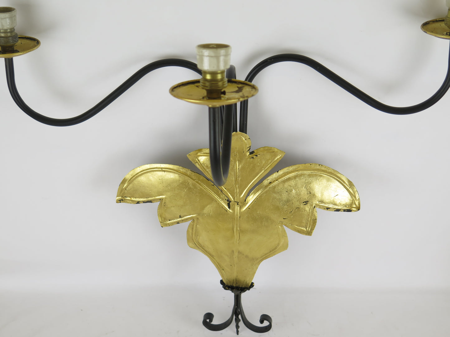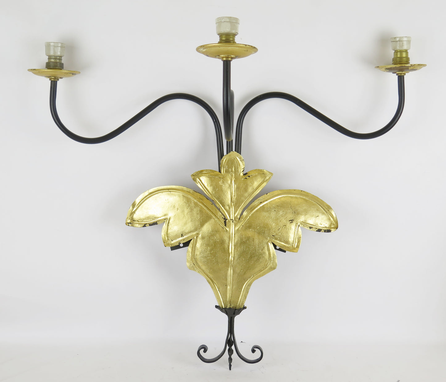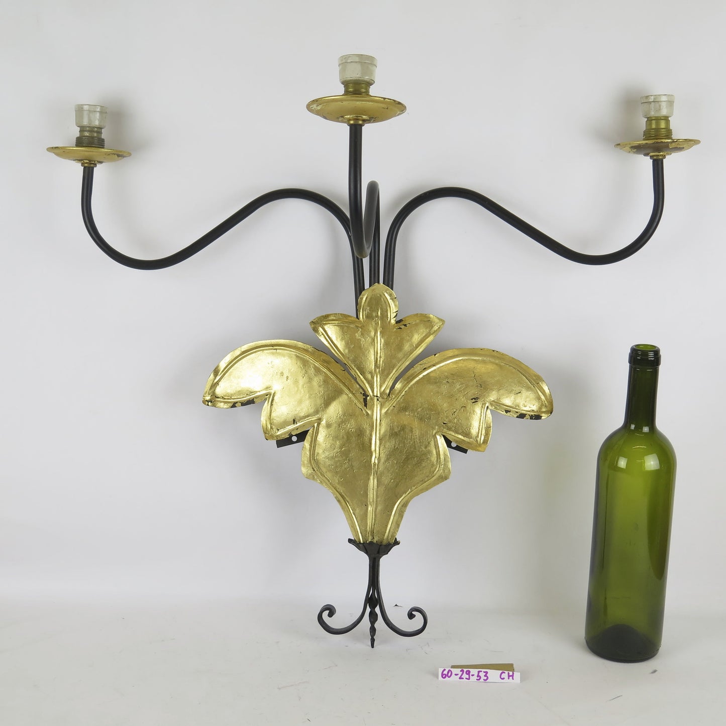 OLD WALL LAMP WITH THREE LIGHTS IN WROUGHT IRON LIGURIAN CRAFTS CH