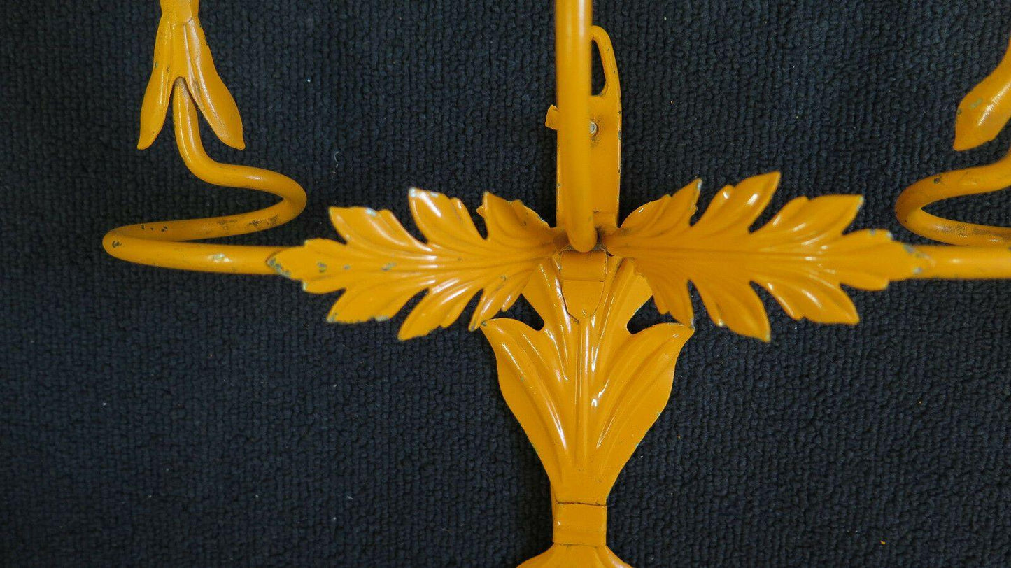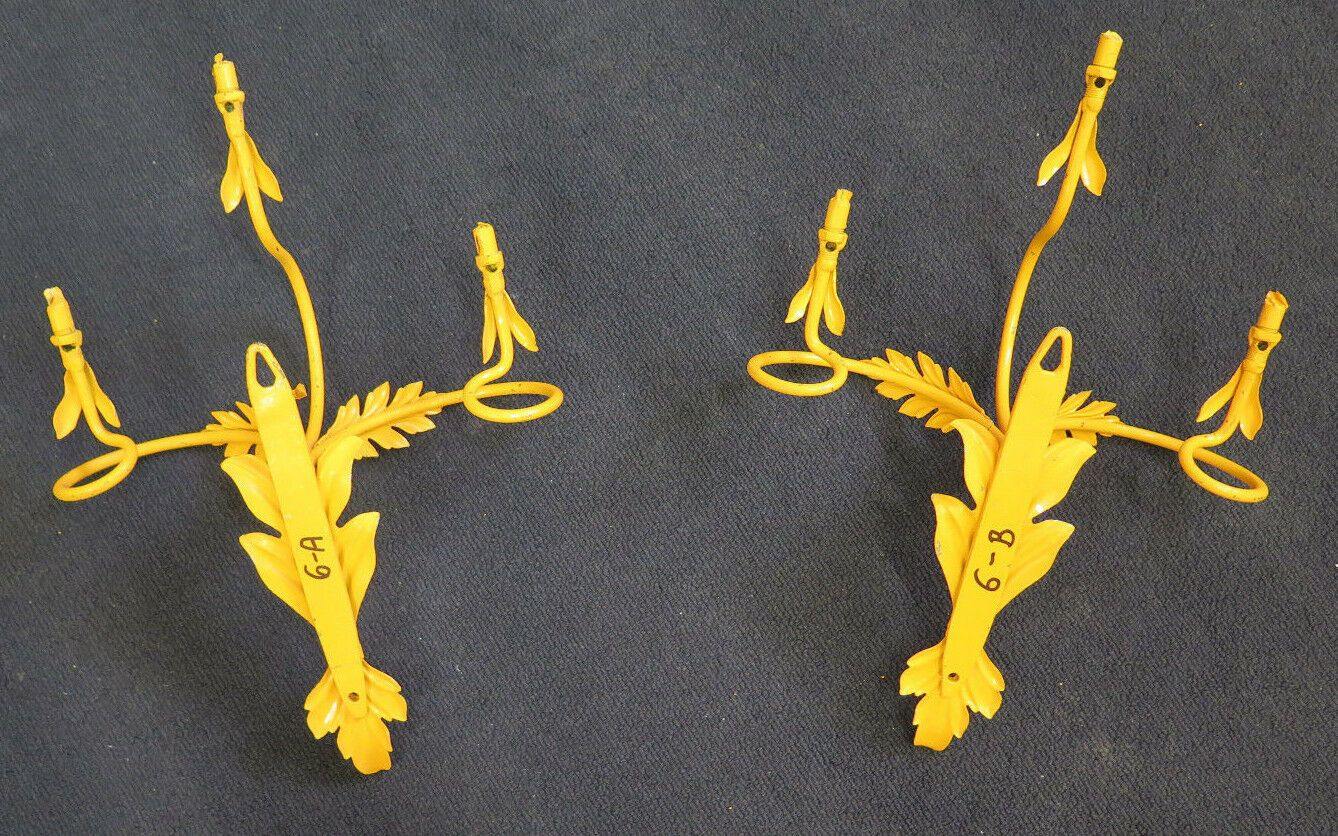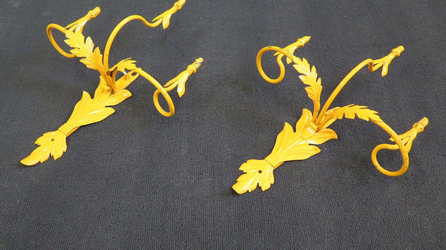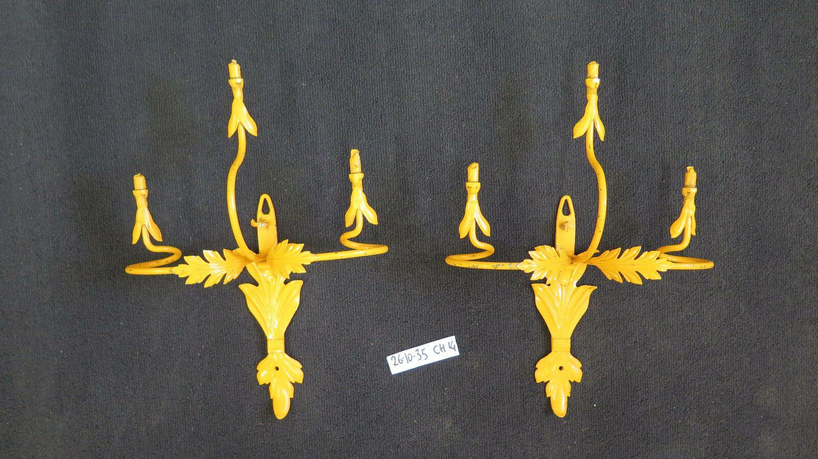 Elegante coppia di applique in ferro battuto fatte a mano dalla premiata Officina Baglini di Chiavari decorata con motivi vegetali in lamierino.