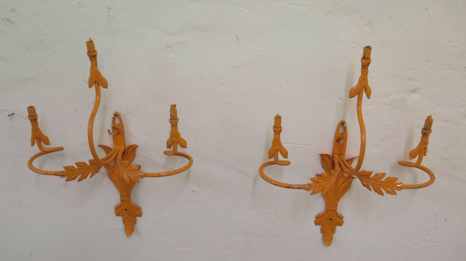 2 APPLIQUE DA PARETE IN FERRO BATTUTO VINTAGE COPPIA DI LAMPADE DA PARETE CH14 6