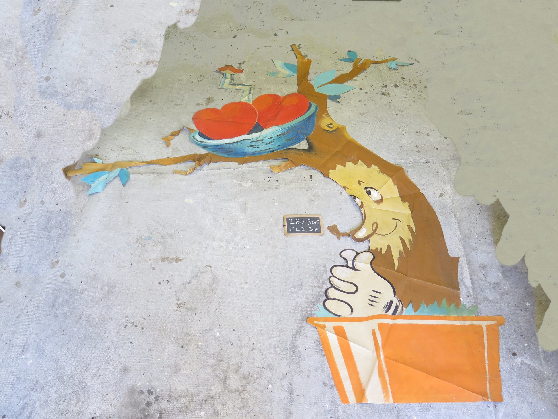 280x360 cm antica scenografia fondale da teatro dipinta mano albero buffo cl2.37