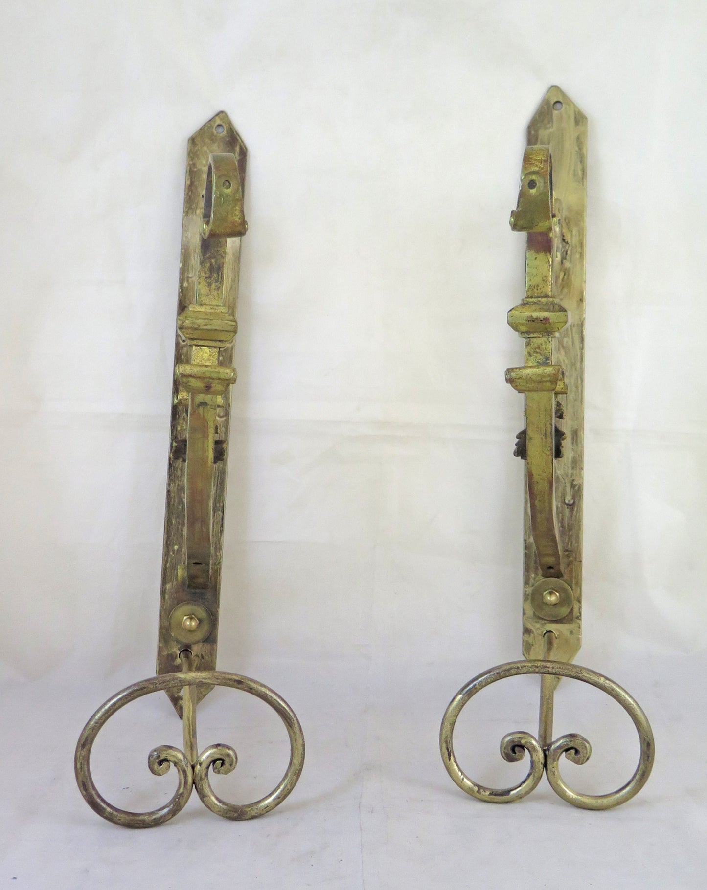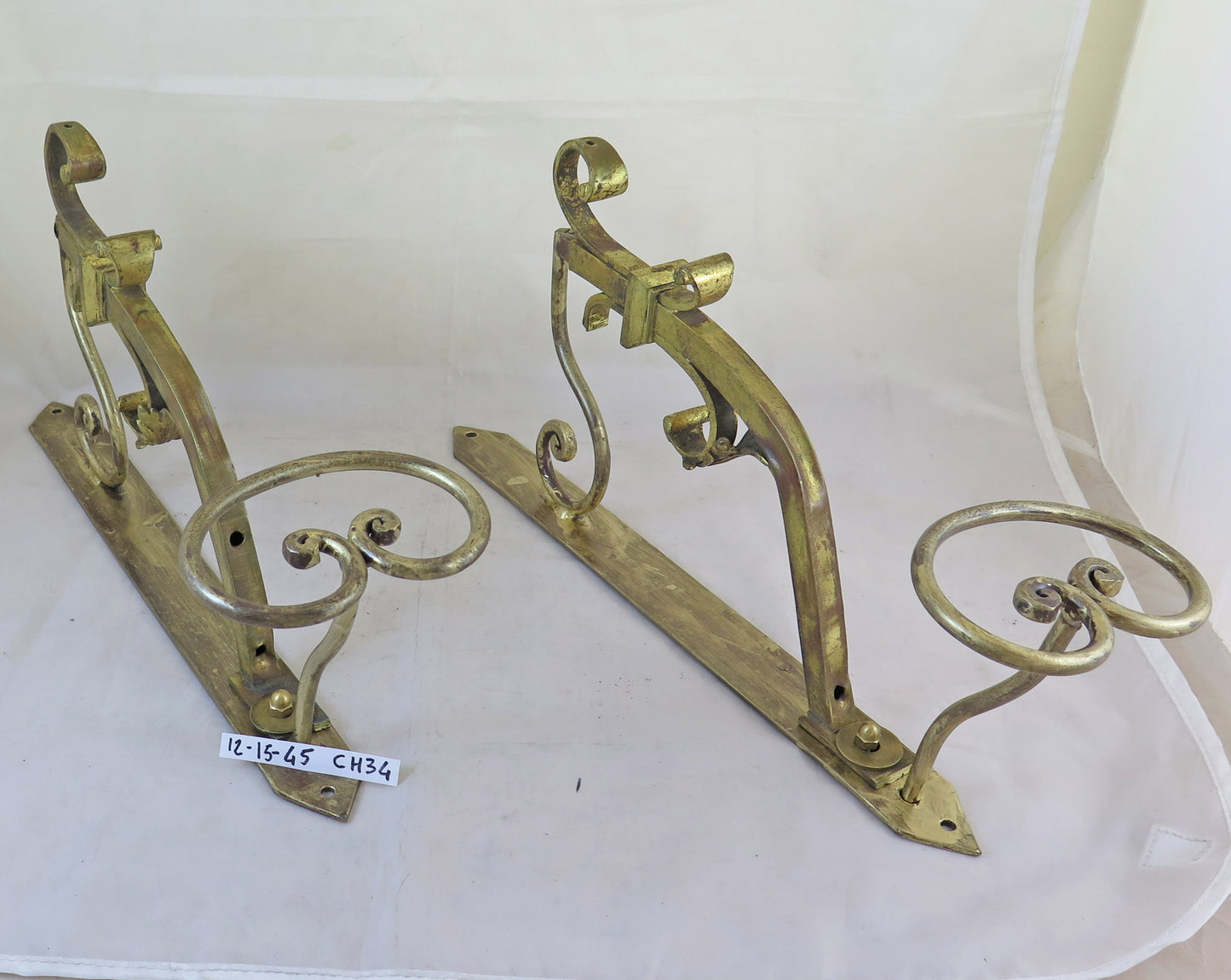 DUE VECCHI ATTACCAPANNI DA MURO IN FERRO BATTUTO FORGIATO MANO E DORATO CH34