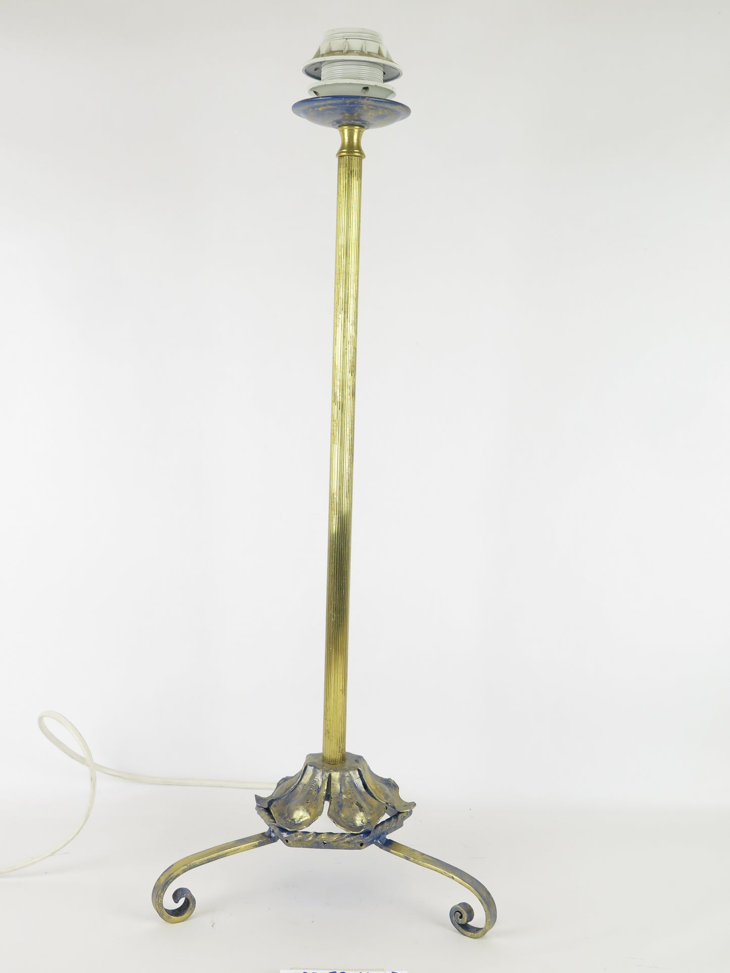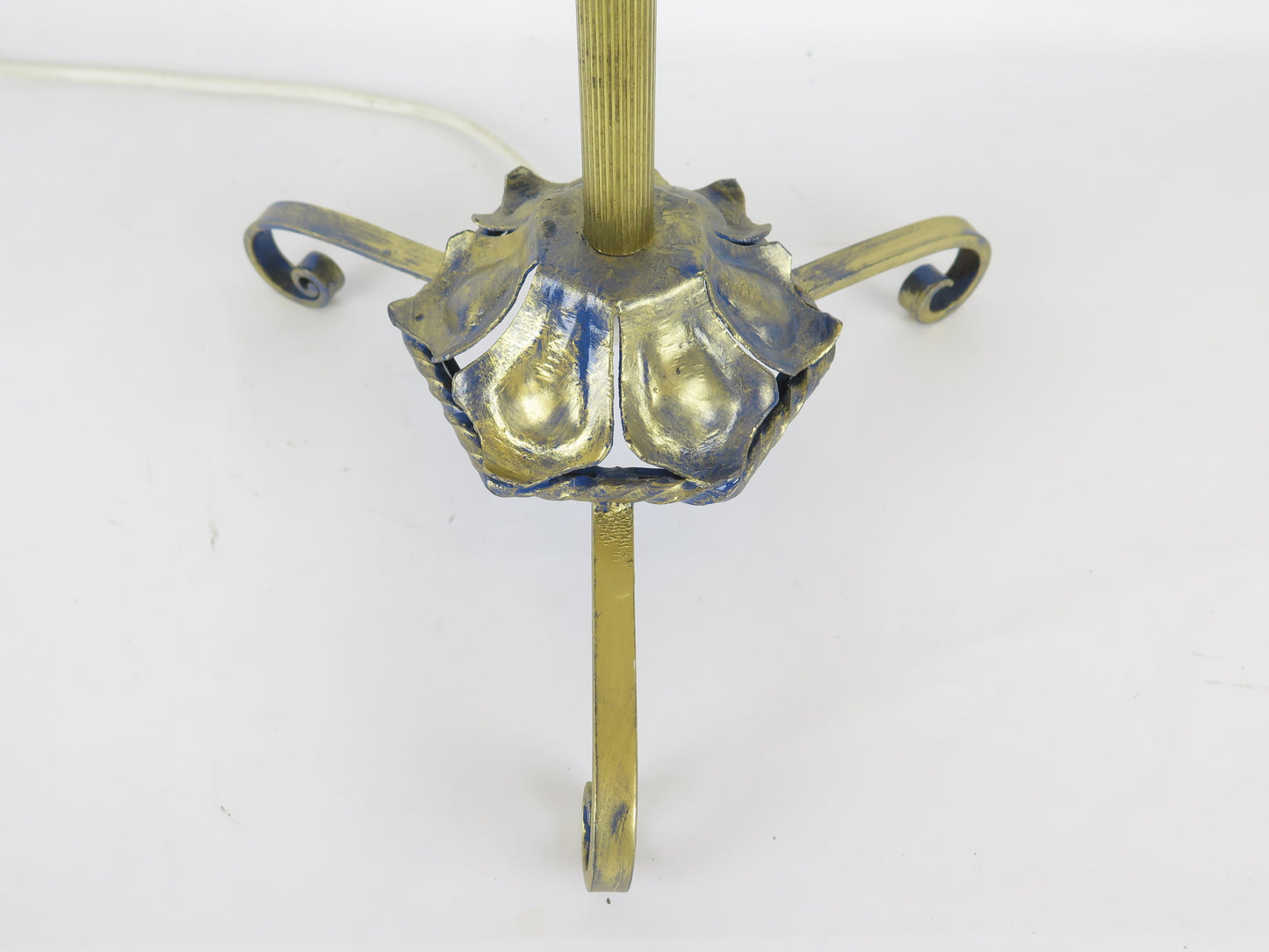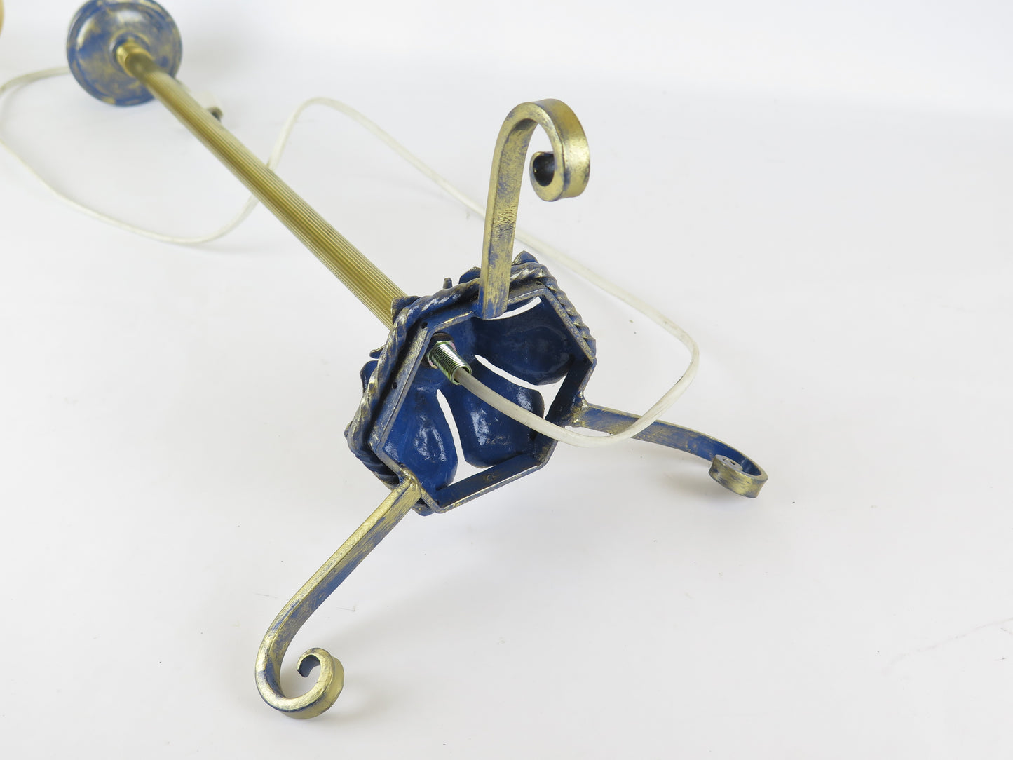 Elegante lampada in ferro battuto decorata con motivi vegetali.