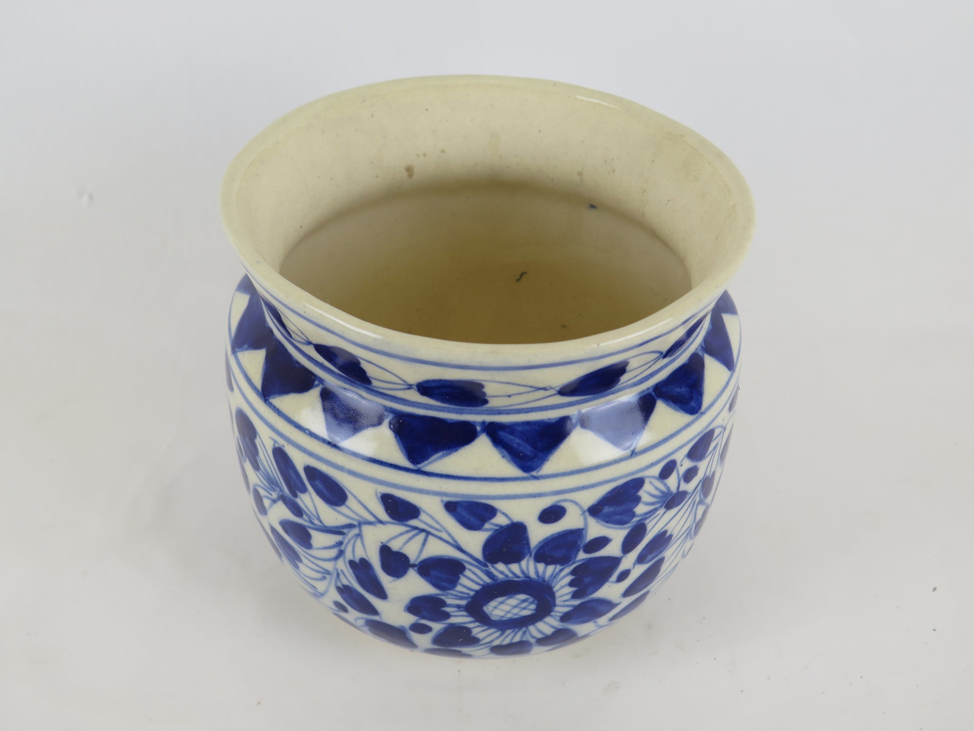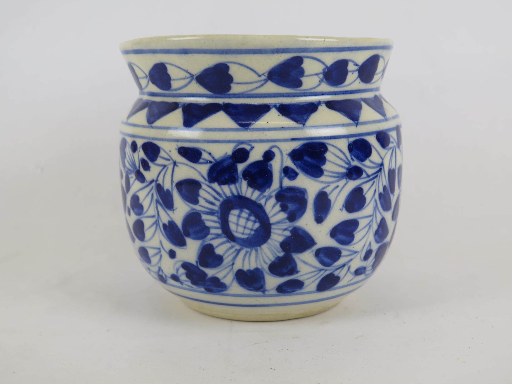 VASO ANTICO VASO IN CERAMICA BIANCO BLU DIPINTO MANO CACHE POT FIORIERA VS5