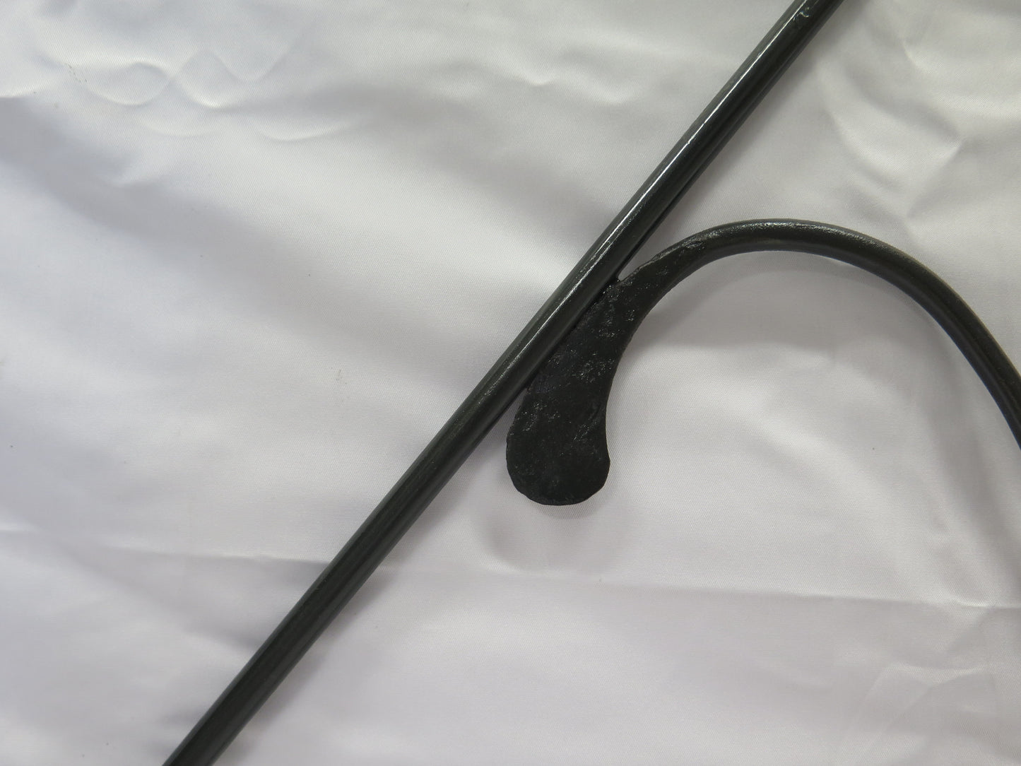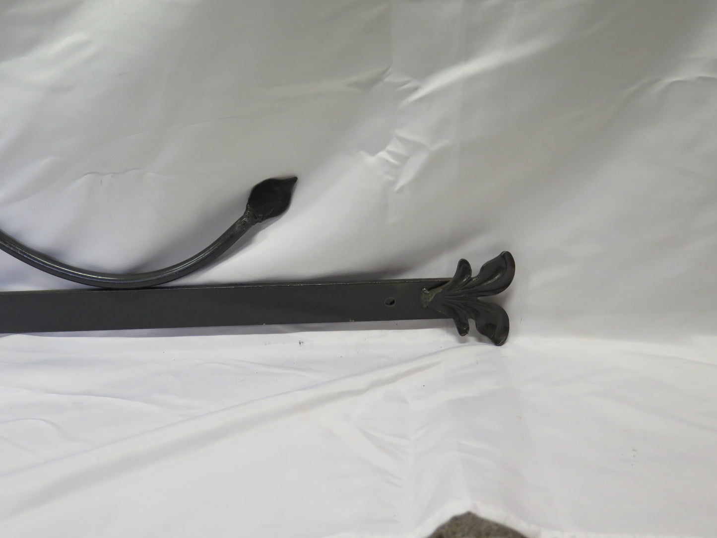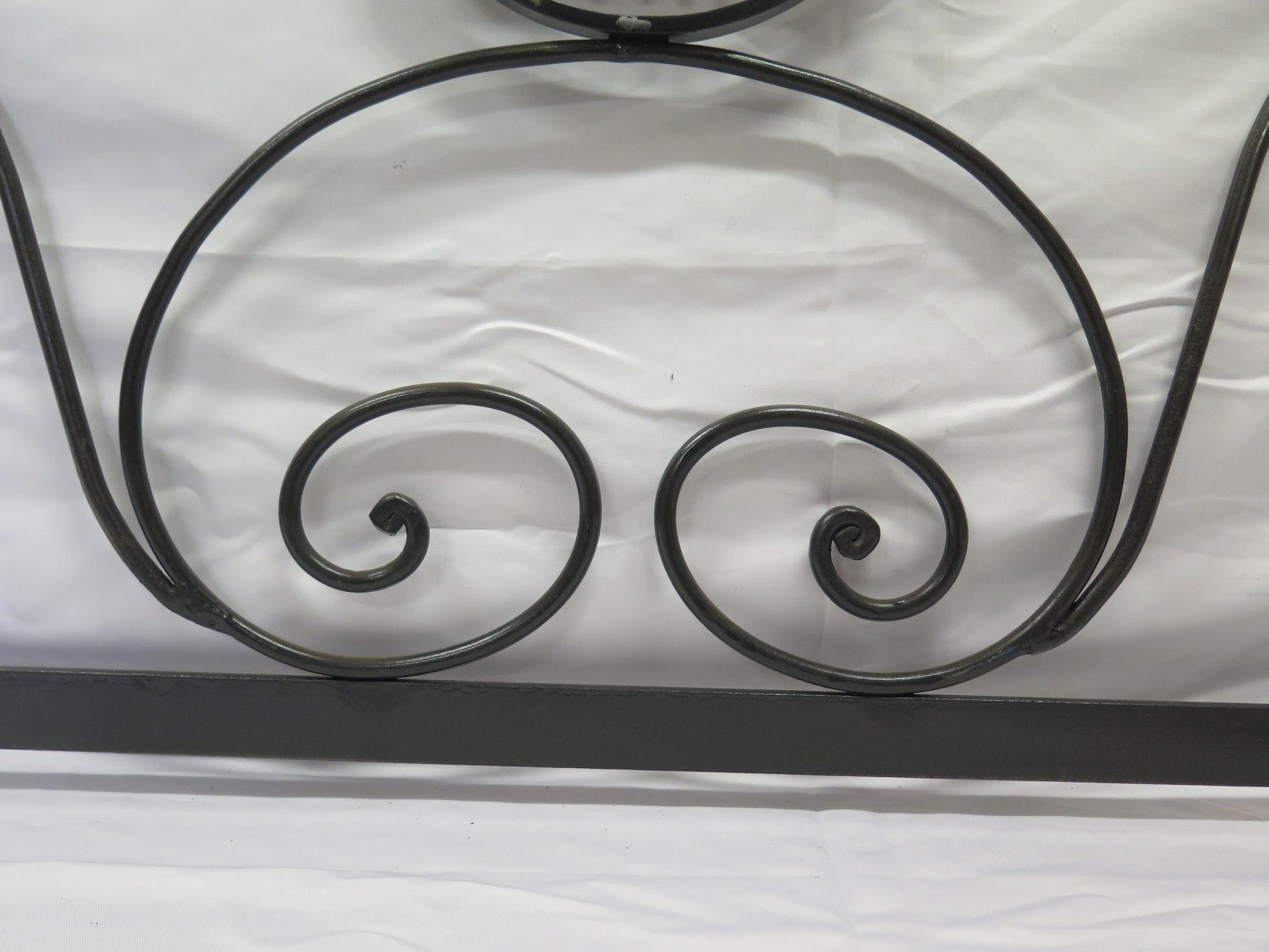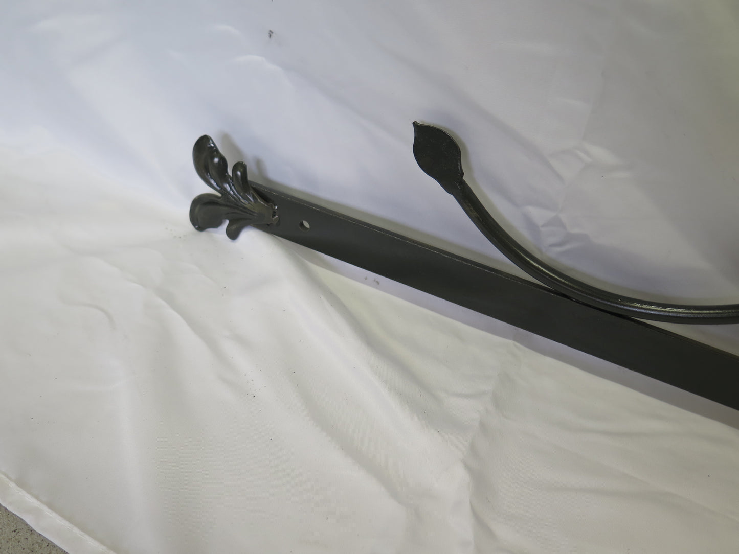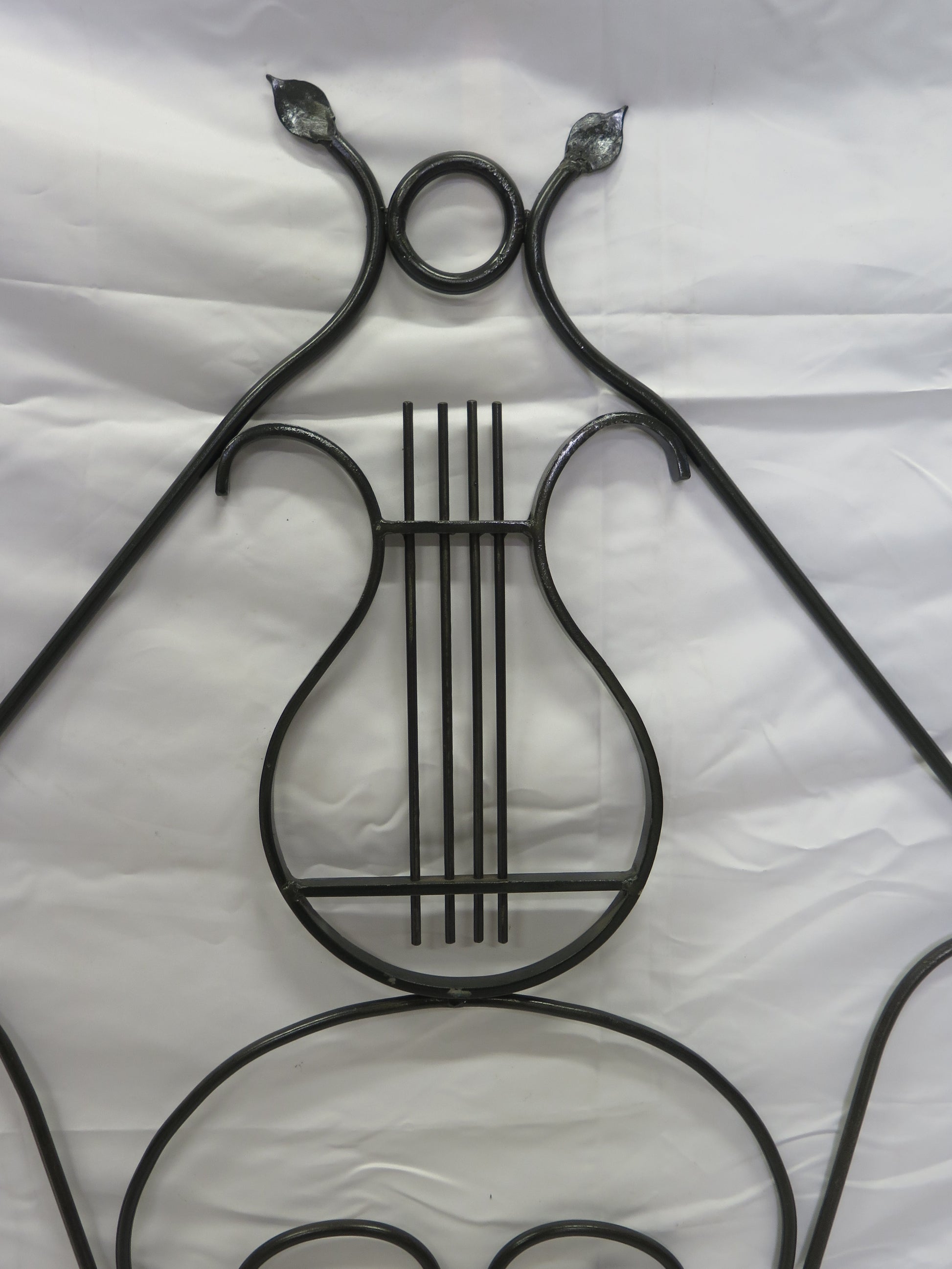 Testiera in ferro battuto forgiato a mano decorata con motivi a lira ed a volute.